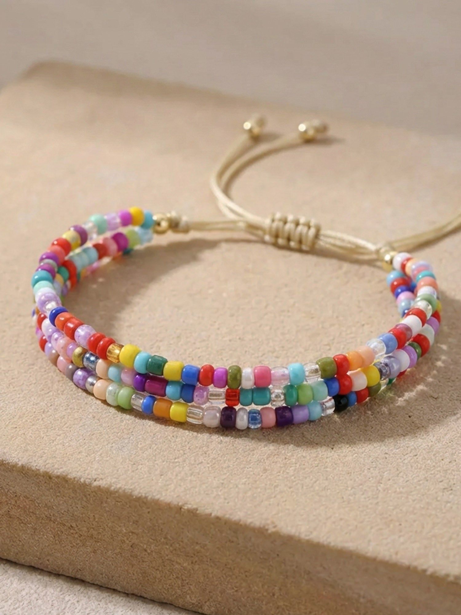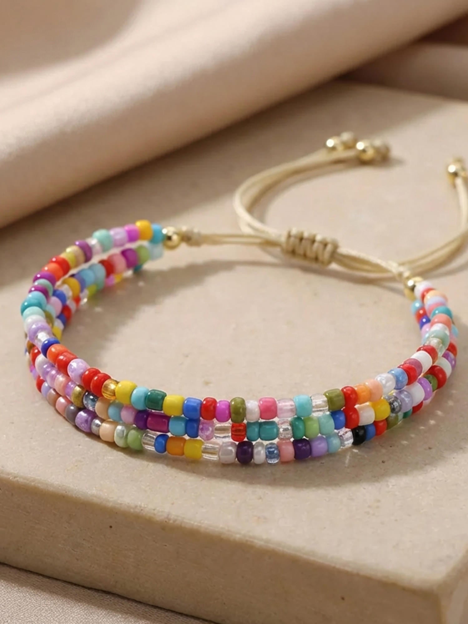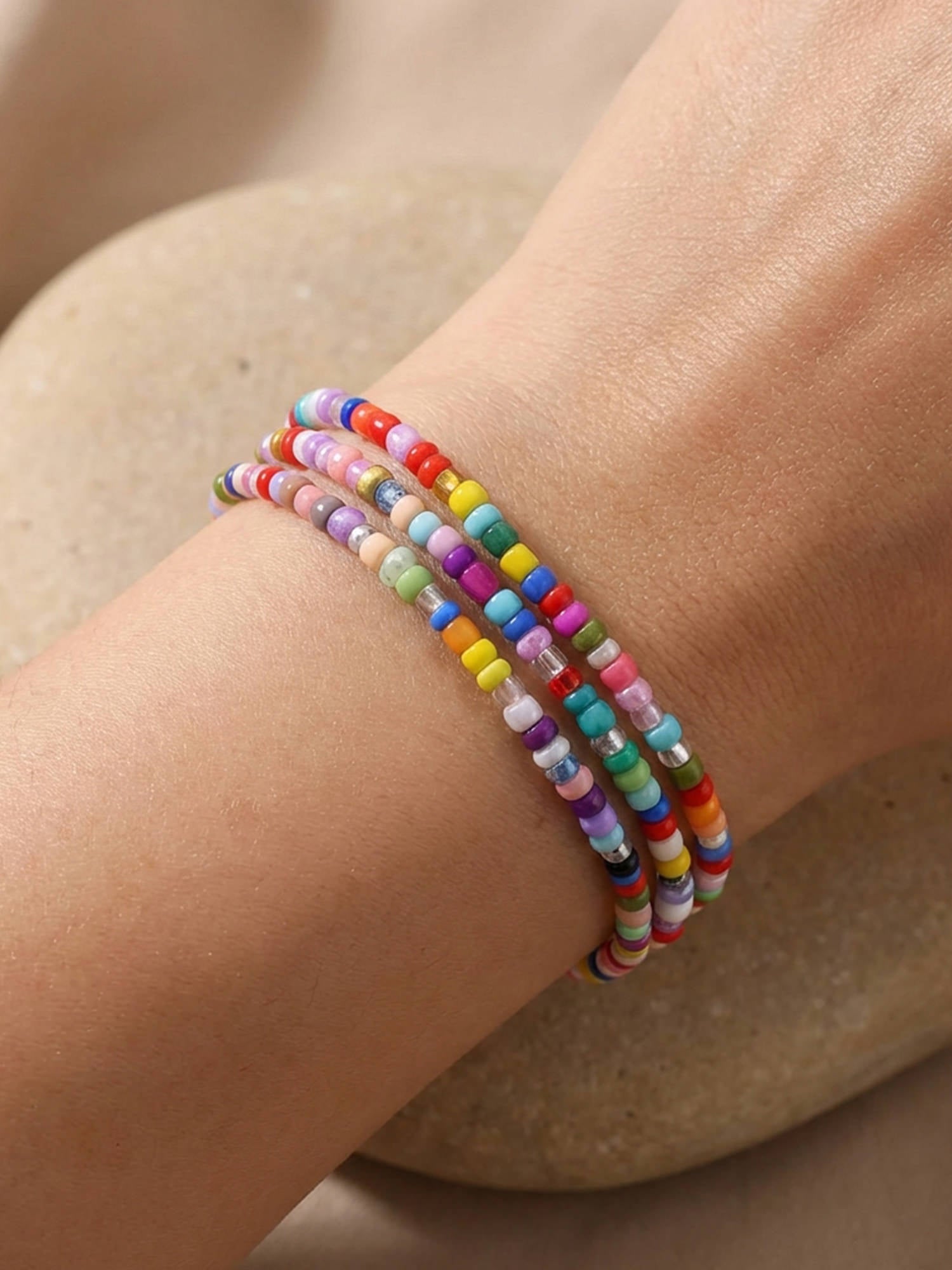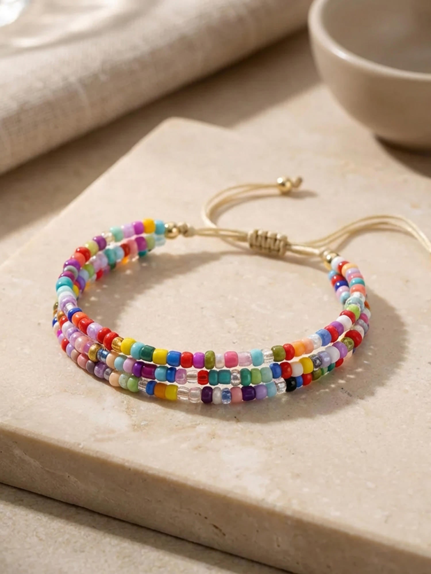 Bring Farbe in deinen Sommer! 🌈 Das Rainbow Bliss Armband ist ein echter Gute-Laune-Macher – mit seinen bunten Perlen erinnert es an Festivalnächte, warme Sonnenuntergänge und unbeschwerte Strandtage.