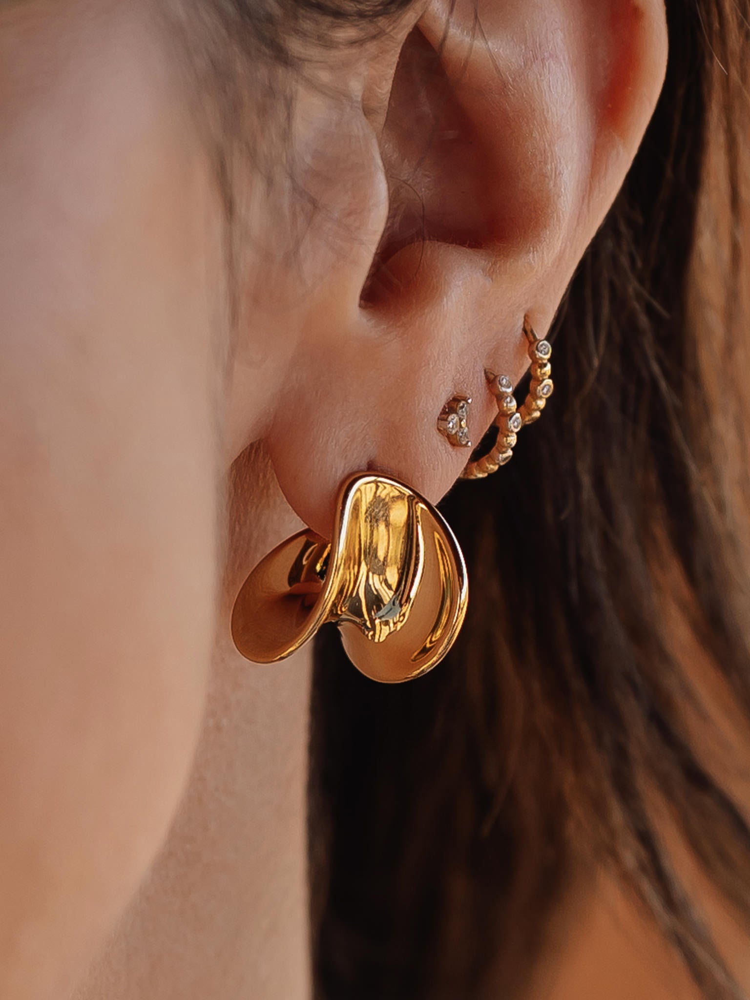 Organische Ohrstecker aus vergoldetem Edelstahl – inspiriert von fließenden Wellen, modern & elegant.