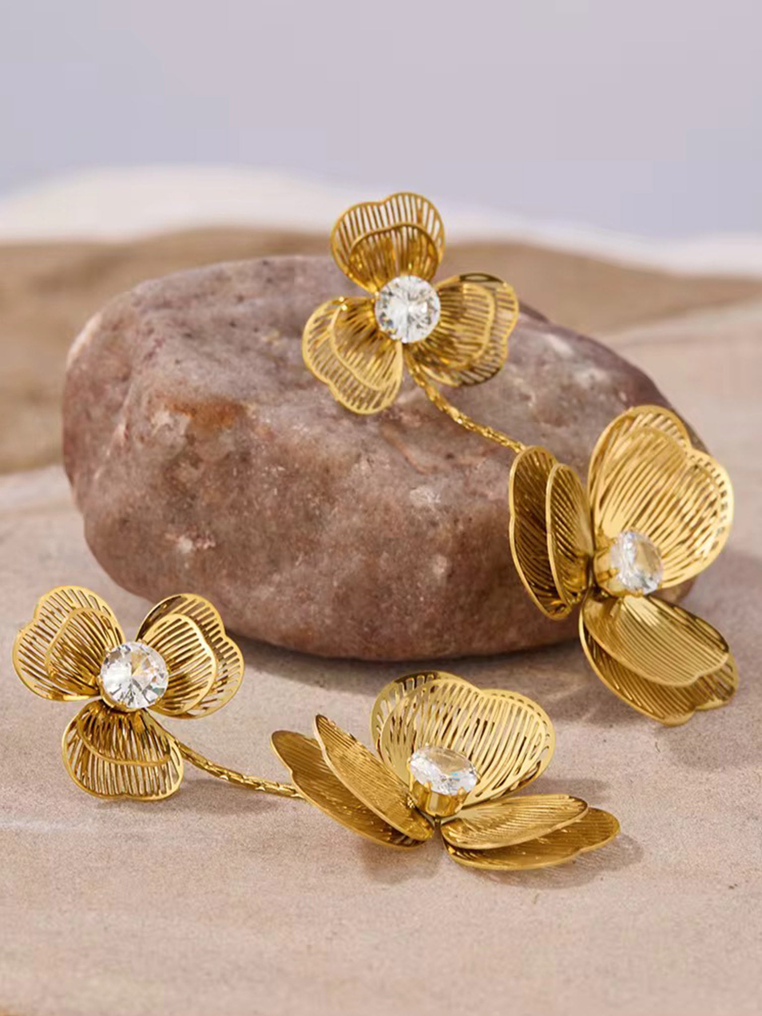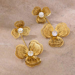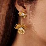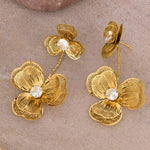 Elegante Statement-Ohrringe in Orchideenform aus 18 Karat vergoldetem Edelstahl mit funkelnden Zirkonia Steinen – das Highlight für deinen Bridal-Look.