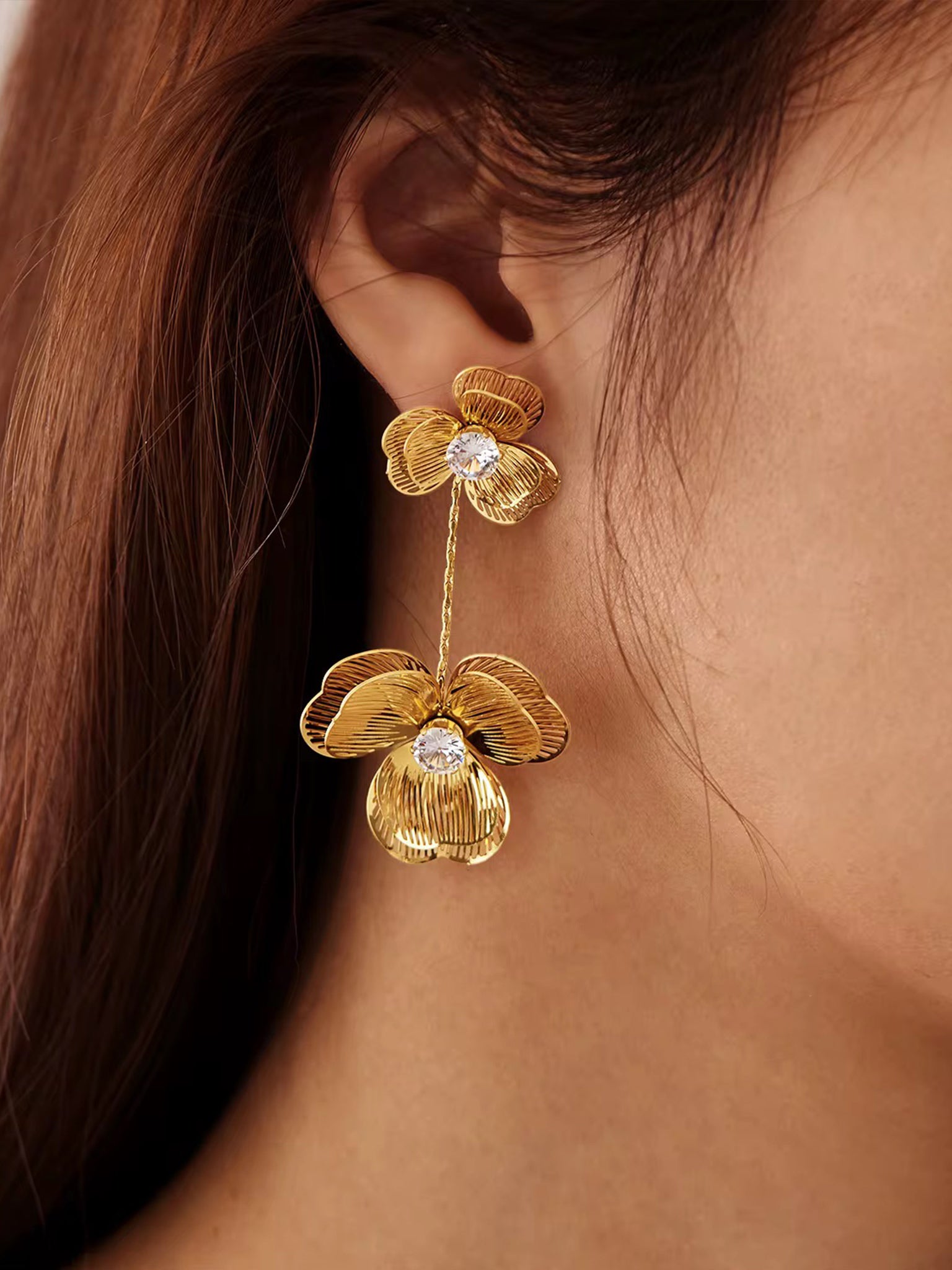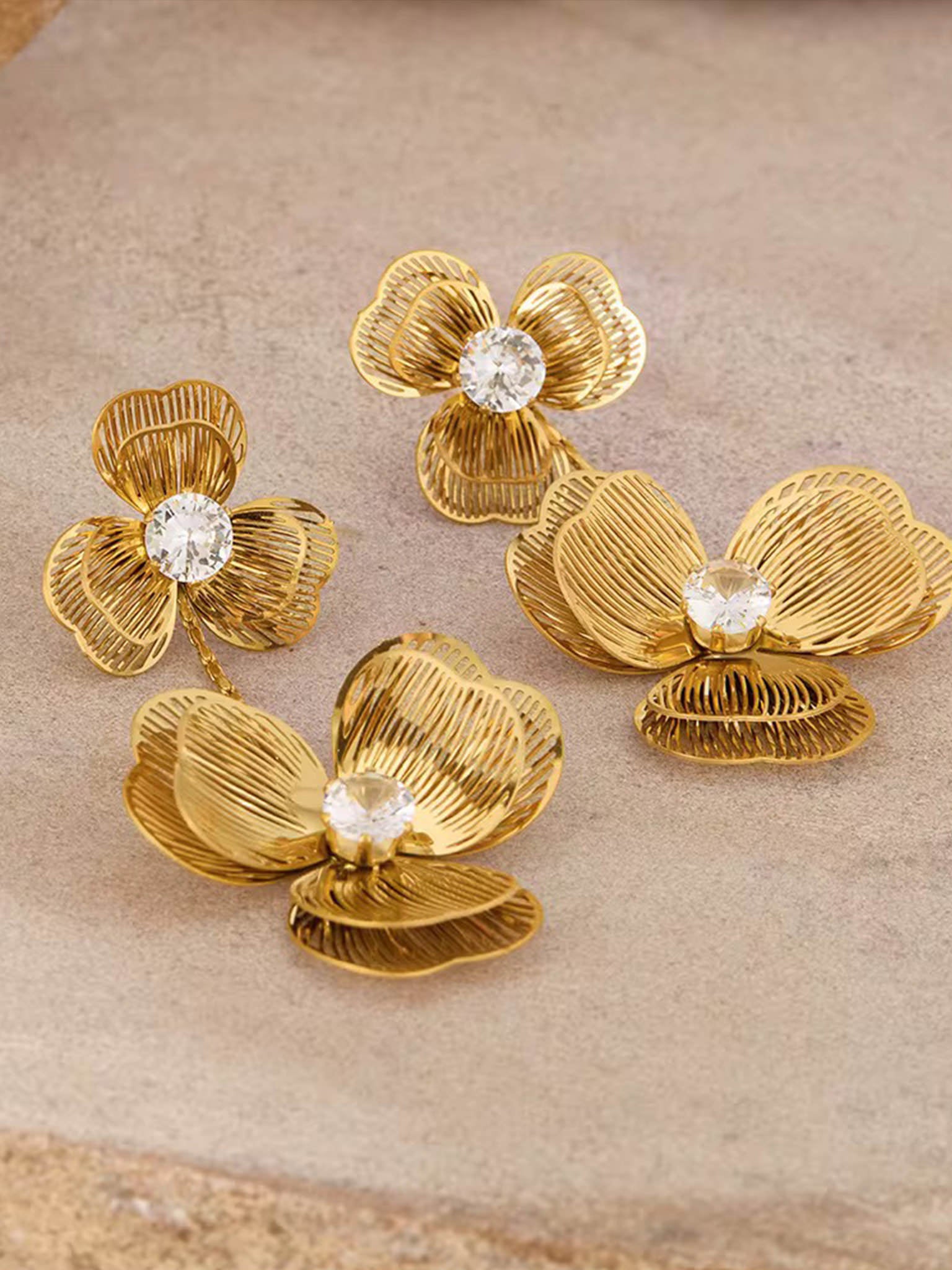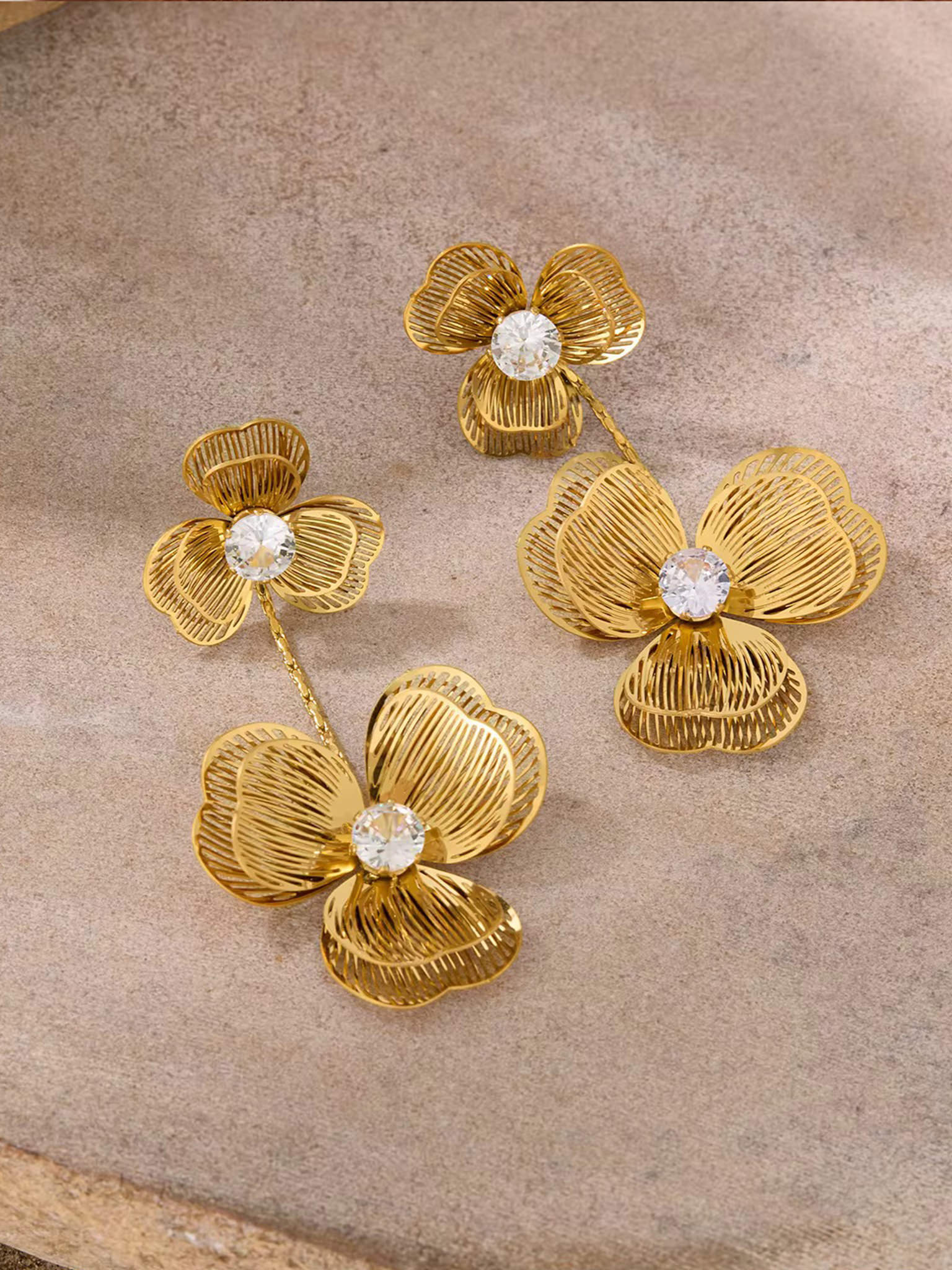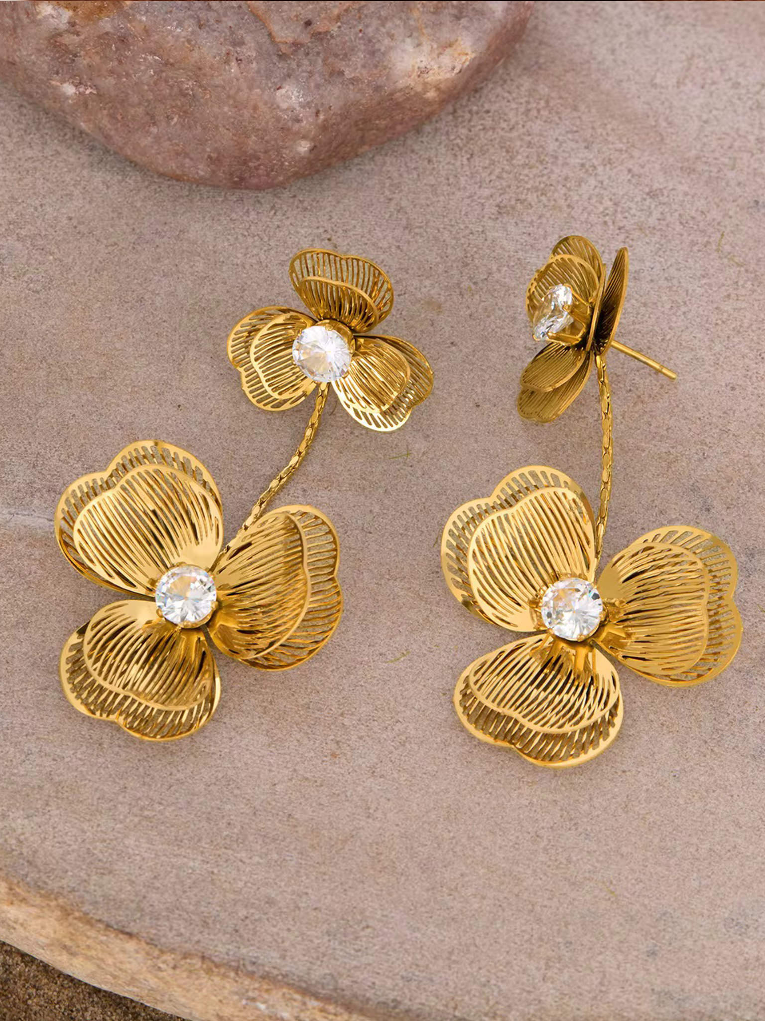 Gefertigt aus hochwertigem 316L Edelstahl, 18 Karat vergoldet, sind die Ohrringe nicht nur elegant, sondern auch besonders langlebig, nickelfrei, hypoallergen und wasserfest. Damit begleiten sie dich nicht nur am Hochzeitstag, sondern auch bei vielen weiteren besonderen Momenten.
