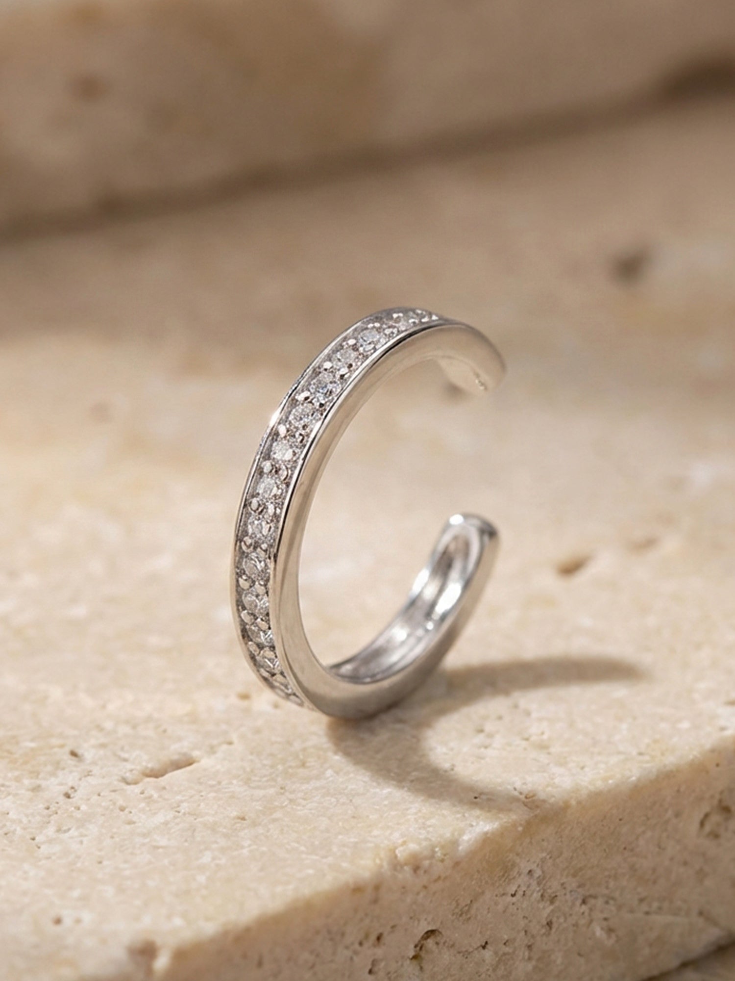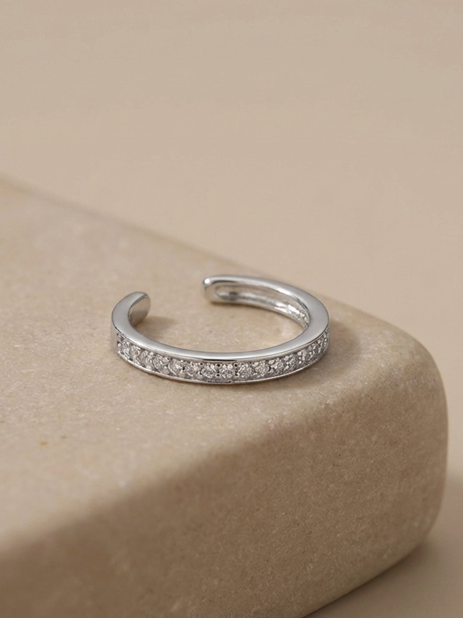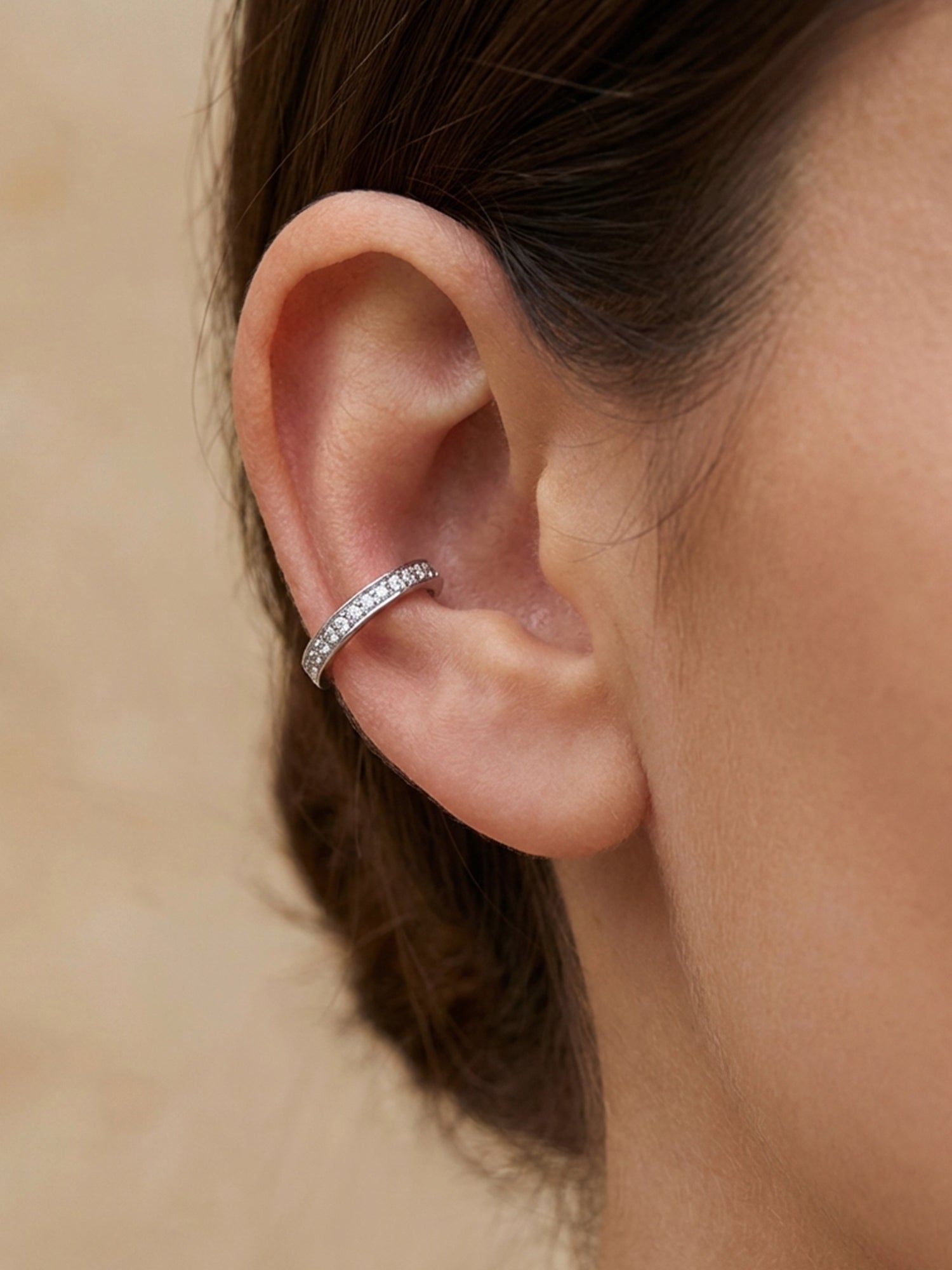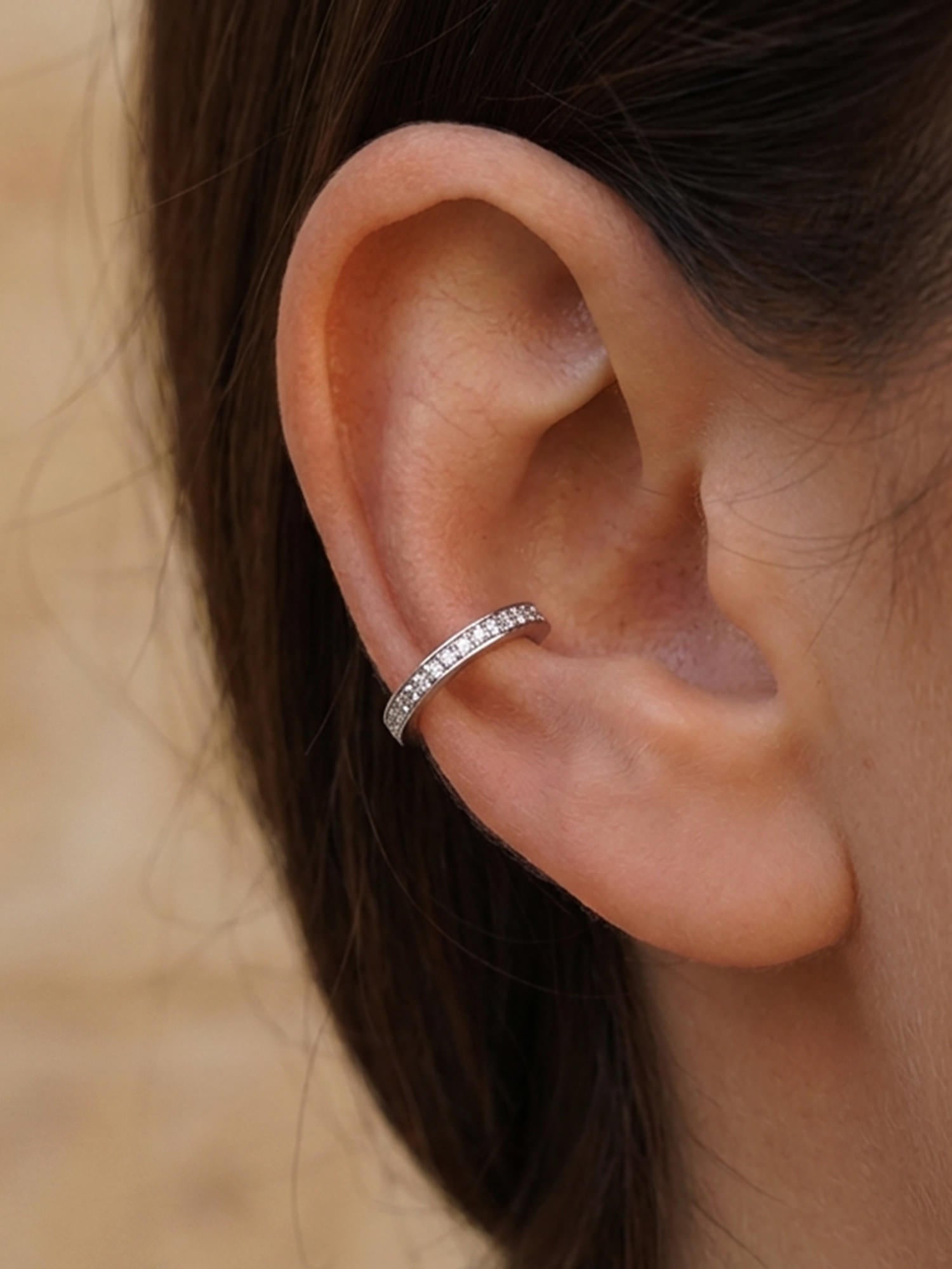 Earcuff aus 925 Sterling Silber mit feinen Zirkonia – eleganter Single-Row Sparkle ohne Ohrloch.