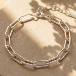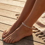 Statement-Fußkettchen aus Edelstahl mit großen Paperclip-Gliedern – modern, klar & im weißgoldähnlichen Silberlook.