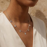 Die Hammered Coins Necklace Silber ist ein elegantes Schmuckstück mit persönlichem Charakter: mehrere kleine, gehämmerte Münz-Charms, die sanft an der Kette tanzen und dabei stets für einen modernen, lebendigen Look sorgen. Das minimalistische Silber-Design lässt sich mühelos zu jedem Outfit kombinieren – ob solo getragen oder im Lagen-Mix mit weiteren Ketten.