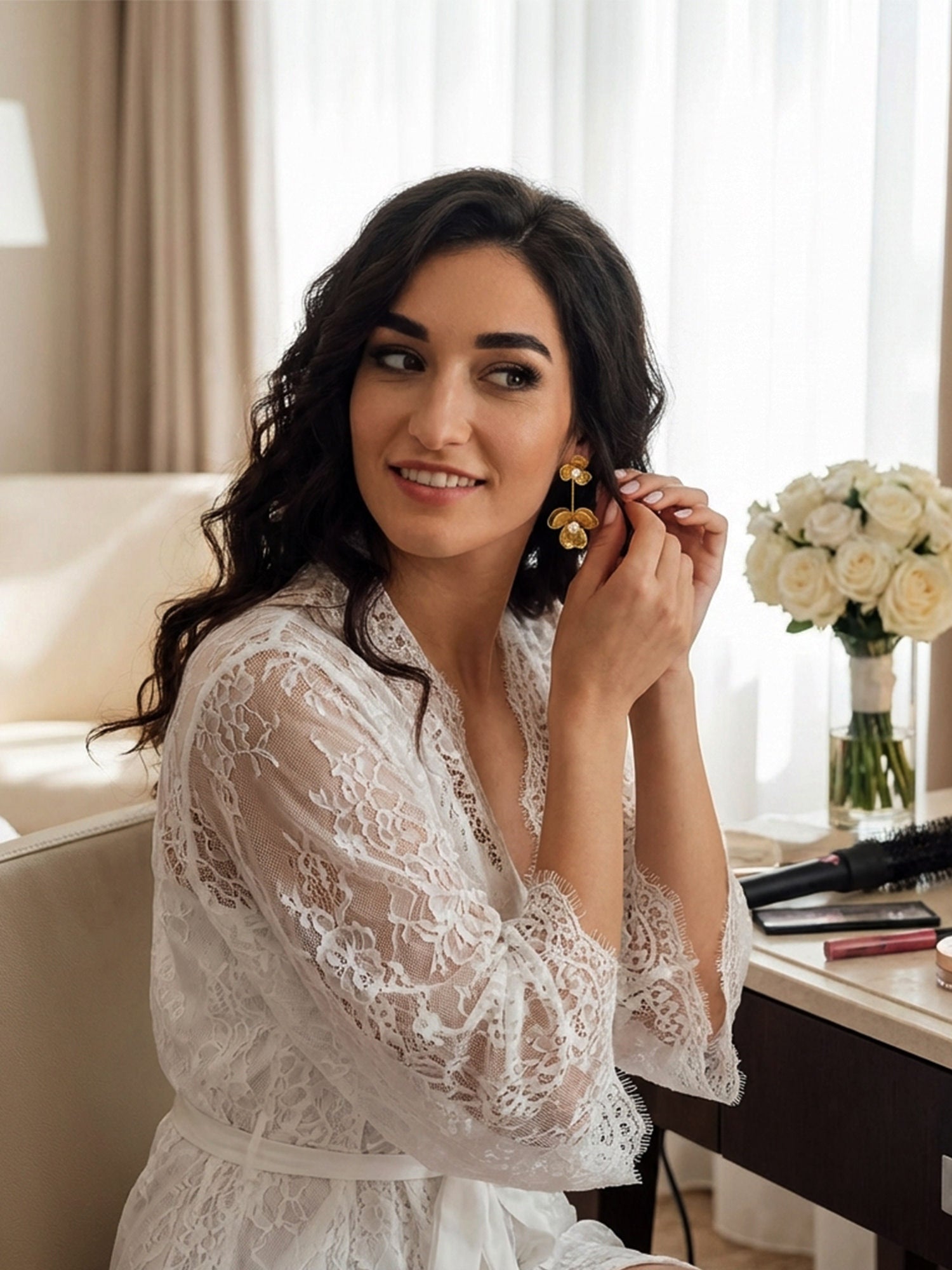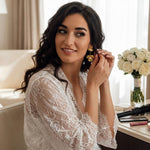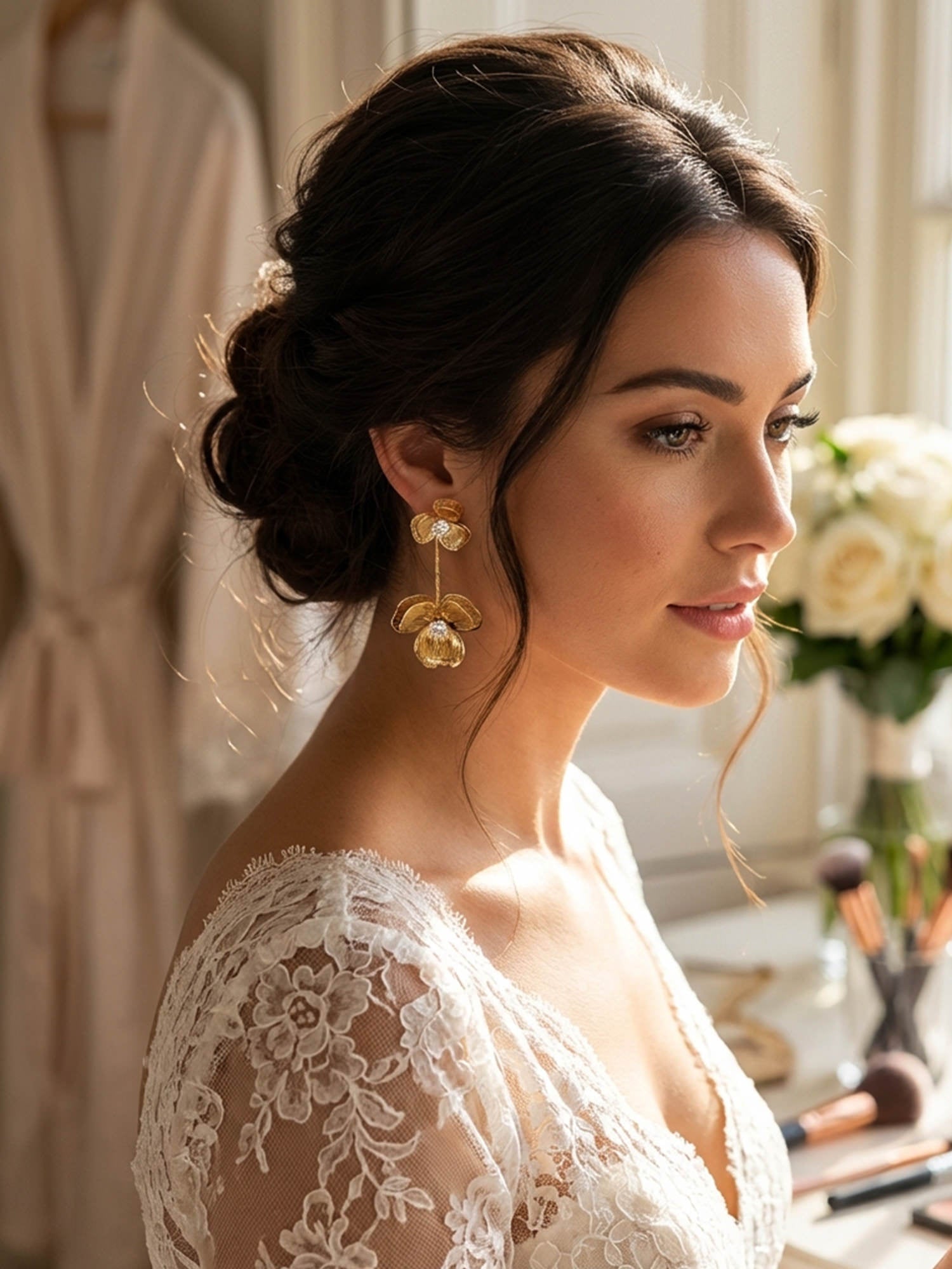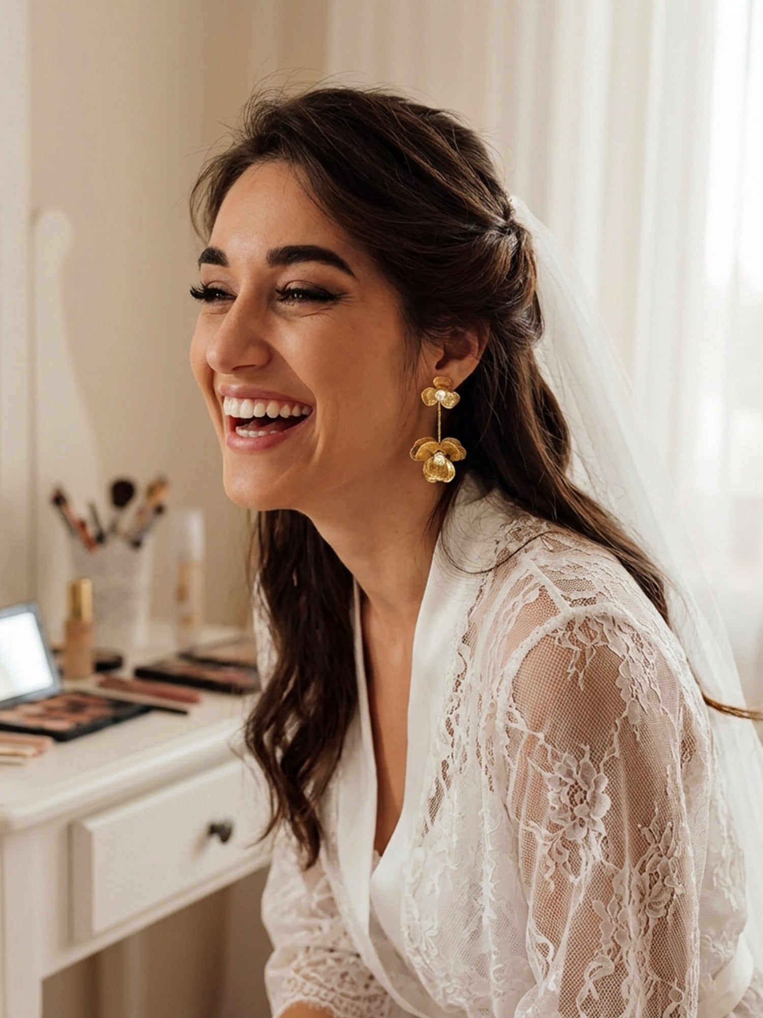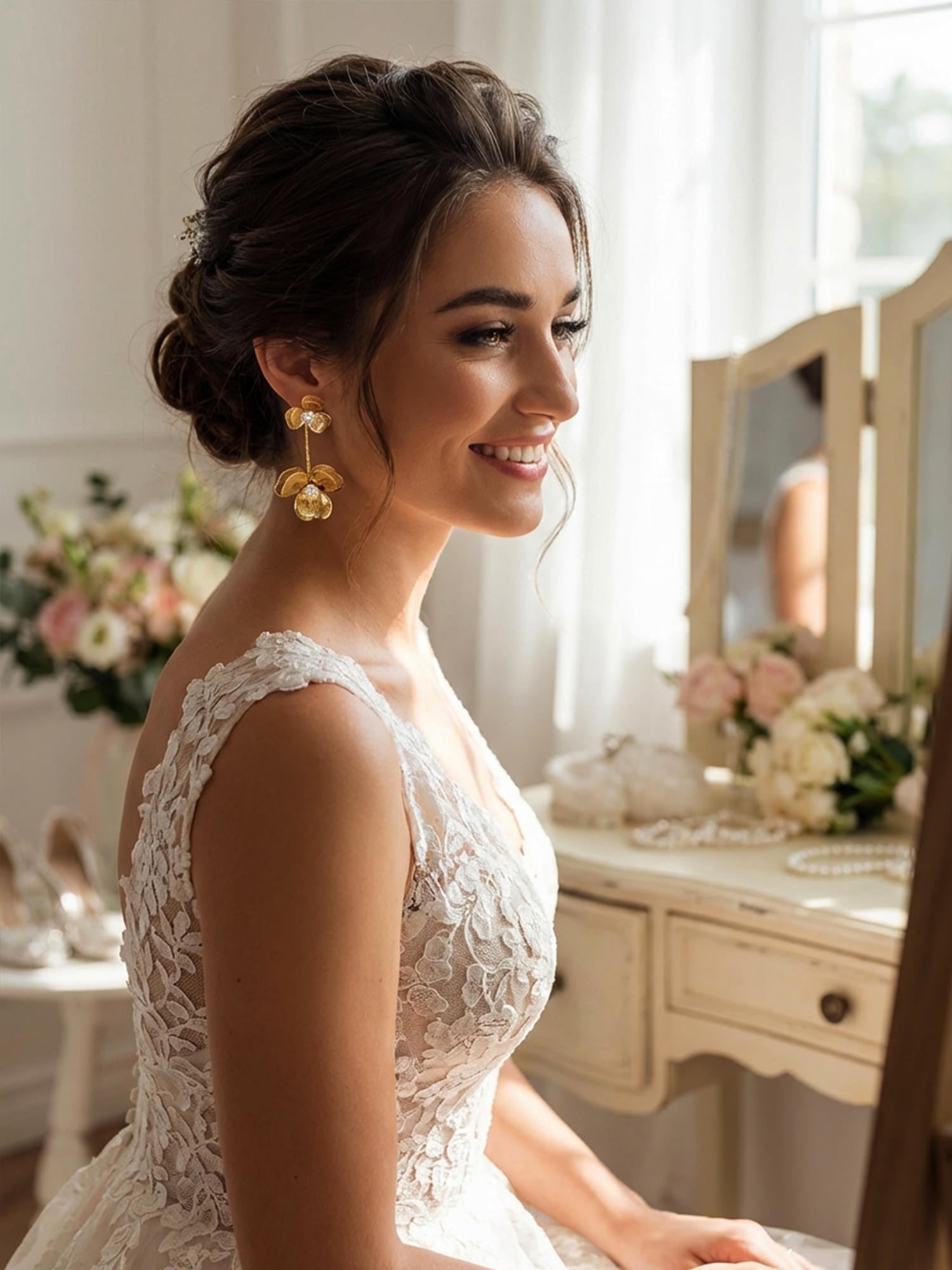 Gefertigt aus hochwertigem 316L Edelstahl, 18 Karat vergoldet, sind die Ohrringe nicht nur elegant, sondern auch besonders langlebig, nickelfrei, hypoallergen und wasserfest. Damit begleiten sie dich nicht nur am Hochzeitstag, sondern auch bei vielen weiteren besonderen Momenten.