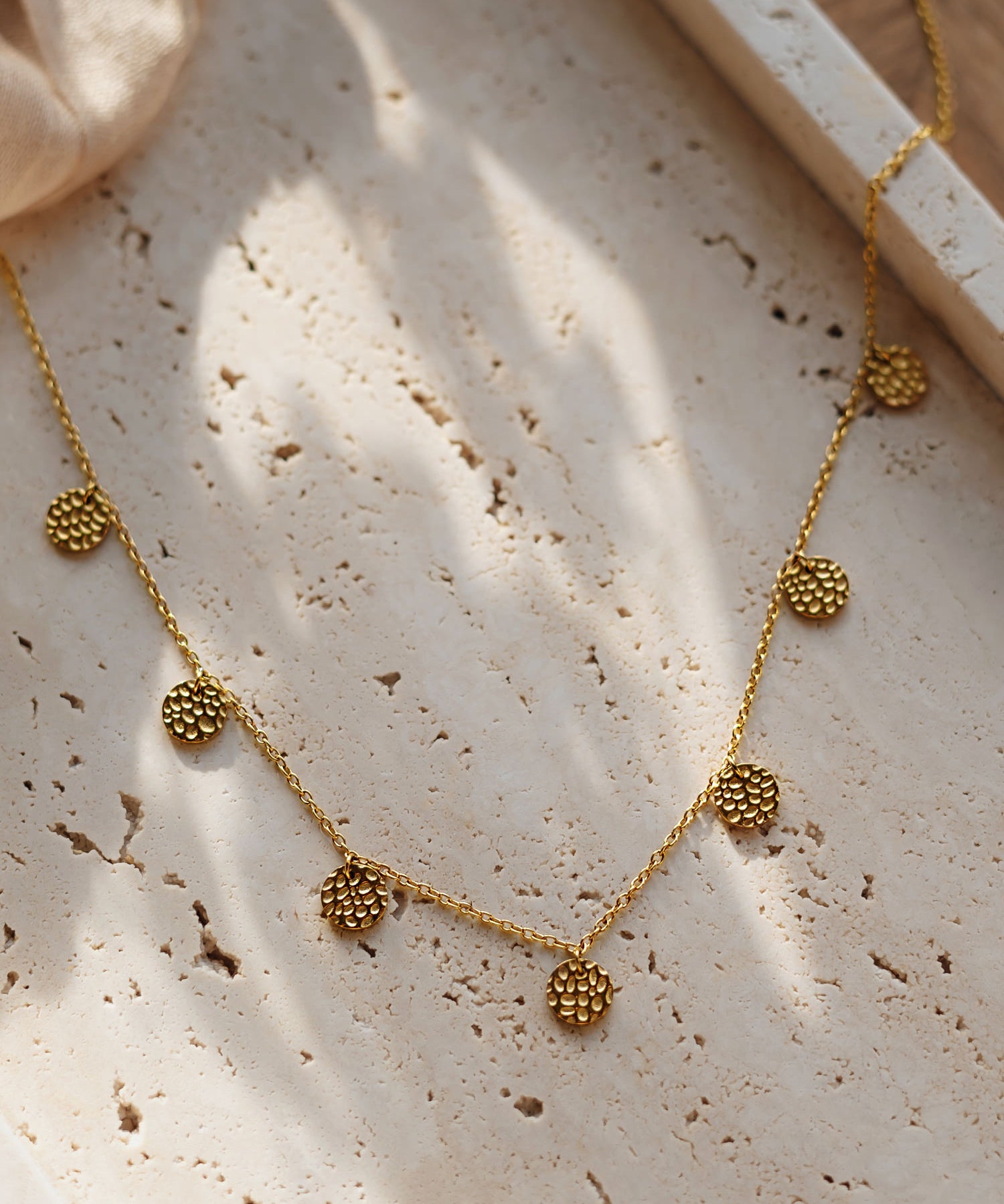 Unser Schmuck besteht im Kern entweder aus reinstem 925 Sterling Silber oder 316L Edelstahl. Unsere vergoldeten Schmuckstücke werden zudem mit einer hochwertigen 18 Karat Mehrfachvergoldung versehen und mit einem speziellen E-Coating Verfahren versiegelt. Durch diese “Schutzschicht” wird unser Schmuck widerstandsfähiger gegenüber äußerlichen Einflüssen.
