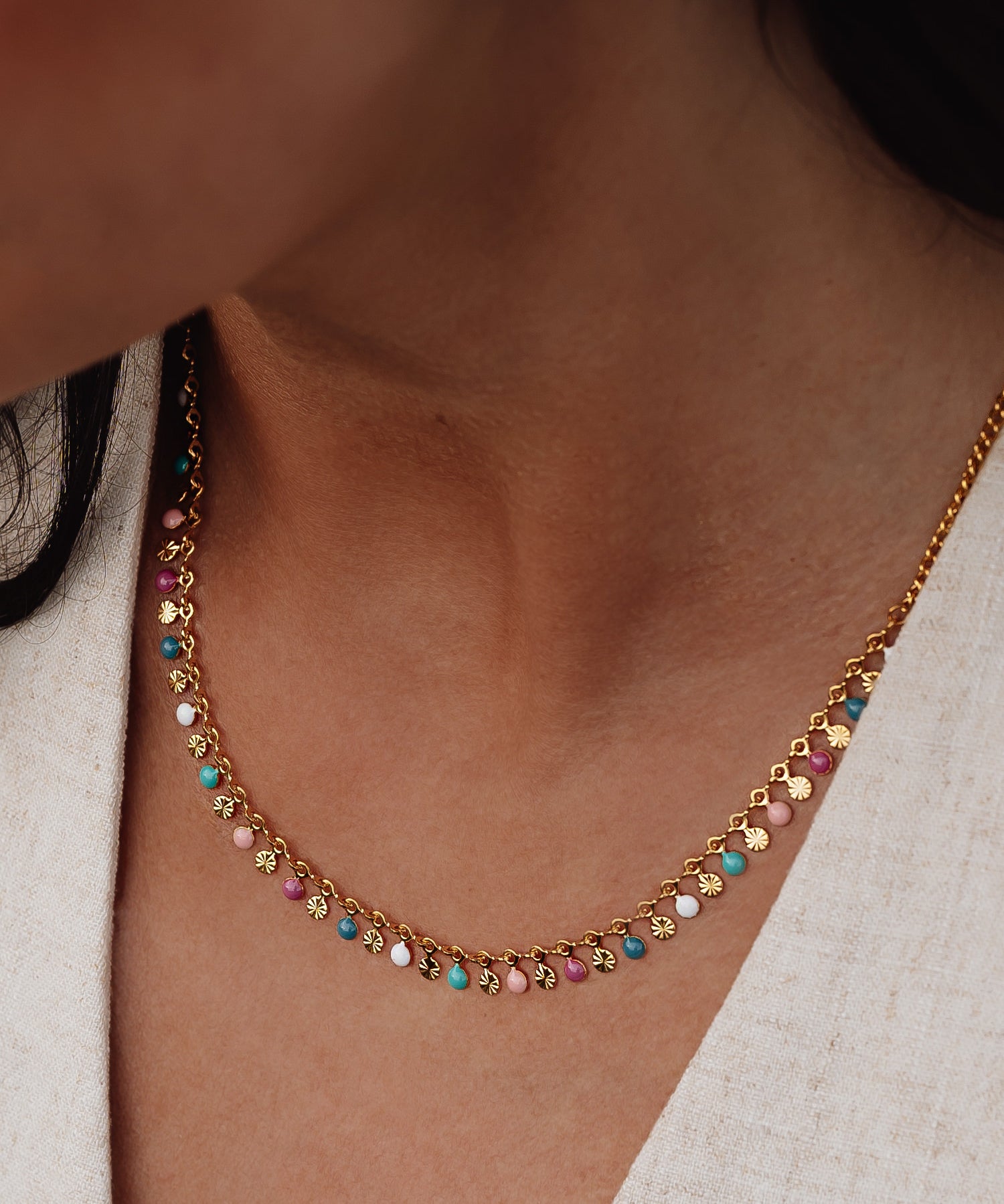 Das hängt ganz vom verwenden Ausgangsmaterial ab: Unseren vergoldeten Edelstahlschmuck kannst du bedenkenlos im Wasser tragen. Handelt es sich um Salz- oder Chlorwasser, sollte der Schmuck anschließend mit klarem Wasser gereinigt werden. 925 Sterling Silber Schmuck hingegen sollte immer vorher abgelegt werden, da das Material deutlich empfindlicher ist. Generell empfehlen wir Schmuck beim Duschen, Schwimmen oder auch beim Sport abzulegen, um so auch wirklich lange Freude an den Schmuckstücken zu haben.
