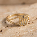 18 Karat vergoldeter 925 Sterling Silber Ring mit Skyline-Gravur & schwarzem Zirkonia – modern, elegant & hypoallergen.