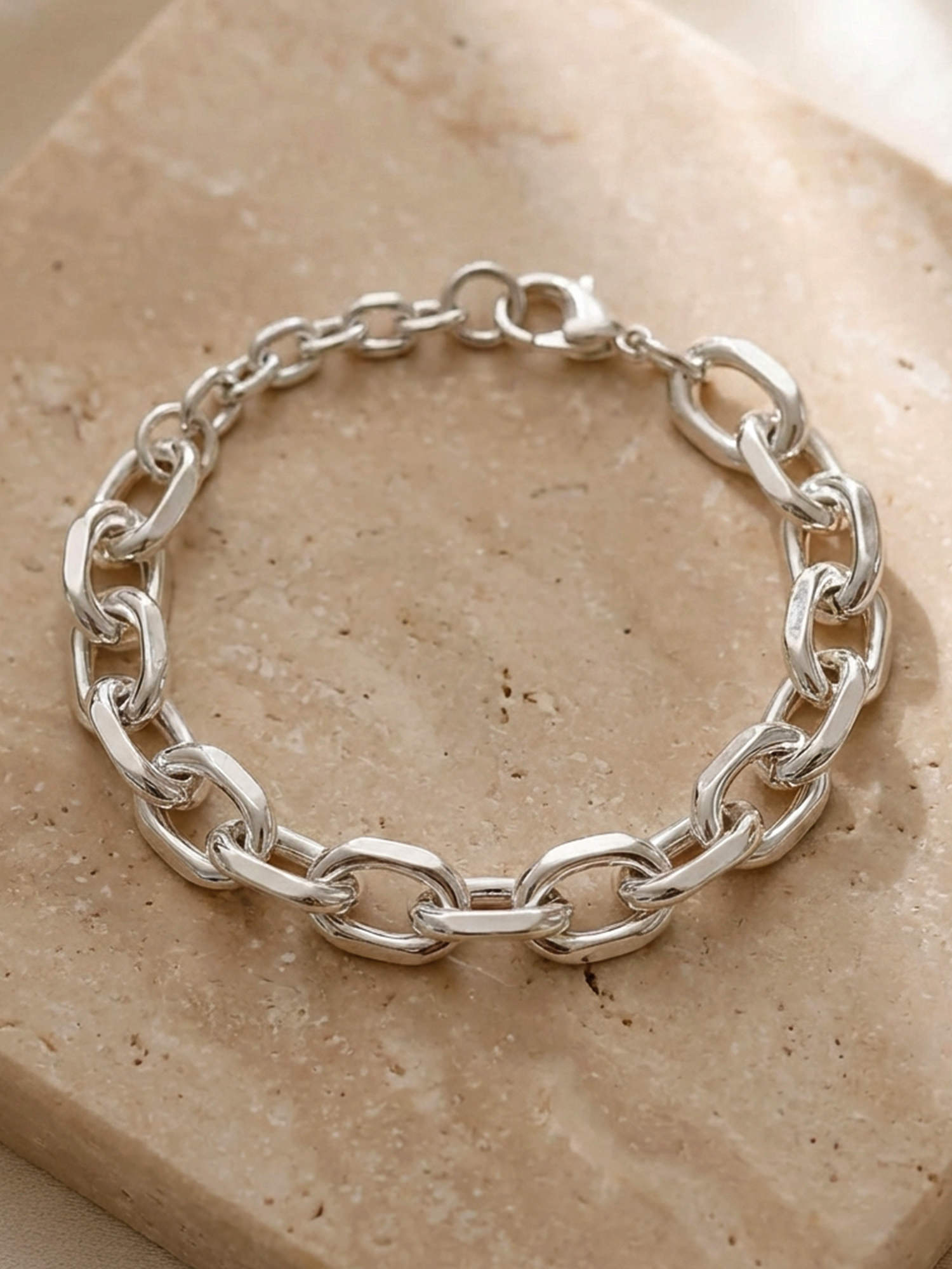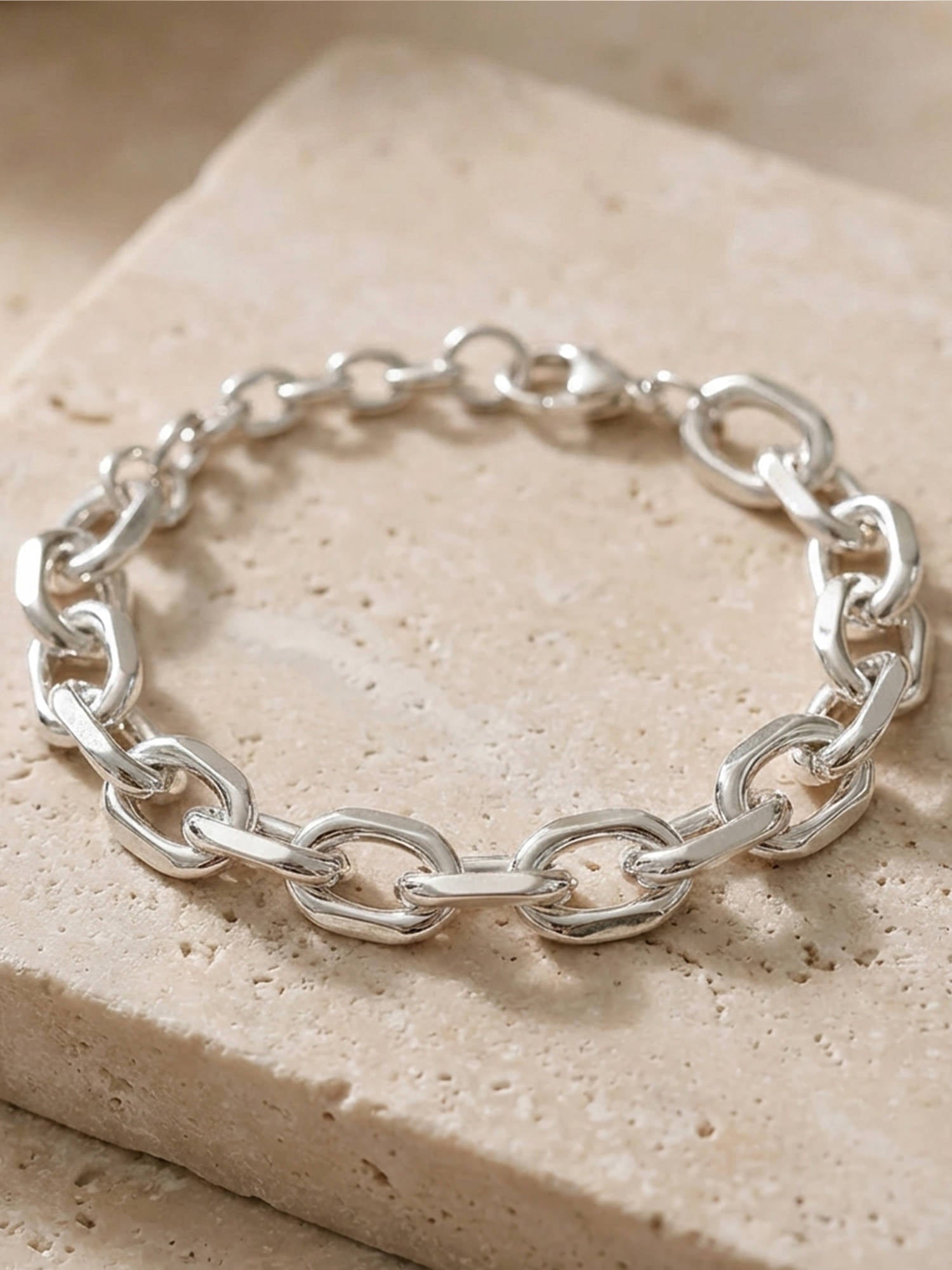 Statement Rolo Armband in hochglänzendem Weißgold-Look – versilberter 316L Edelstahl, wasserfest, nickelfrei & hypoallergen.