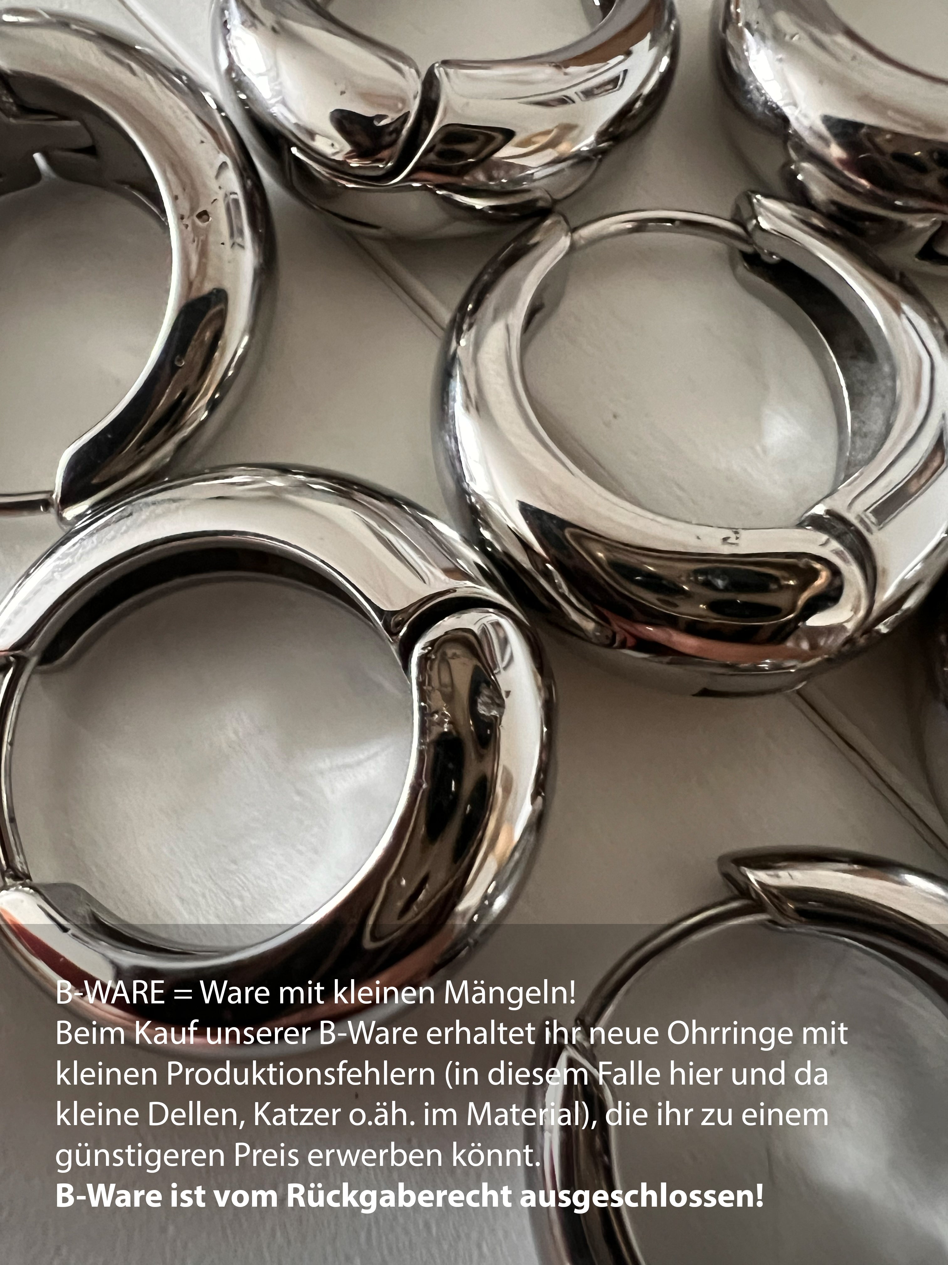 Beim Kauf unserer B-Ware erhaltet ihr neue Ohrringe mit kleinen Produktionsfehlern (in diesem Falle hier und da kleine Dellen, Katzer o.äh. im Material), die ihr zu einem günstigeren Preis erwerben könnt. B-Ware ist vom Umtausch ausgeschlossen. Eine Rückgabe ist nicht möglich.