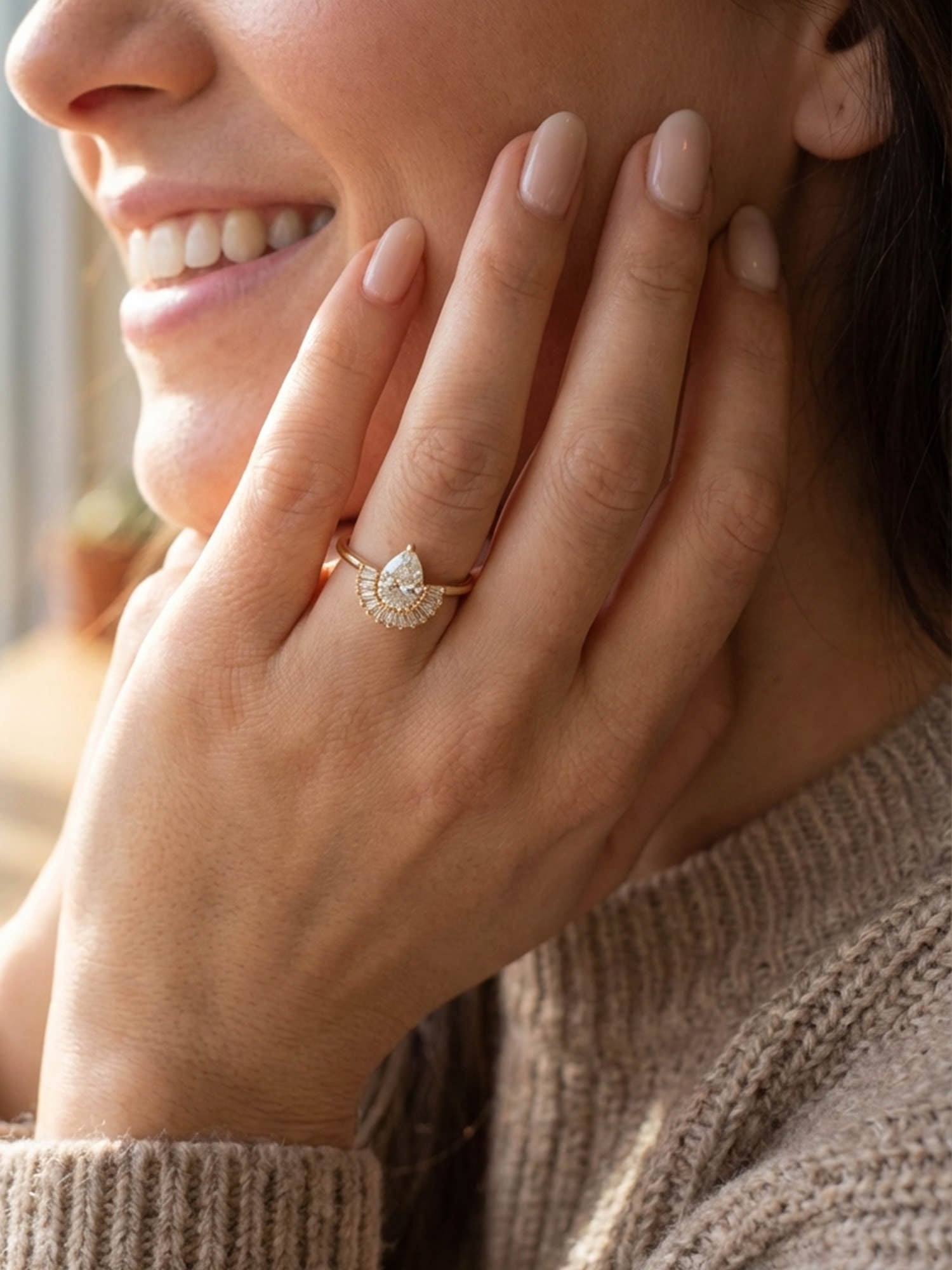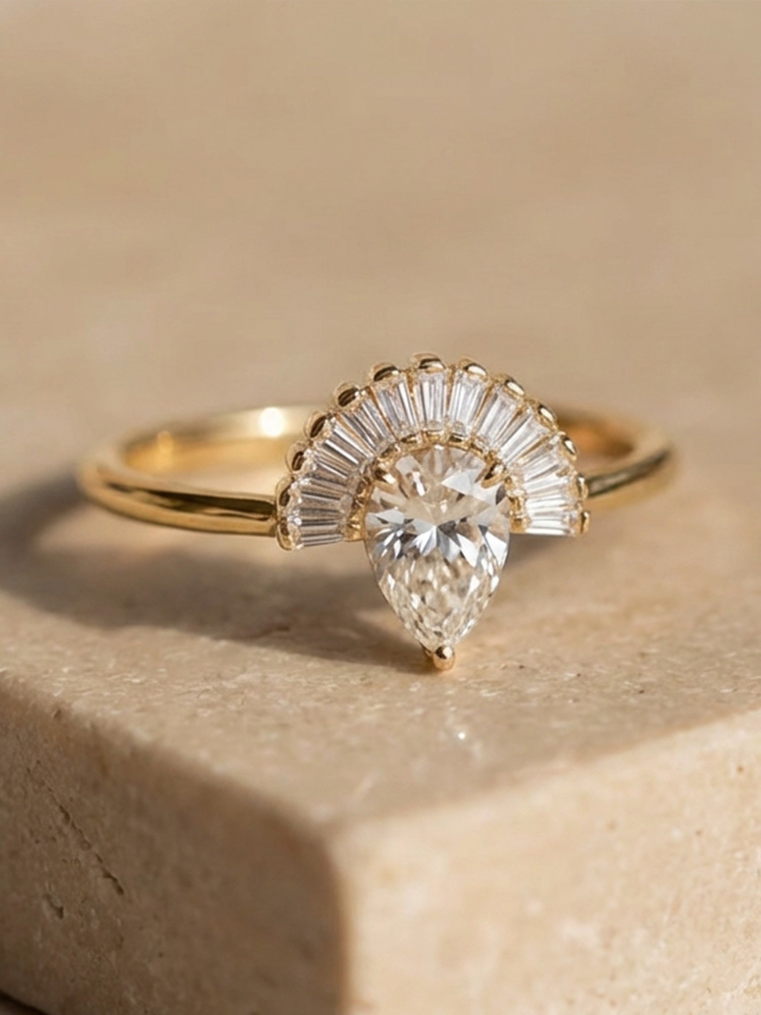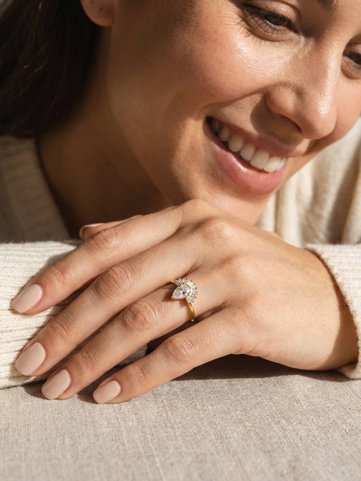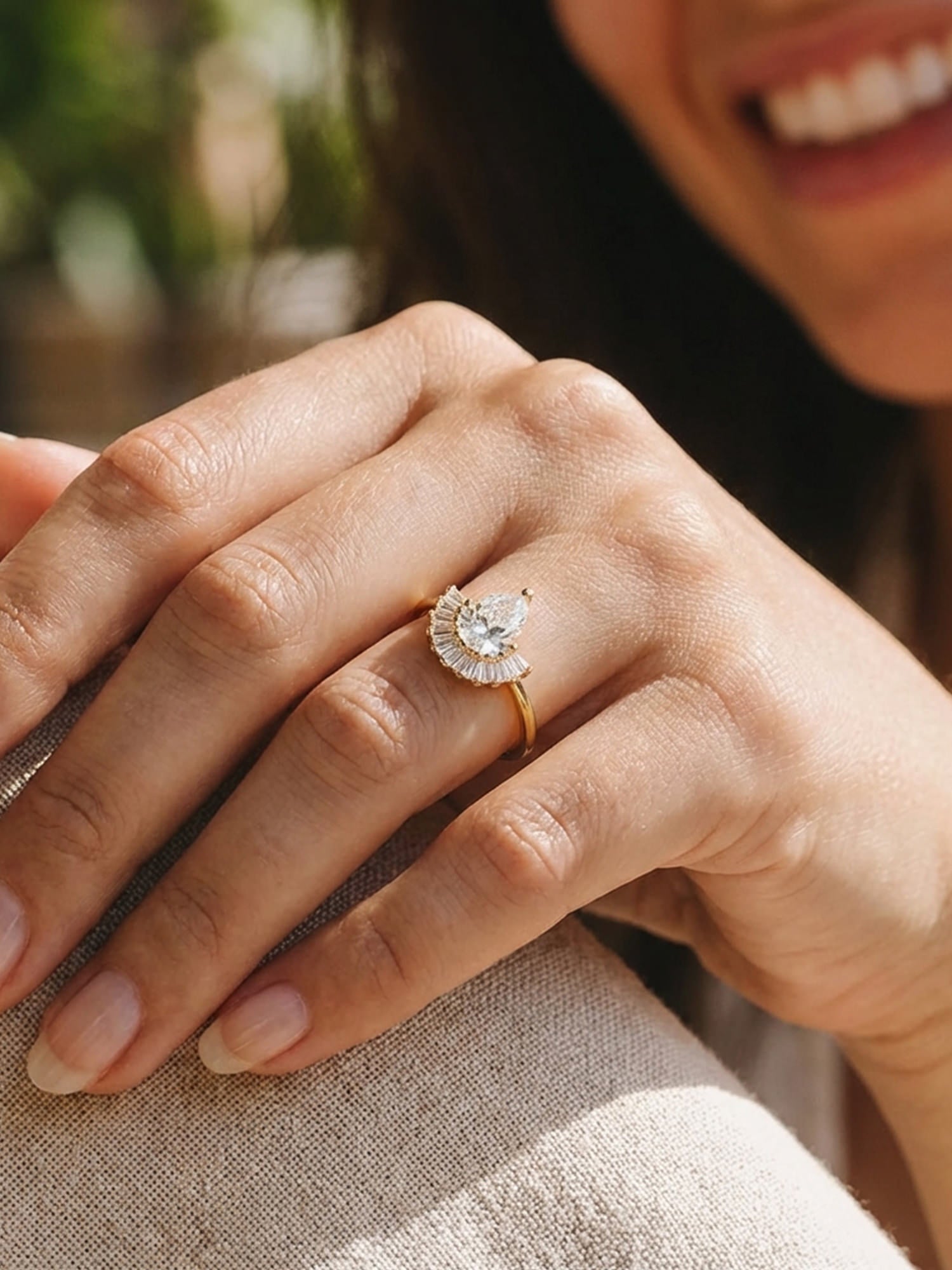 18 Karat vergoldeter Teardrop-Ring aus 925 Sterling Silber mit funkelndem Zirkonia – filigran, elegant & feminin.