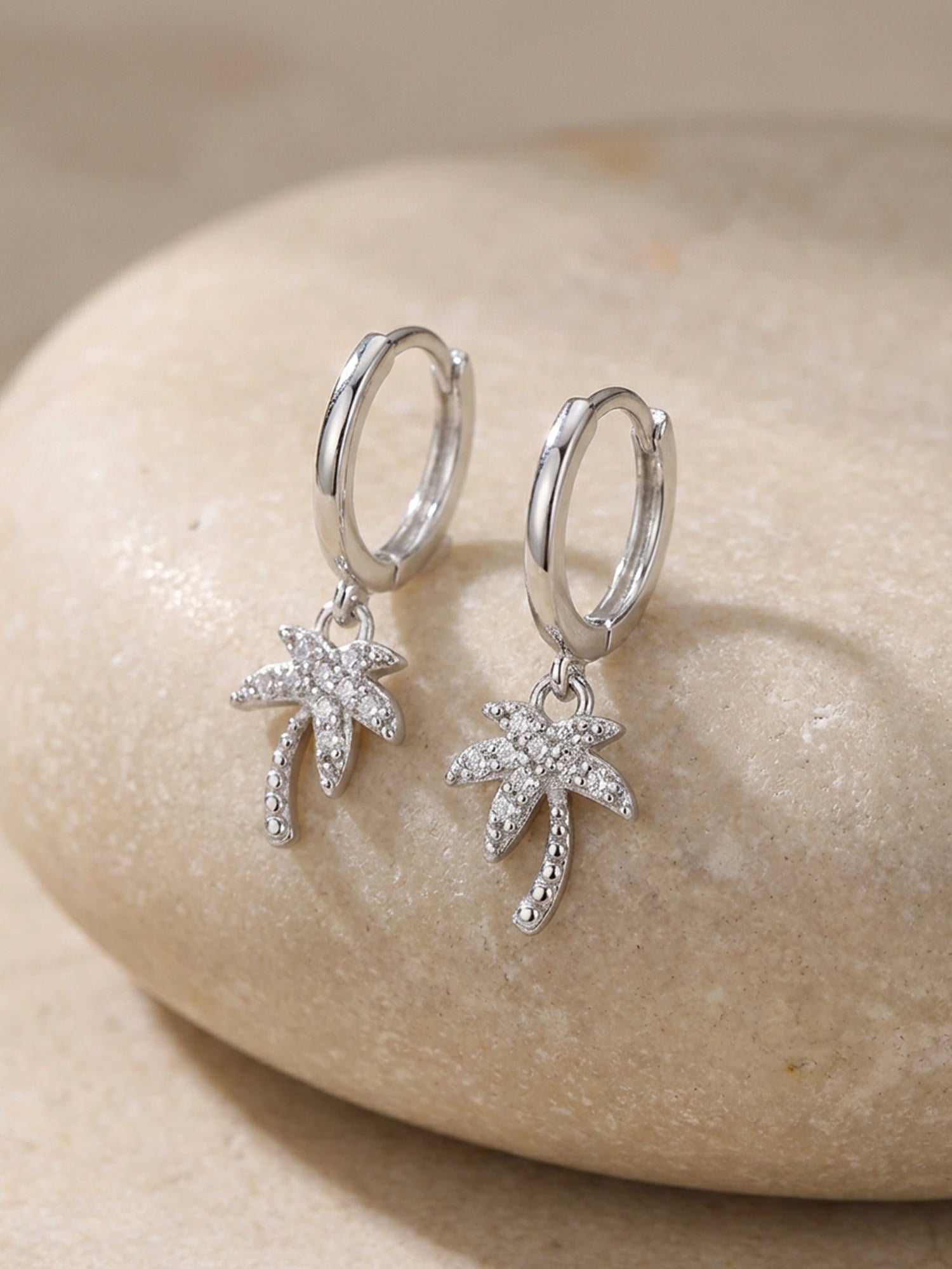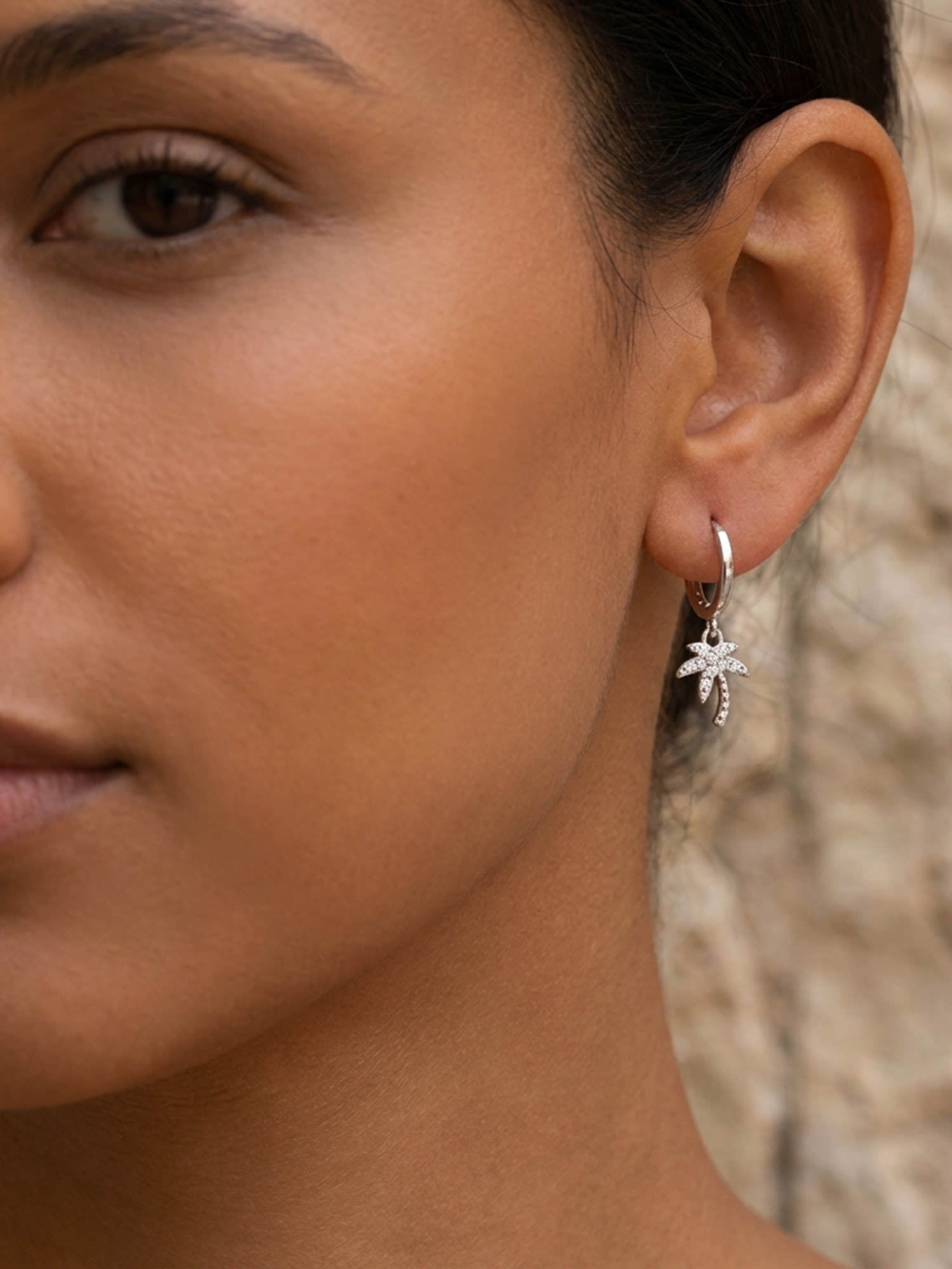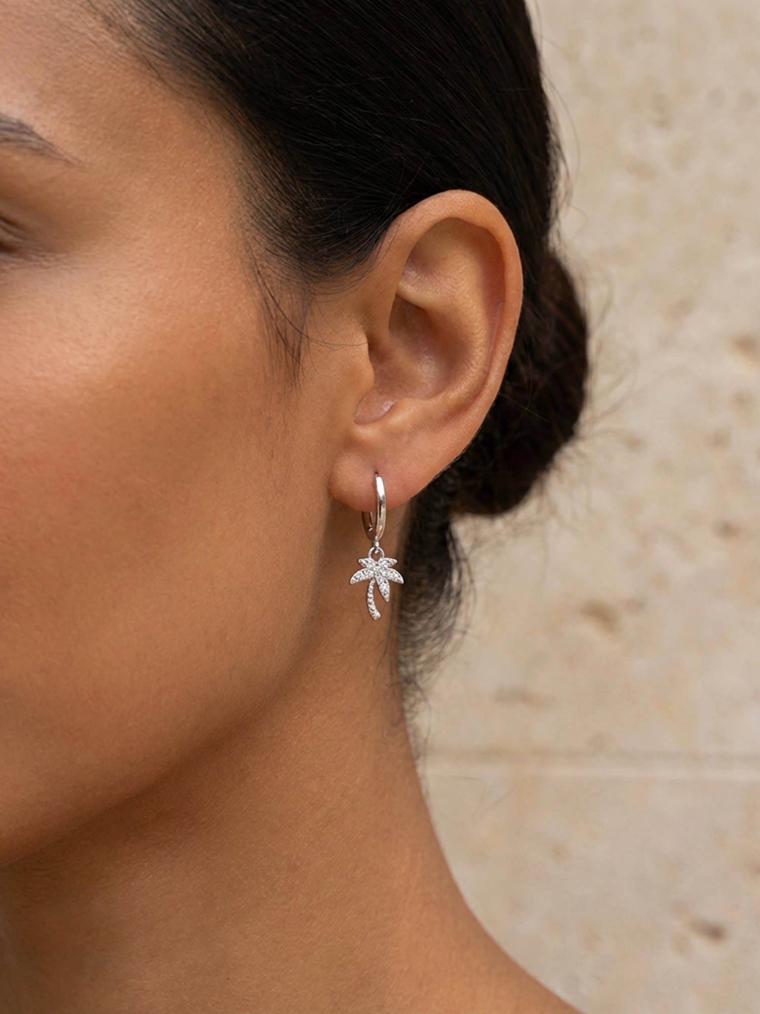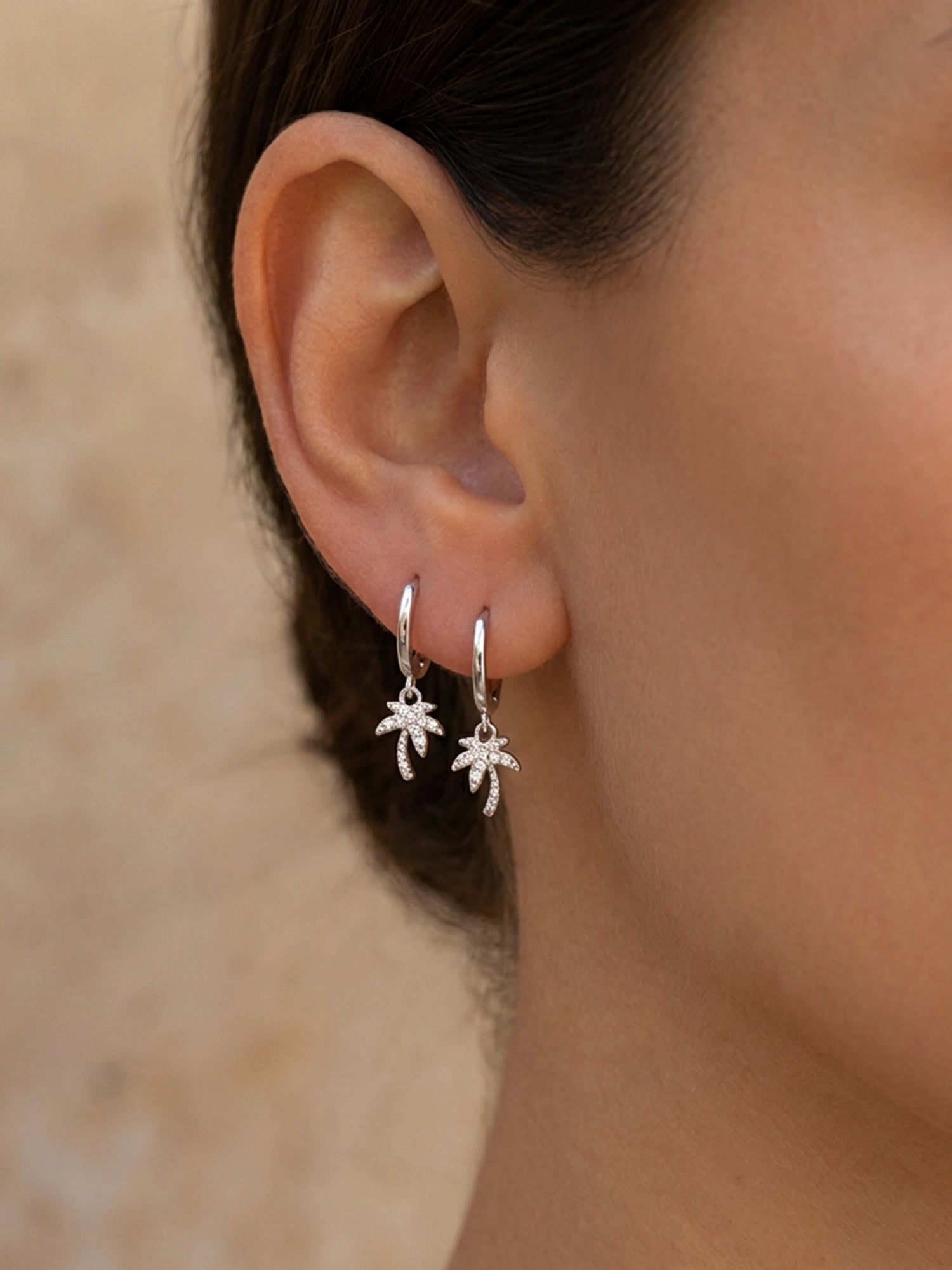 The silver zirconia palm hoop earrings exude instant summery lightness. The small palm pendant is set with sparkling zirconia and sways gently with every movement – ​​subtle, playful, and just right as a little highlight.