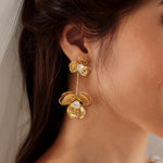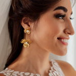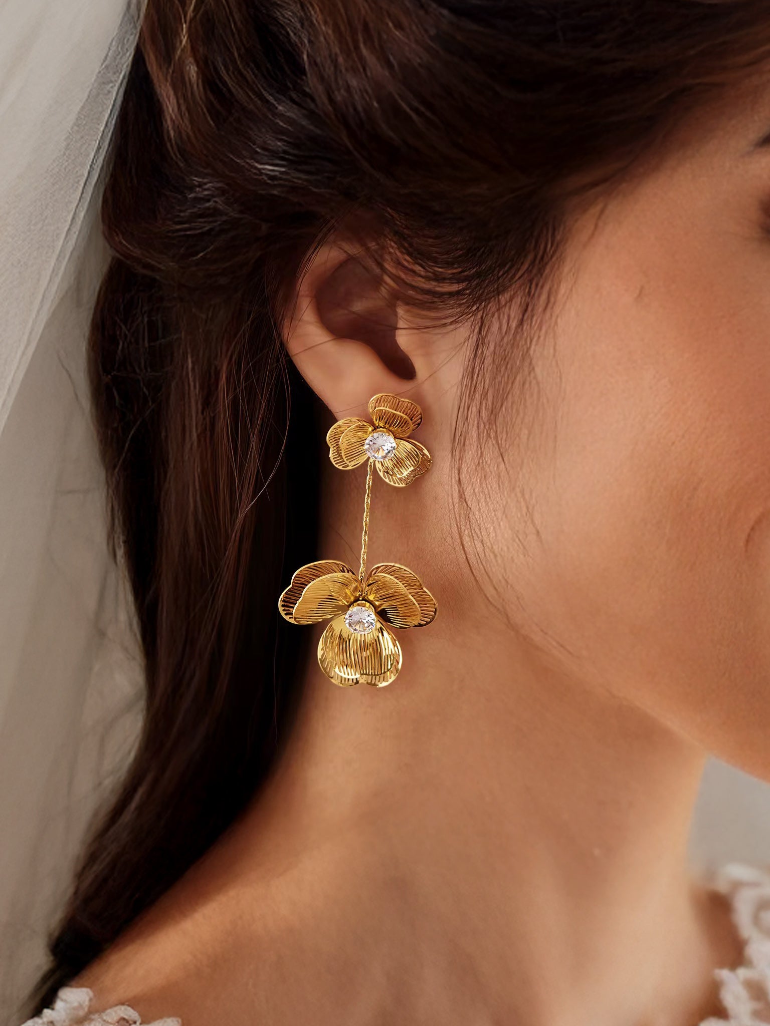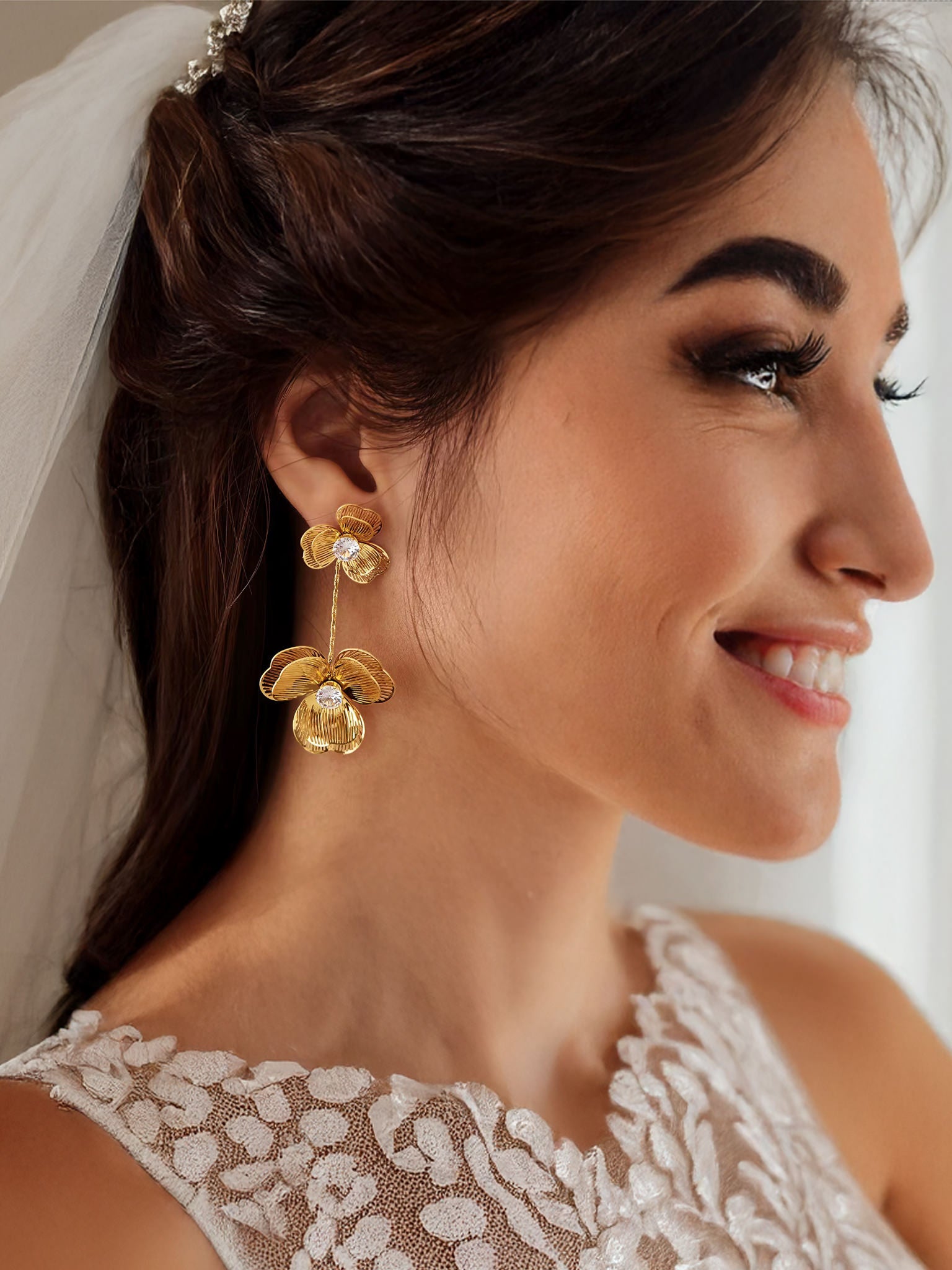 Elegante Statement-Ohrringe in Orchideenform aus 18 Karat vergoldetem Edelstahl mit funkelnden Zirkonia Steinen – das Highlight für deinen Bridal-Look.