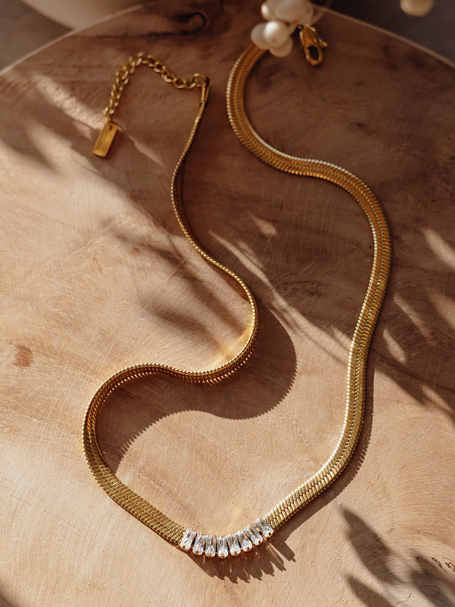 Our jewelry is made from high-quality materials that are not only beautiful, but also durable and comfortable. We use robust stainless steel, which is waterproof, hypoallergenic, and perfect for everyday wear—whether swimming, showering, or exercising. We also offer jewelry made from precious 925 sterling silver, which impresses with its timeless elegance. Many of our designs are also finished with high-quality 18-karat gold plating, which ensures a particularly sophisticated look and preserves their radiant color for a long time.