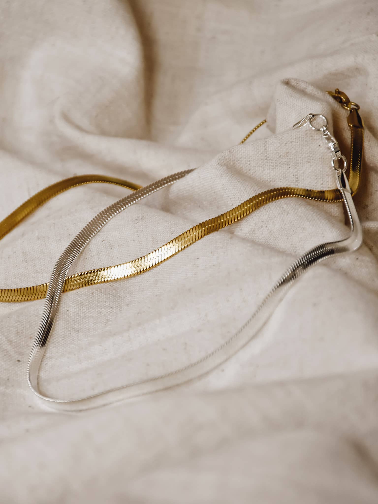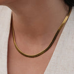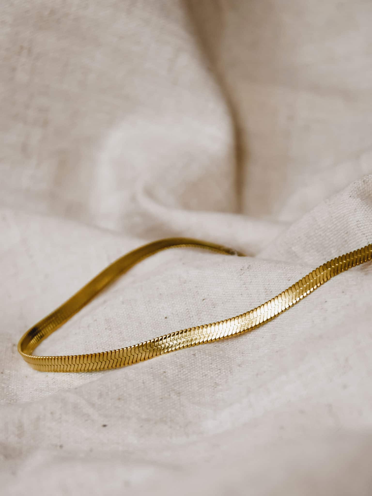 Our Herringbone Necklace Gold is the perfect piece for your boho look! With its striking herringbone pattern, it adds that special something to your outfit. The chain is made of high-quality 316L stainless steel and features 18K gold plating. The chain has a length of 40-43 cm and is adjustable, so it can be perfectly adjusted to your needs. With a diameter of 5 mm, it's neither too thick nor too thin, making it perfect for layering. Our Herringbone Necklace Gold is nickel-free and therefore suitable for sensitive skin. It's the perfect base for your next layered look and is guaranteed to delight you! So what are you waiting for? Get our Herringbone Necklace Gold now and add the perfect boho touch to your look!
