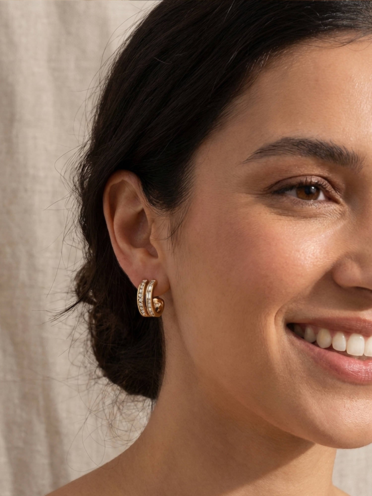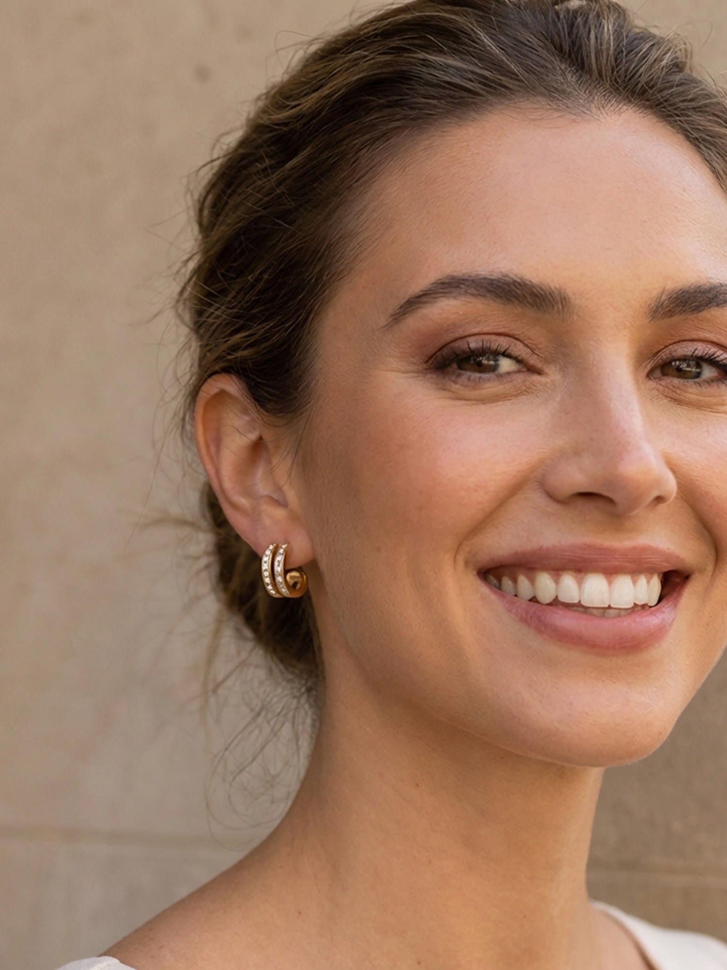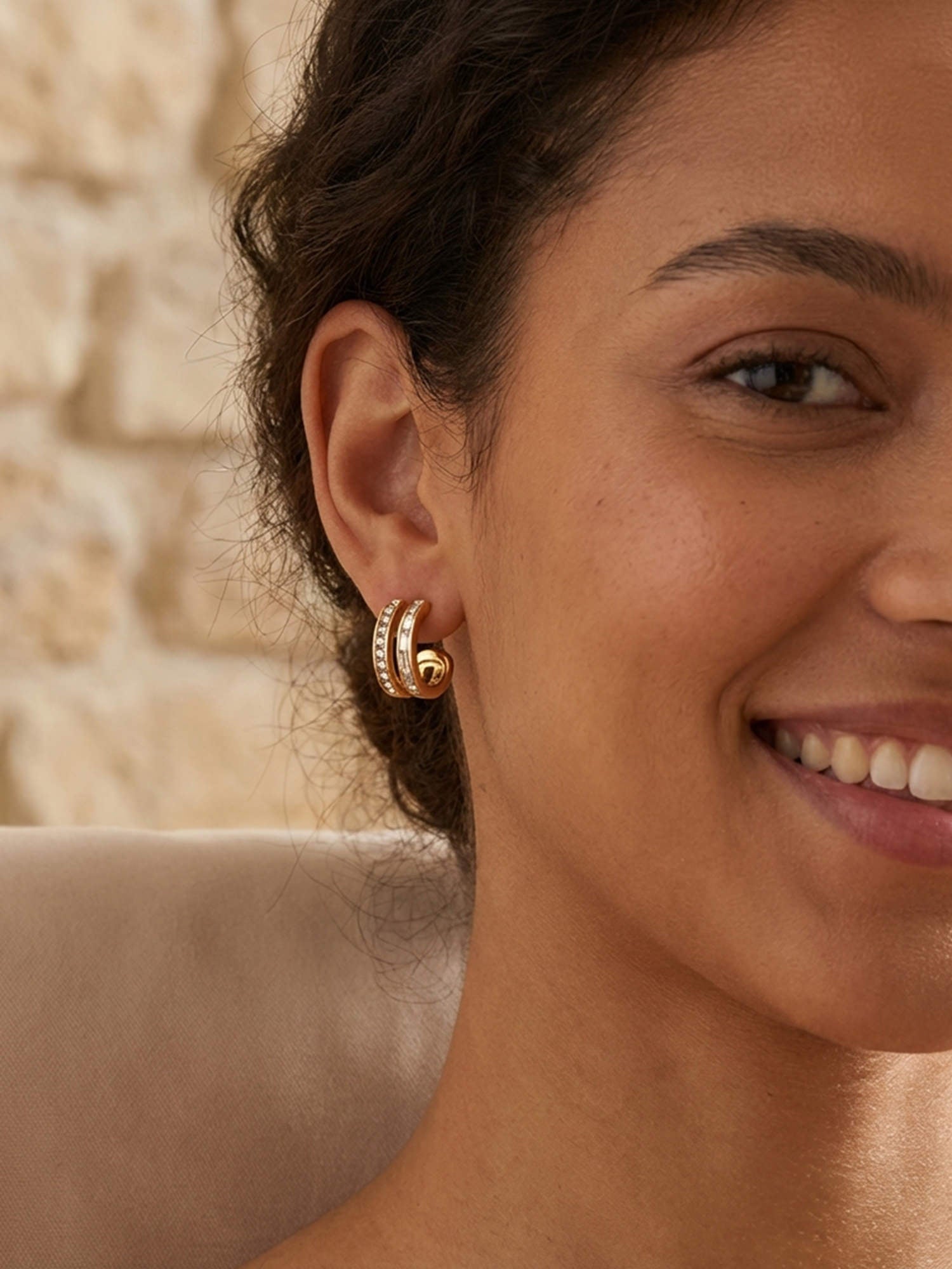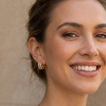 Our Dubai hoop earrings are a true eye-catcher! Featuring sparkling zirconia and baguette stones, they enhance any outfit and add elegant accents.