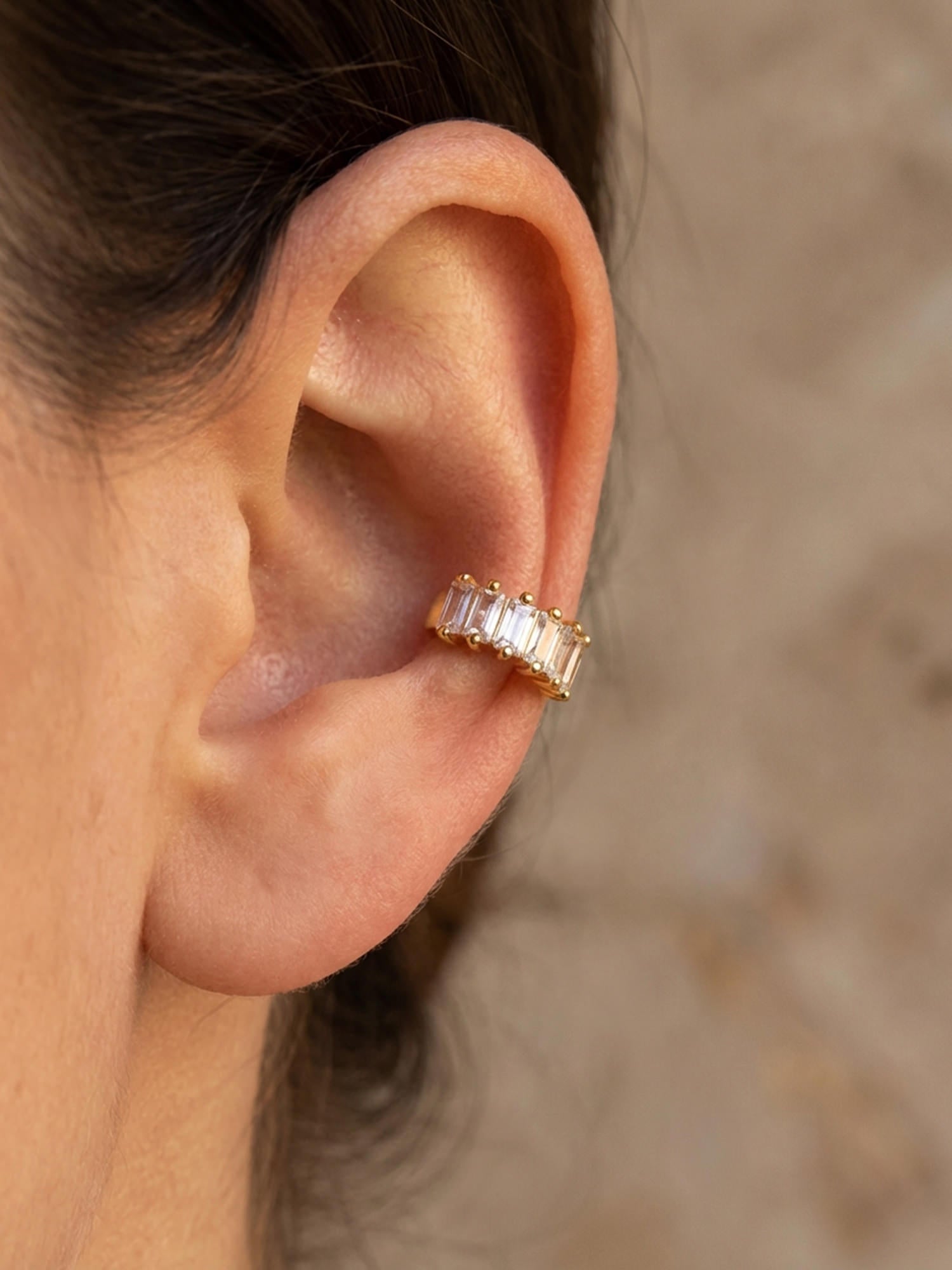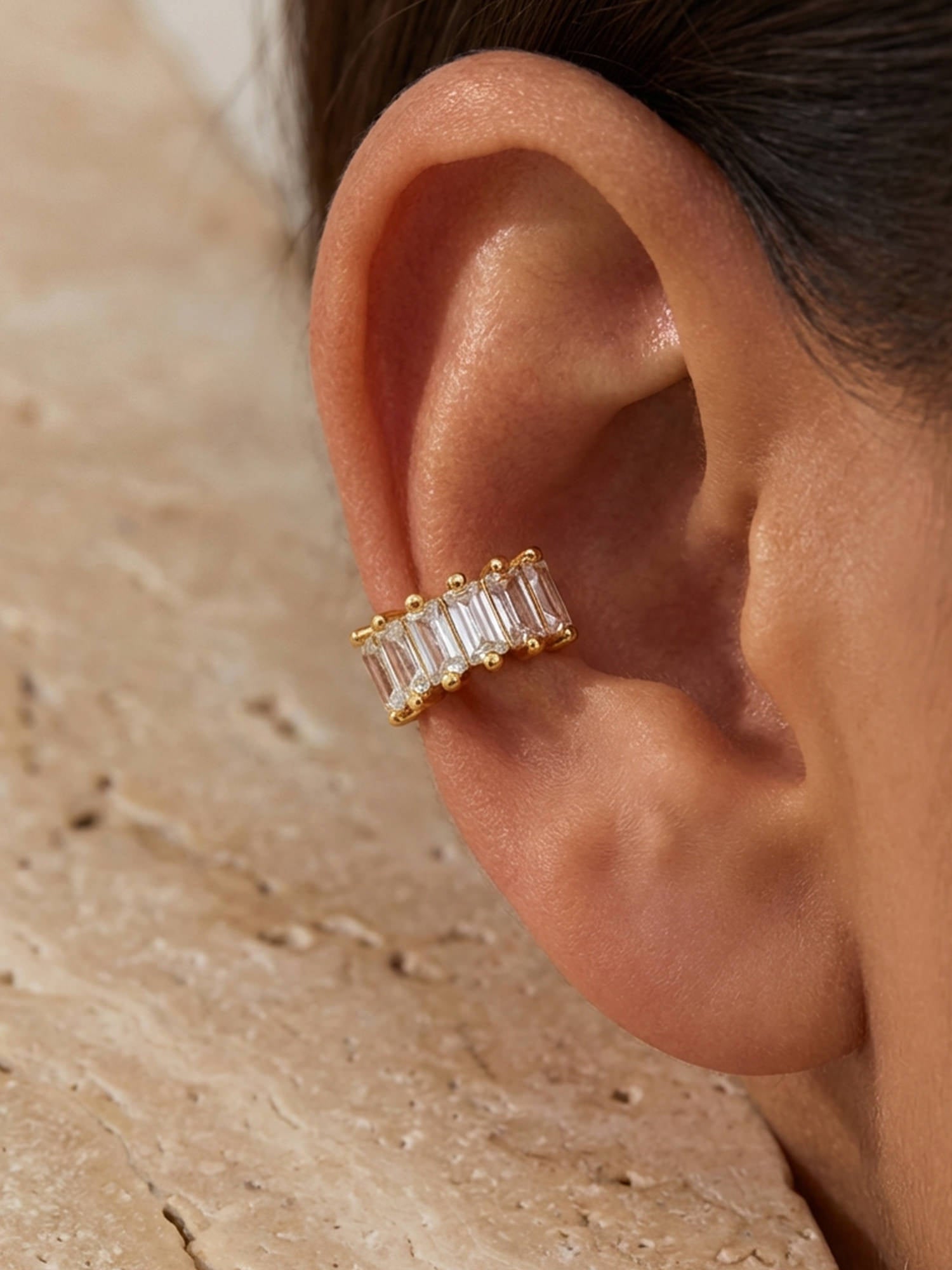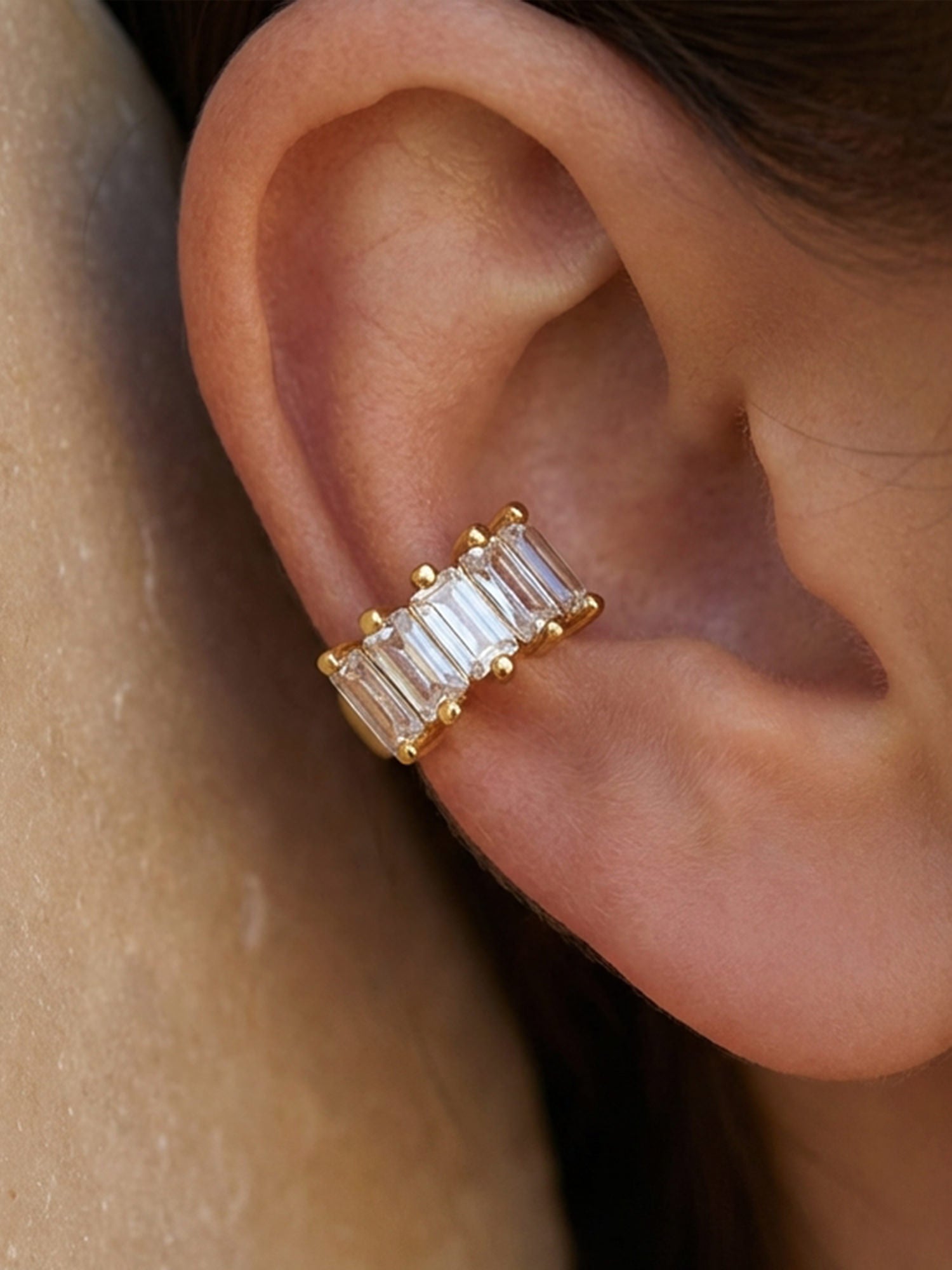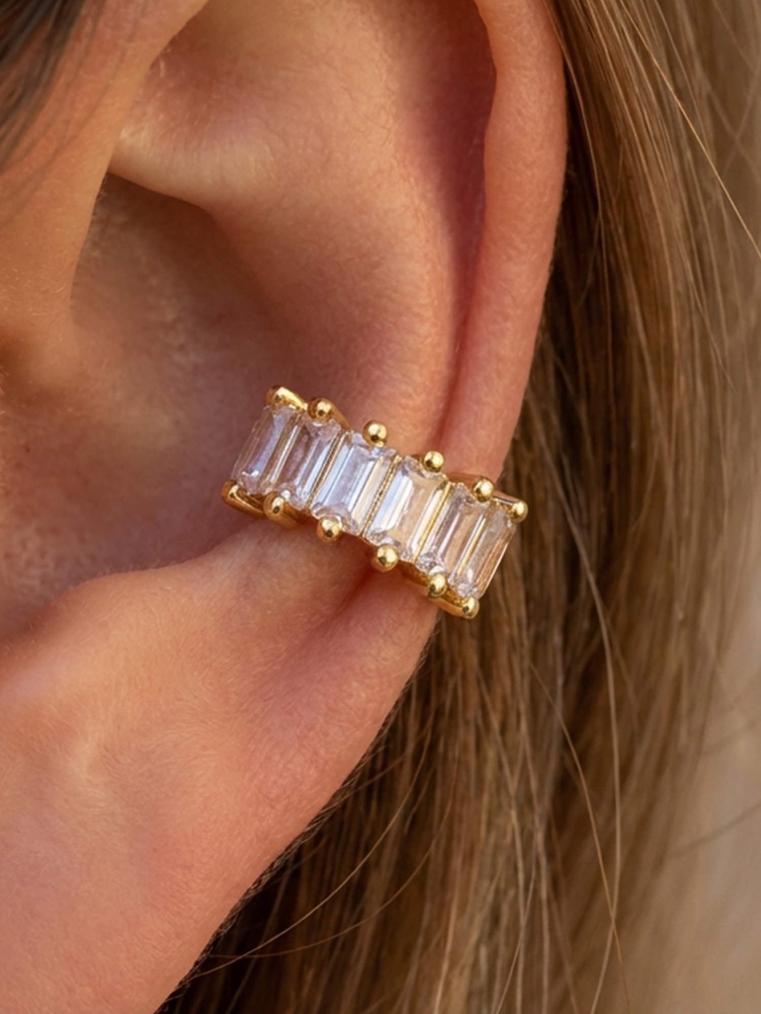 Donnez à vos boucles d'oreilles ce petit quelque chose en plus avec cette manchette d'oreille spéciale décorée de pierres baguette étincelantes.