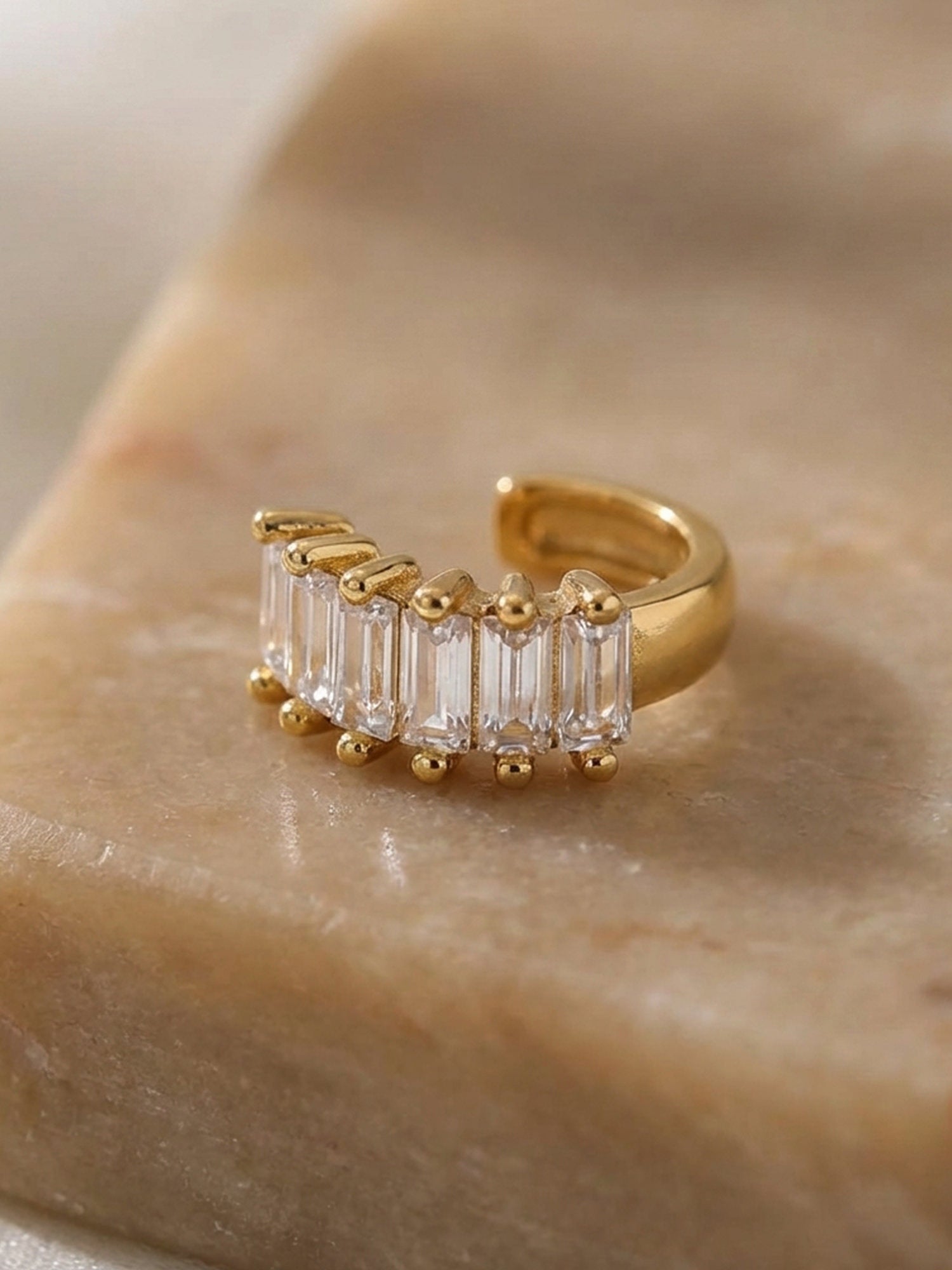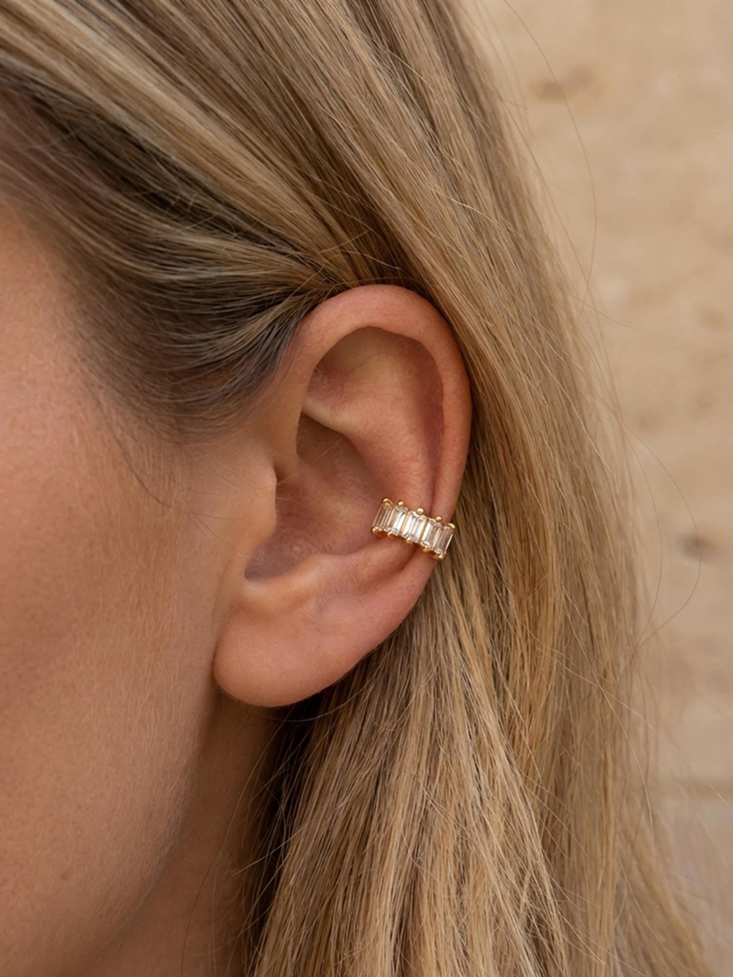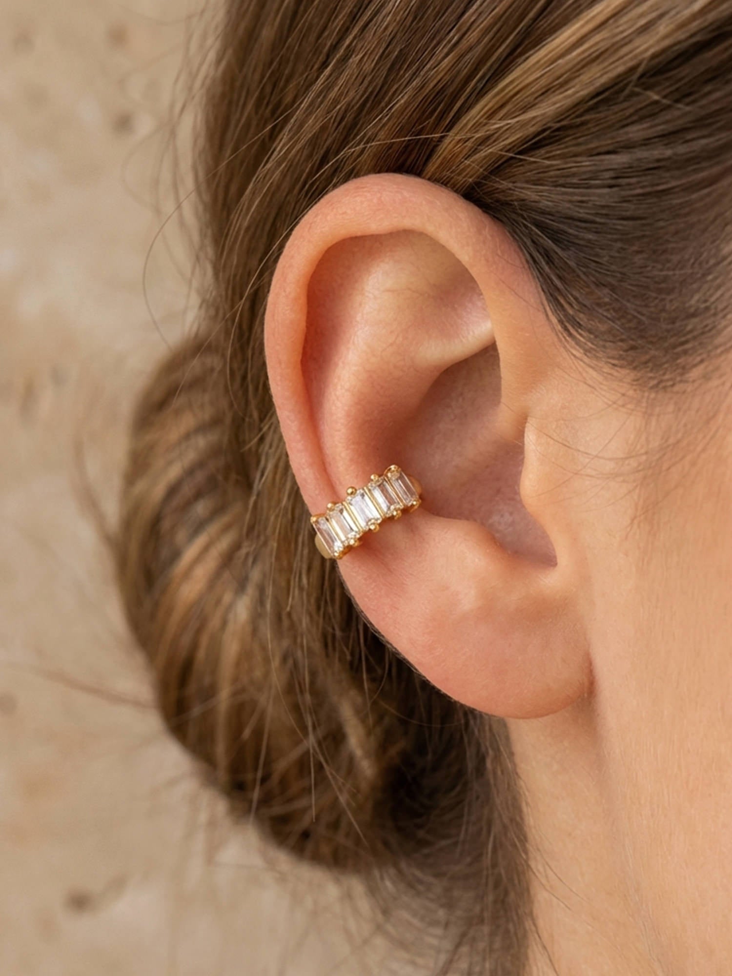 Donnez à vos boucles d'oreilles ce petit quelque chose en plus avec cette manchette d'oreille spéciale décorée de pierres baguette étincelantes.