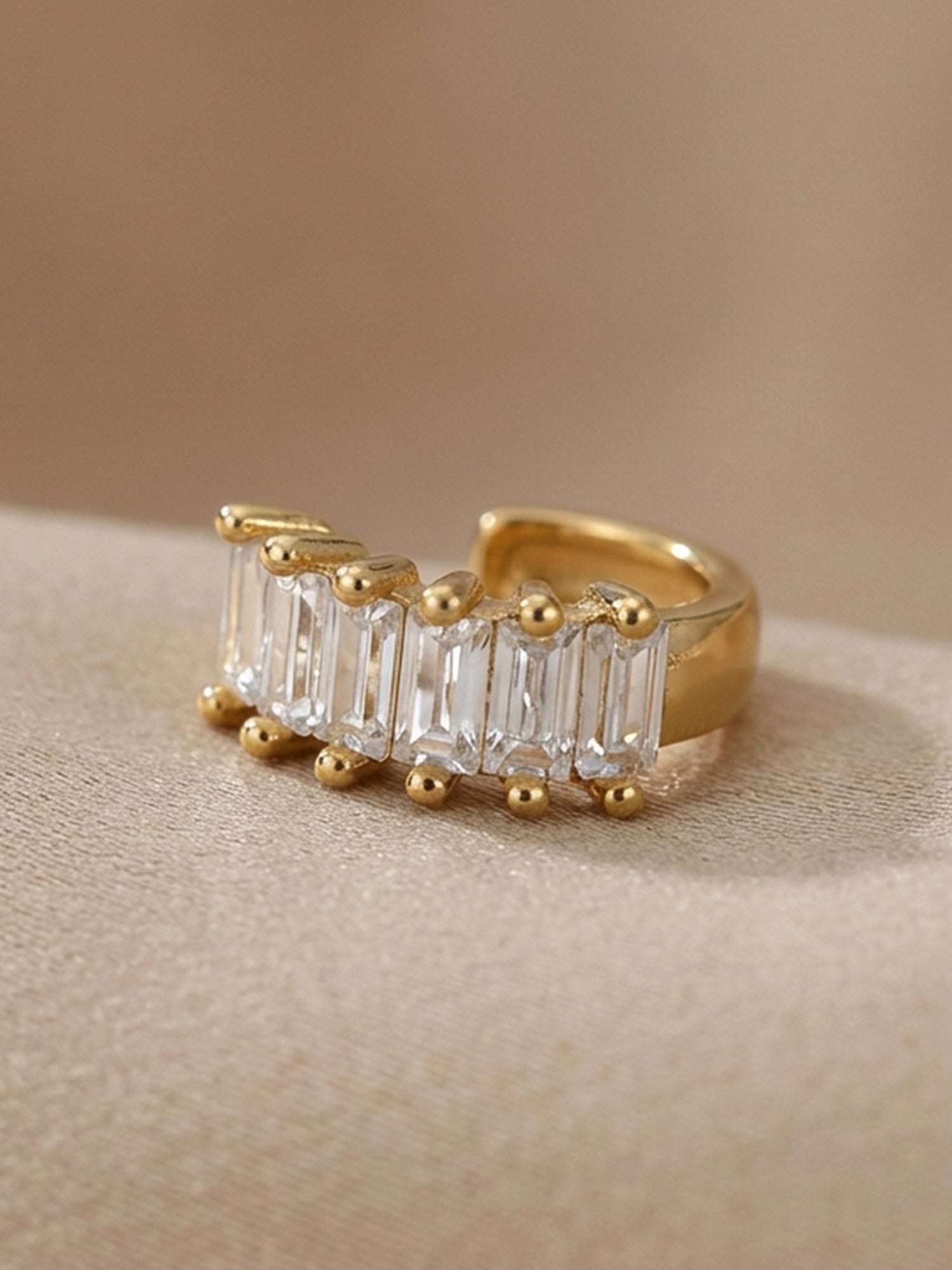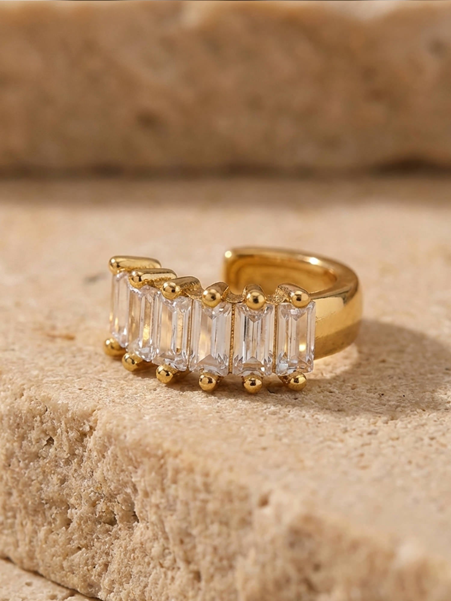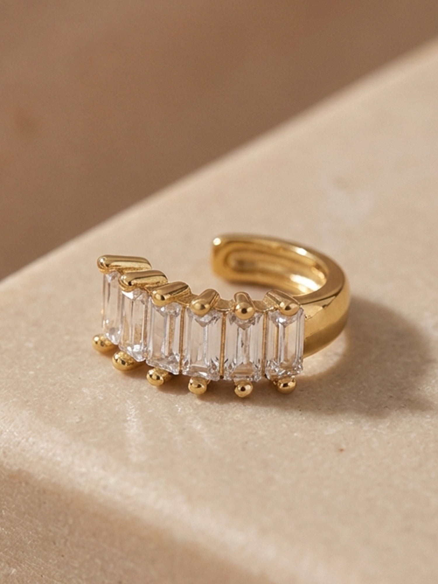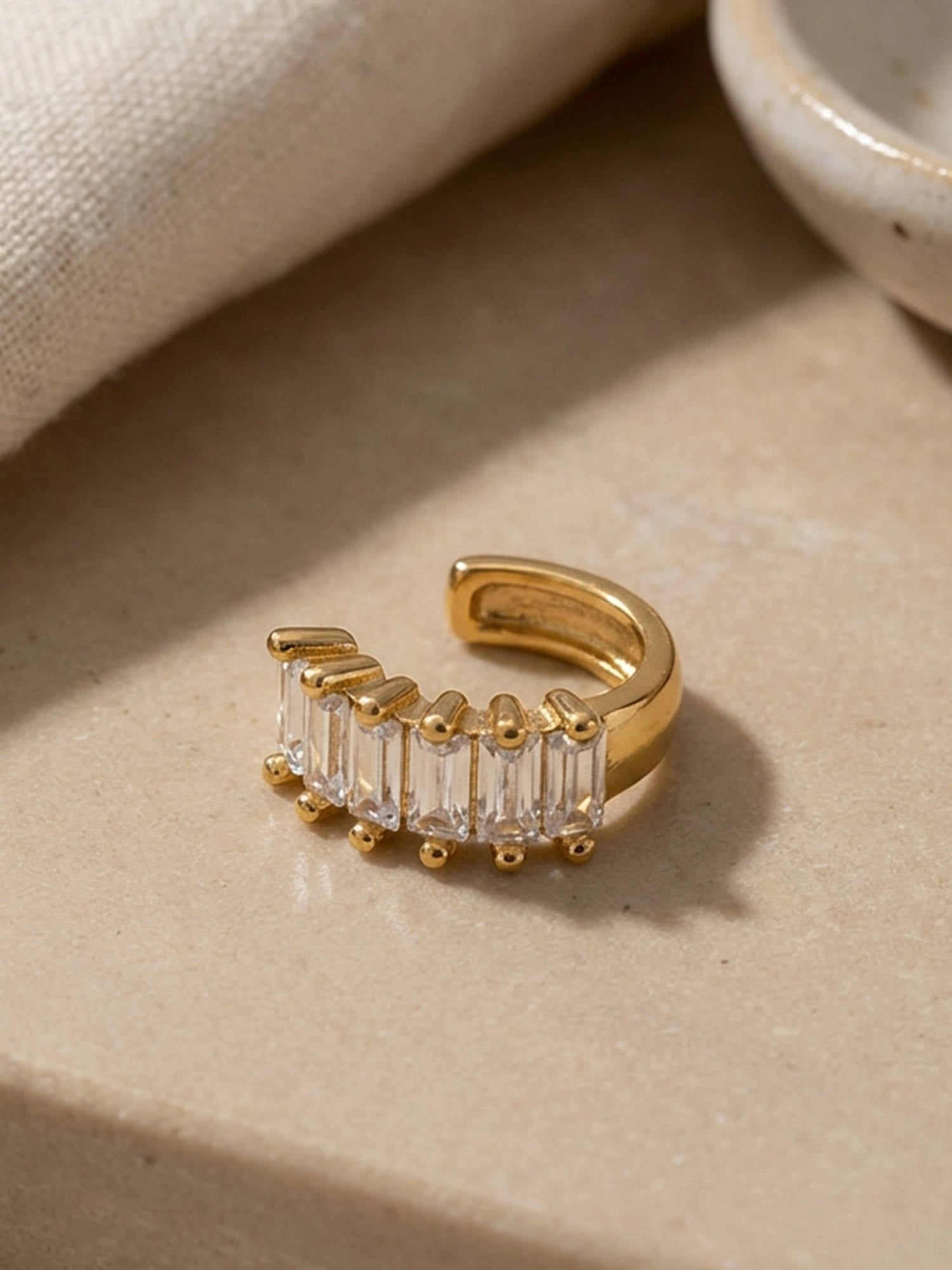 Donnez à vos boucles d'oreilles ce petit quelque chose en plus avec cette manchette d'oreille spéciale décorée de pierres baguette étincelantes.
