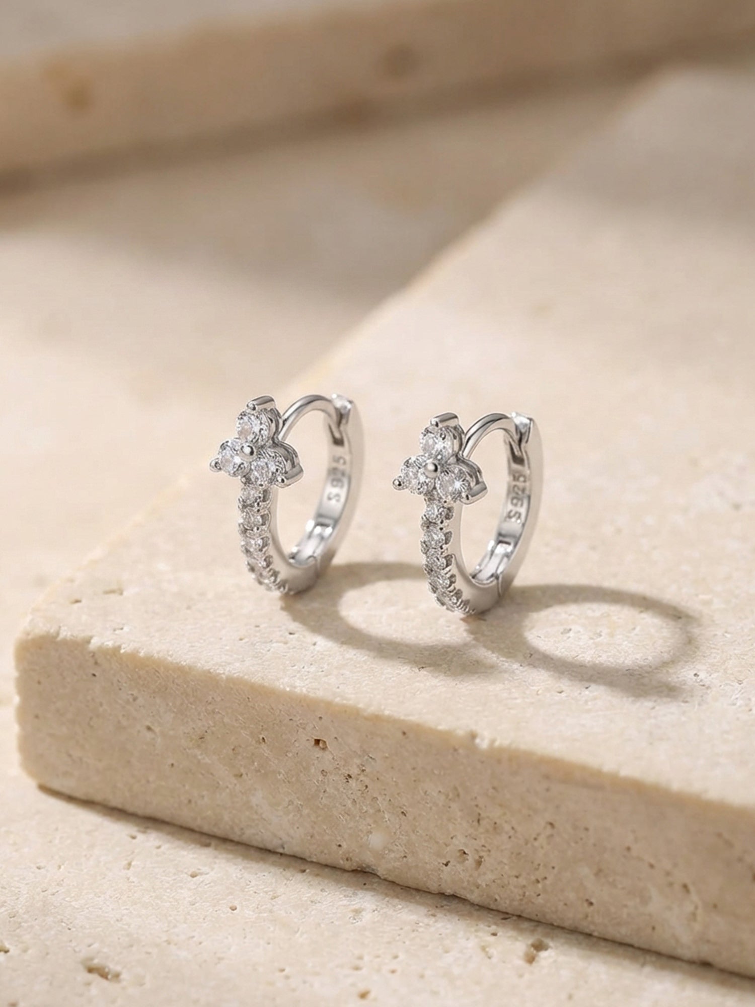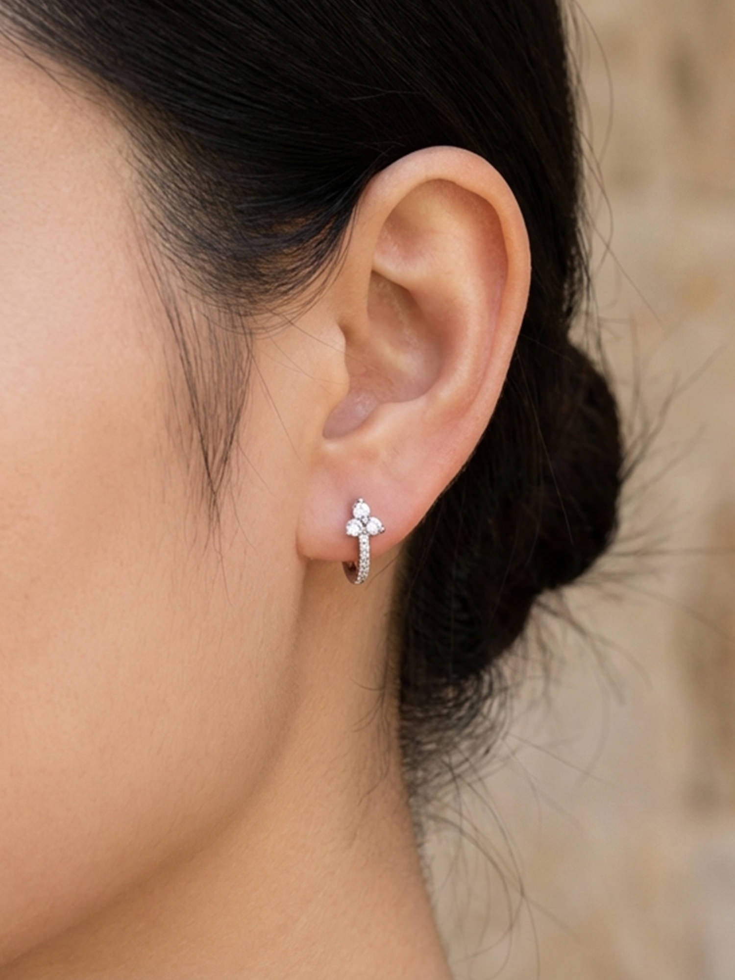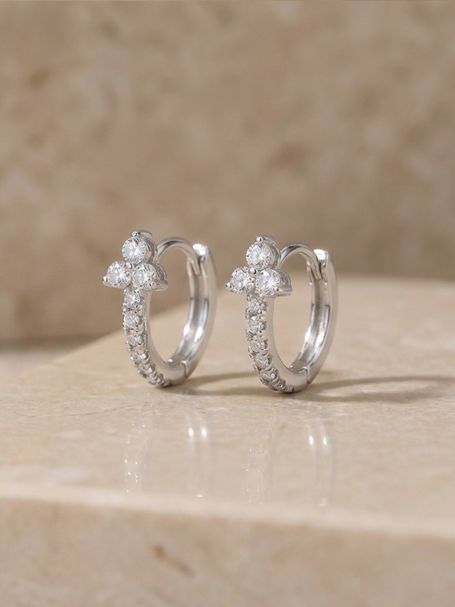 Les créoles en argent Trikonia sont ornées de nombreuses zircones brillantes disposées à leurs extrémités en forme de fleur. Ces créoles éclatantes vous démarqueront instantanément et apporteront la touche finale à votre tenue.