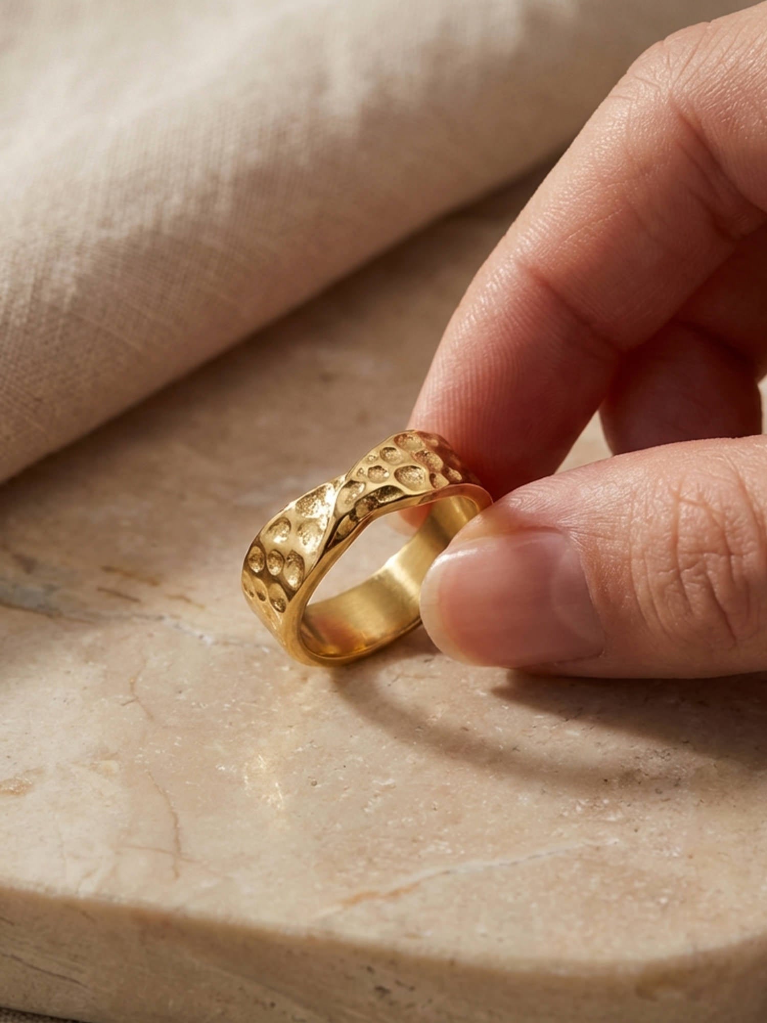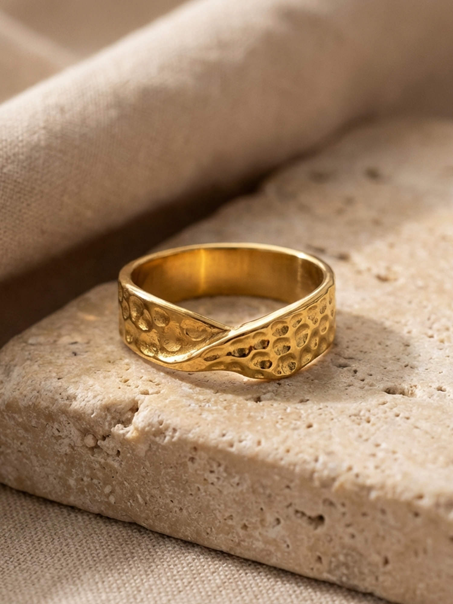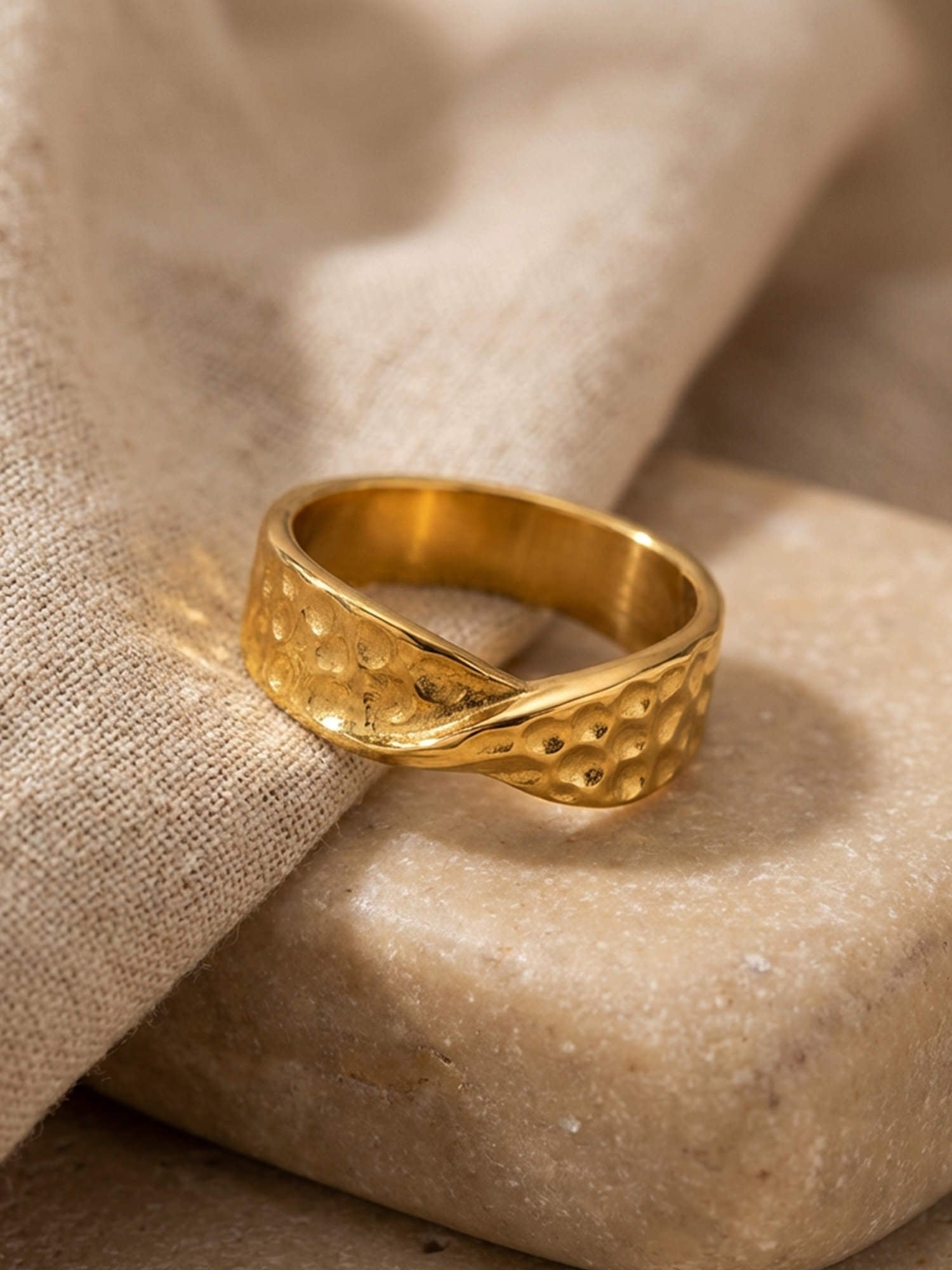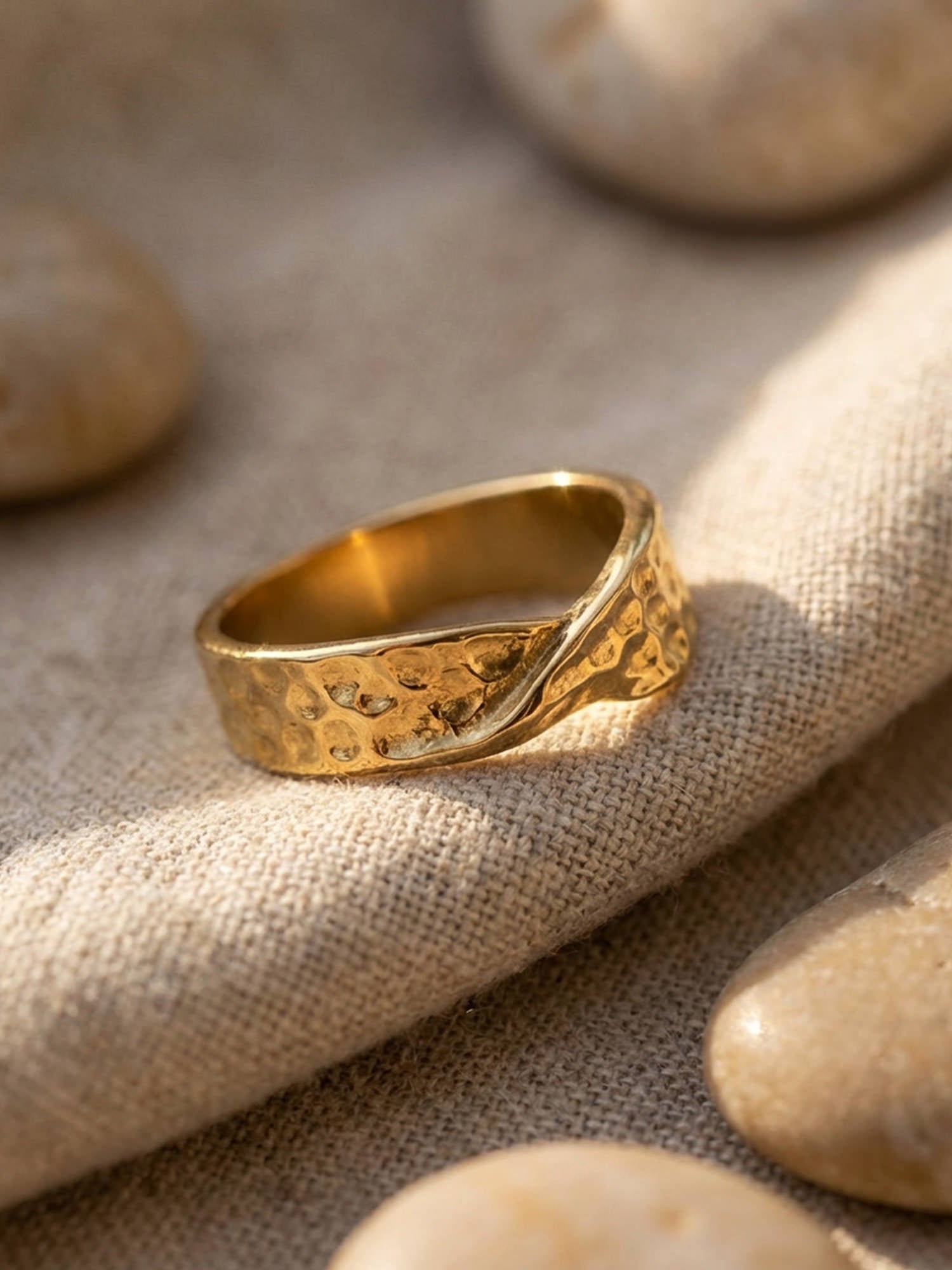 18 Karat vergoldeter Hammered Ring aus Edelstahl – modern, zeitlos & hypoallergen.