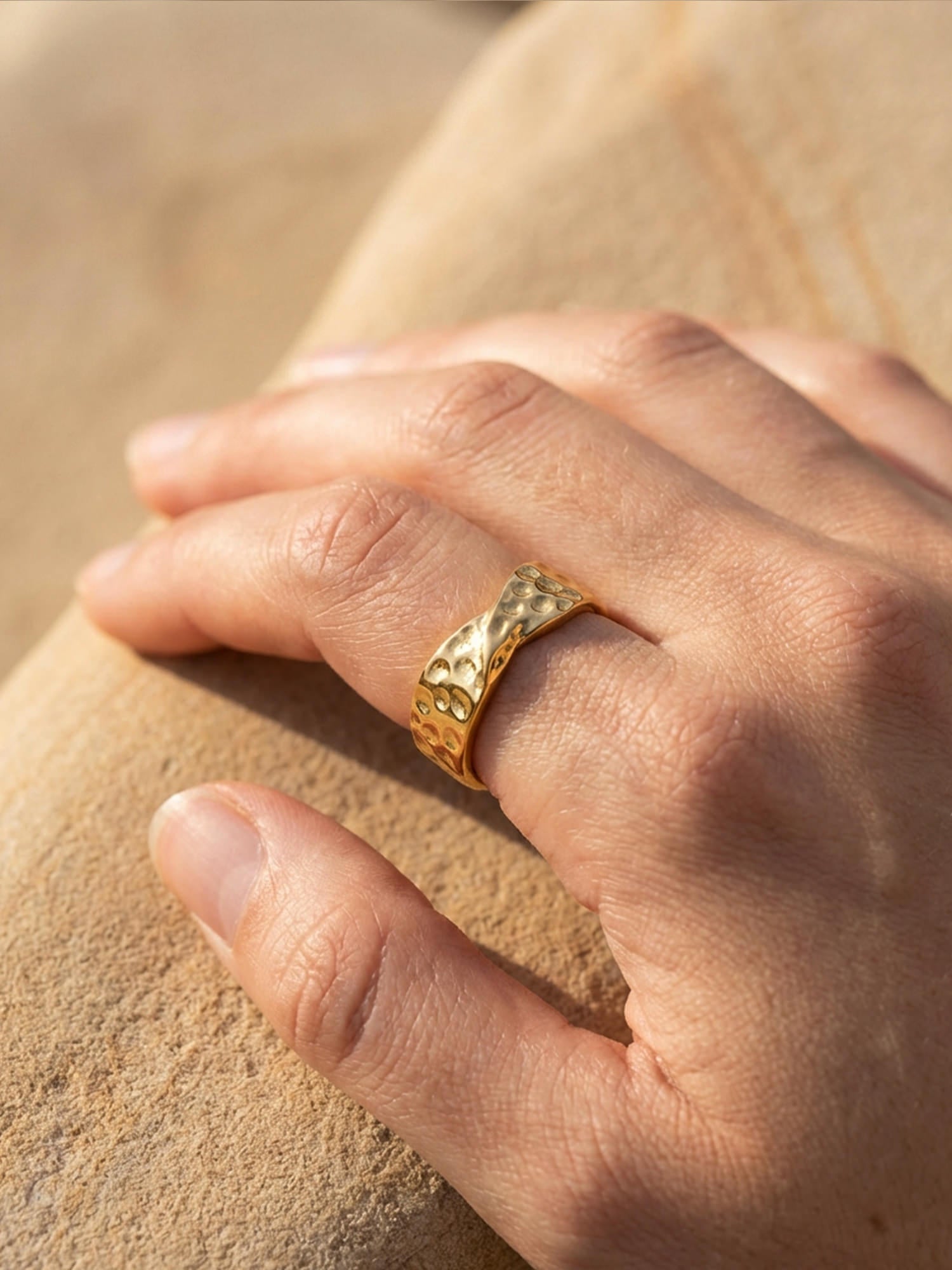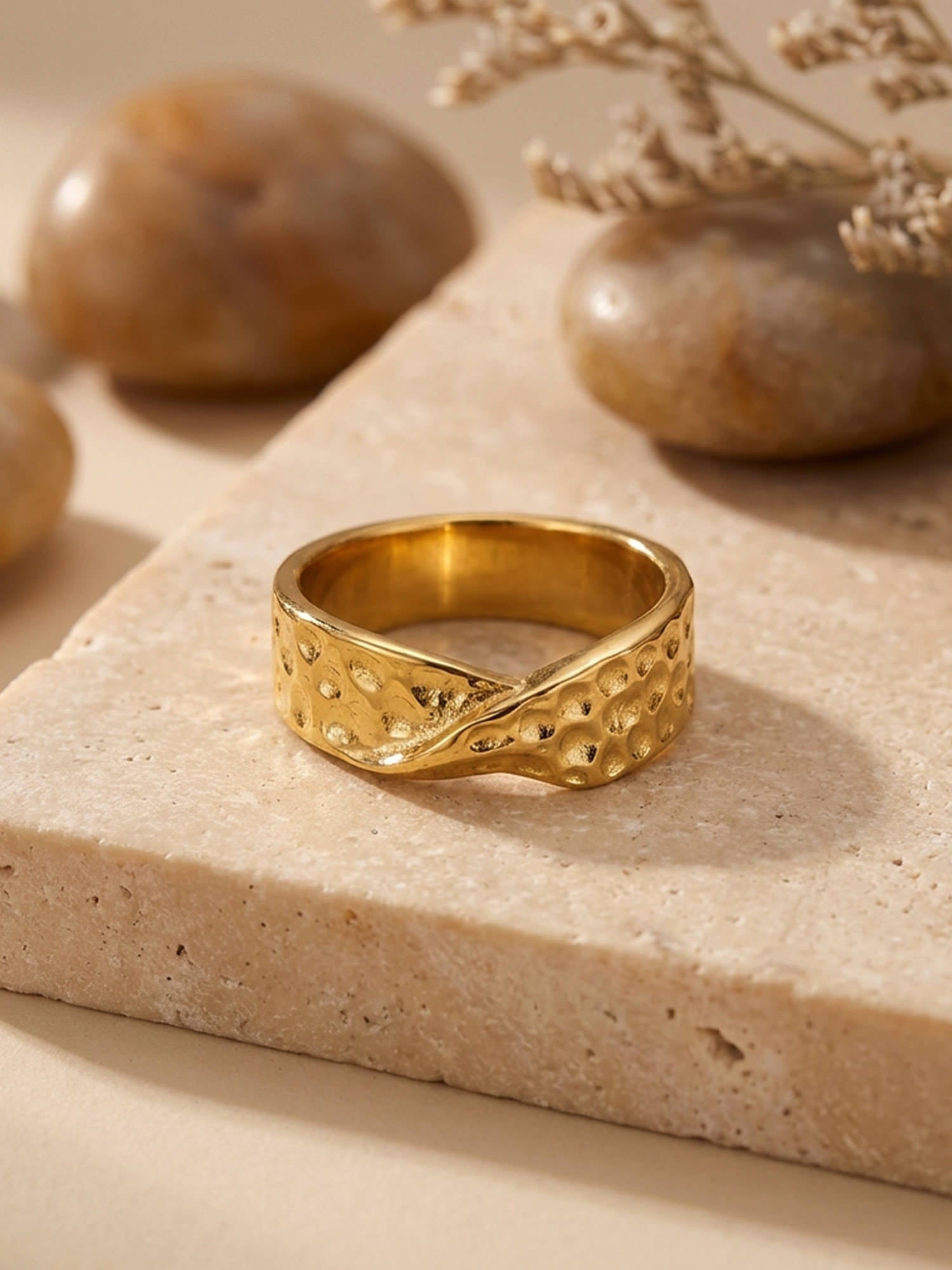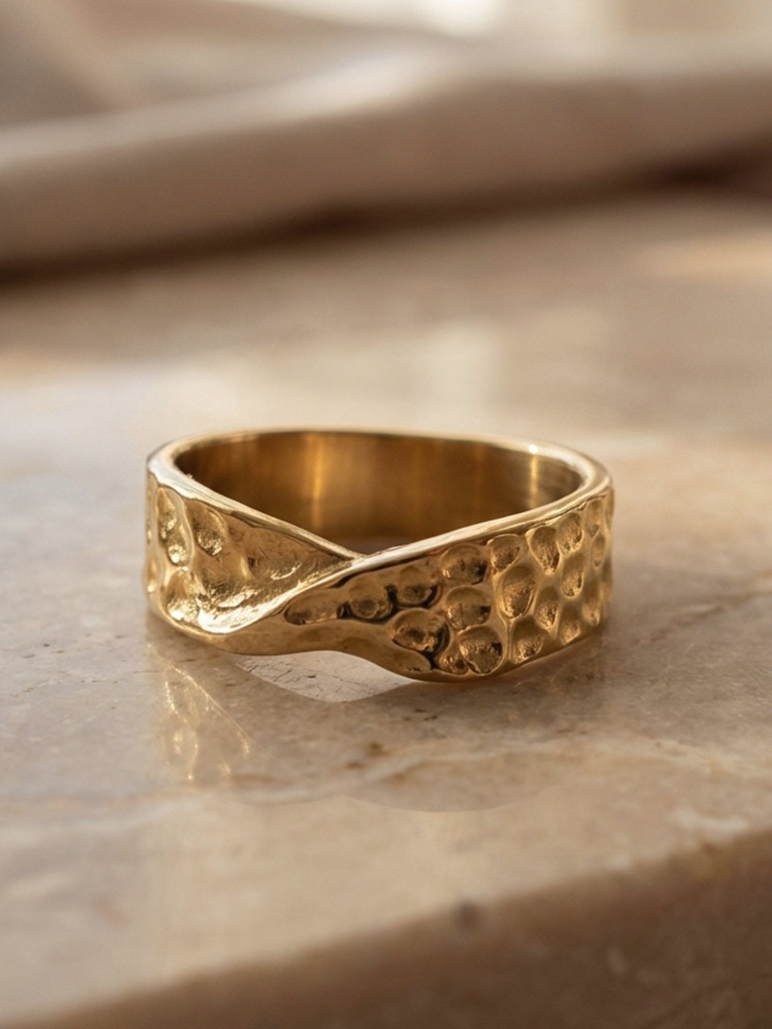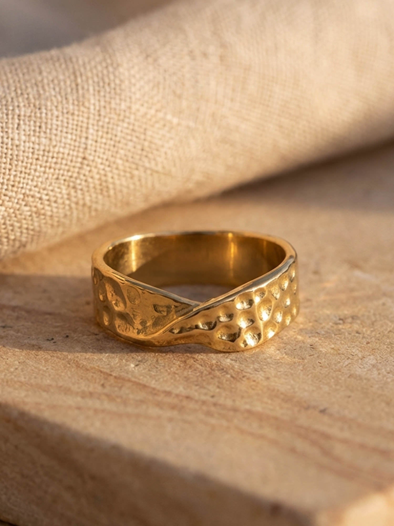 18 Karat vergoldeter Hammered Ring aus Edelstahl – modern, zeitlos & hypoallergen.