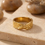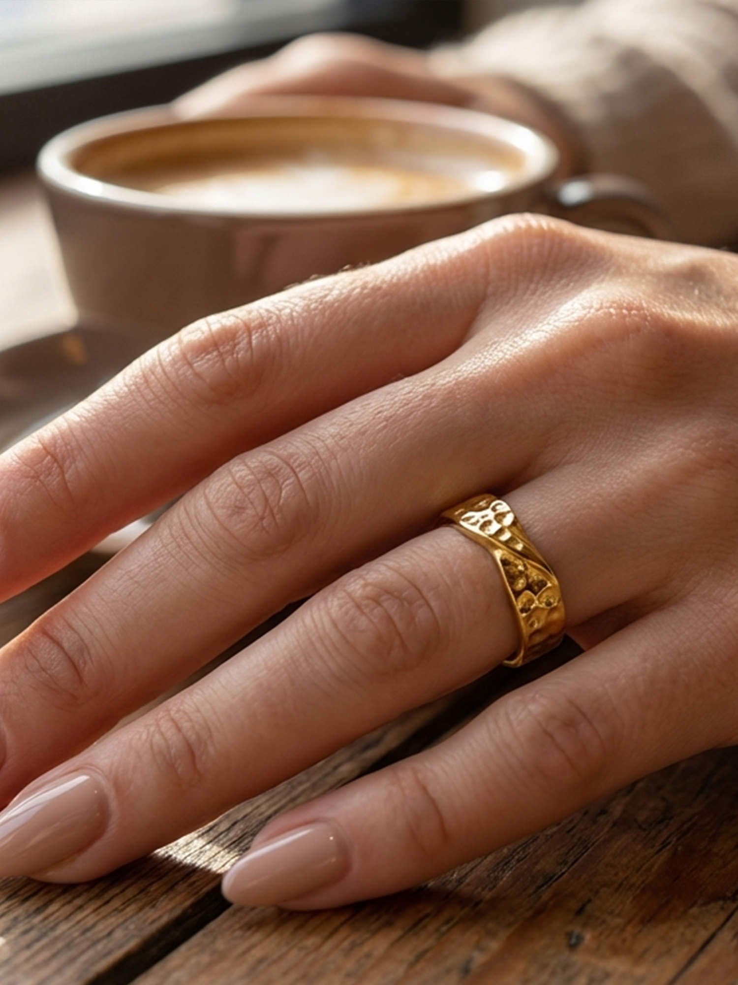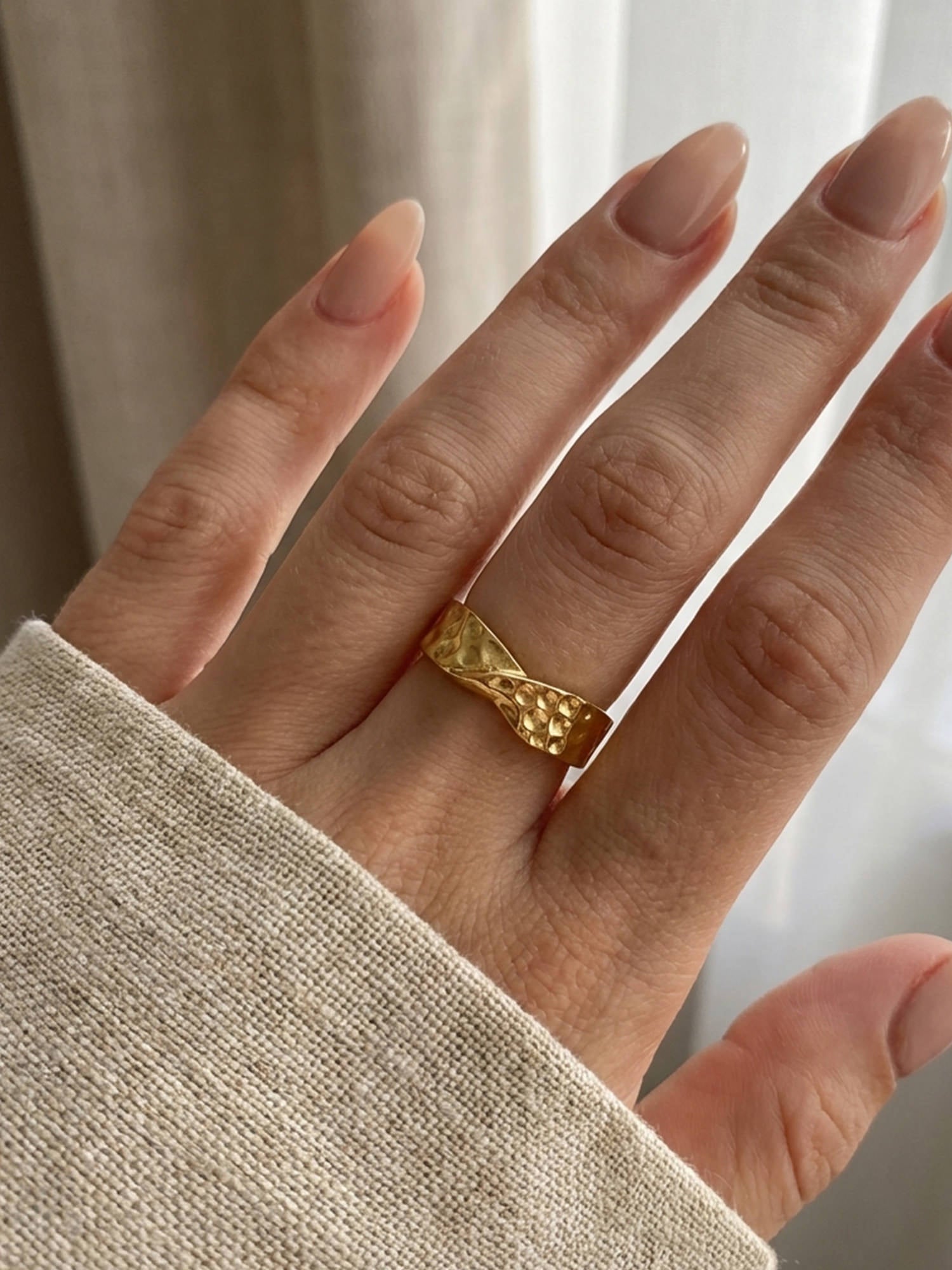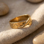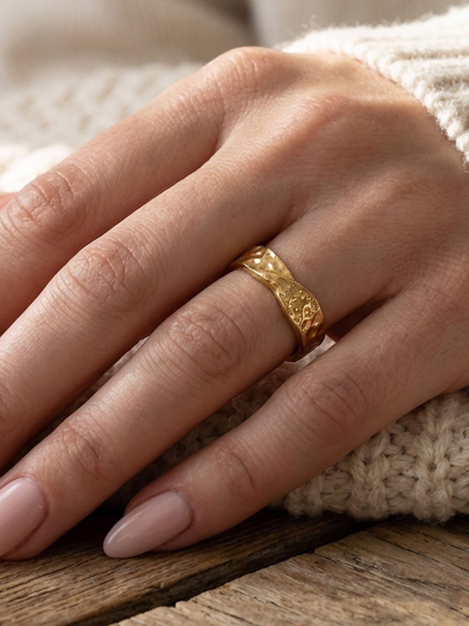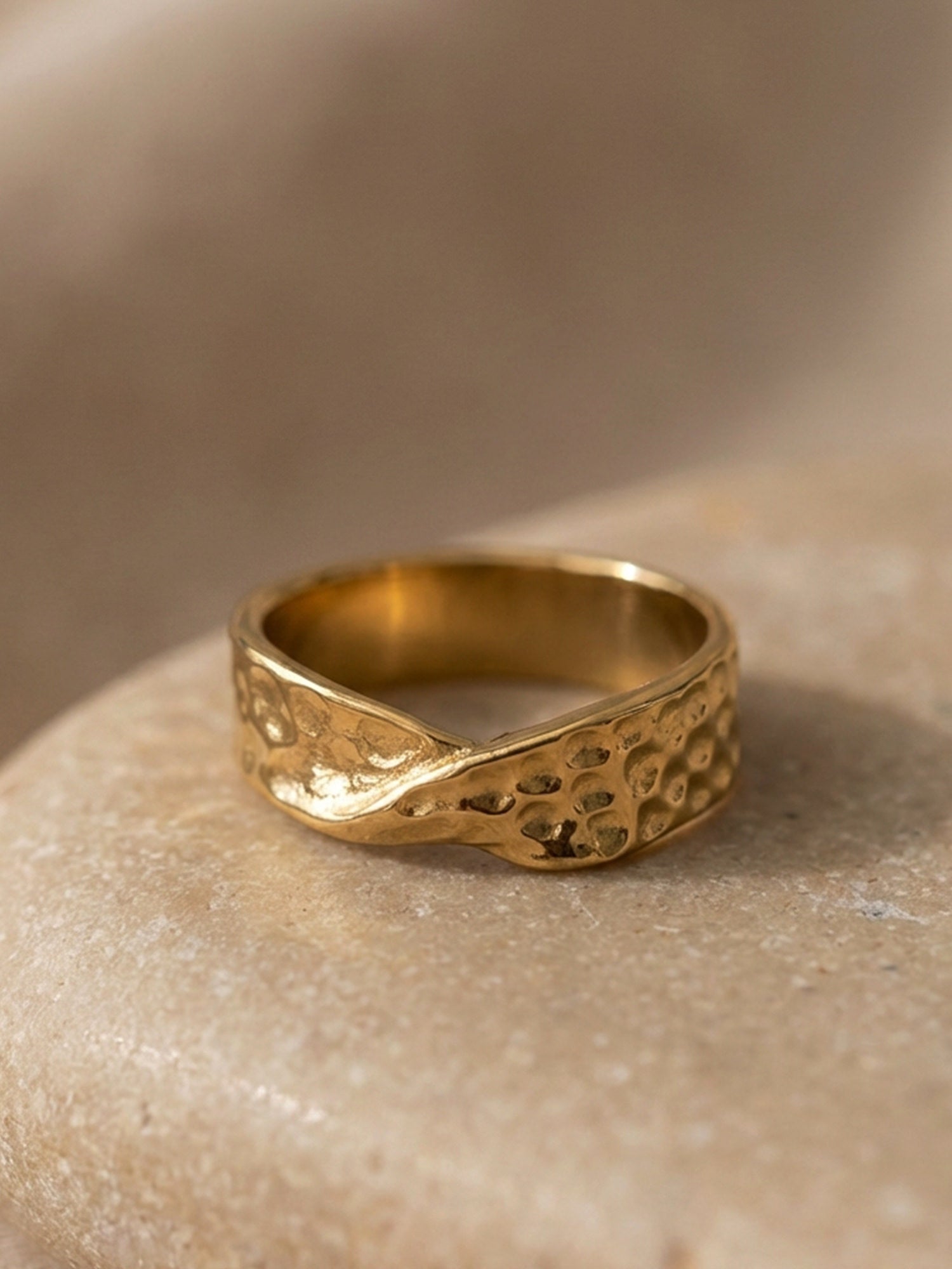 18 Karat vergoldeter Hammered Ring aus Edelstahl – modern, zeitlos & hypoallergen.