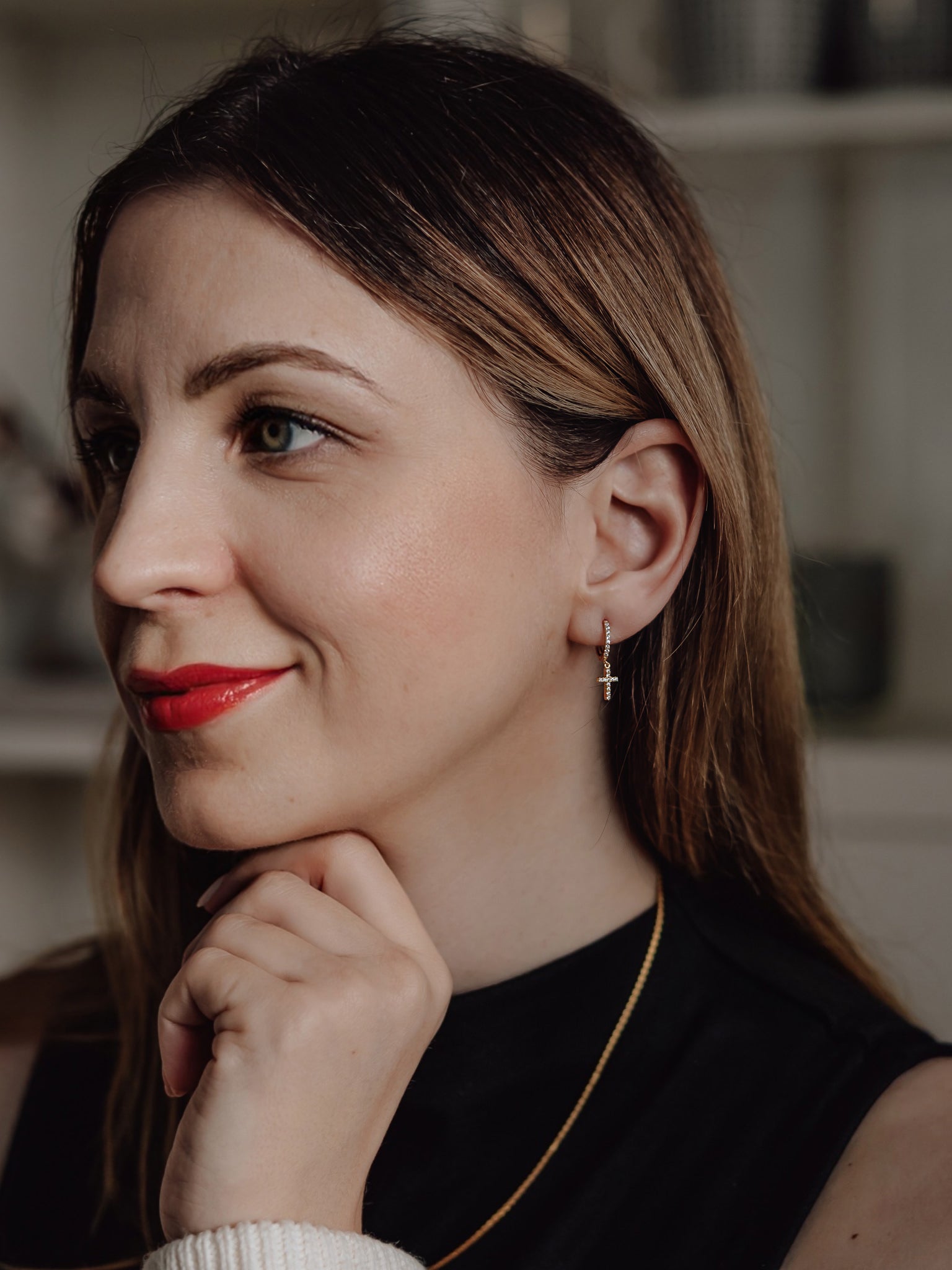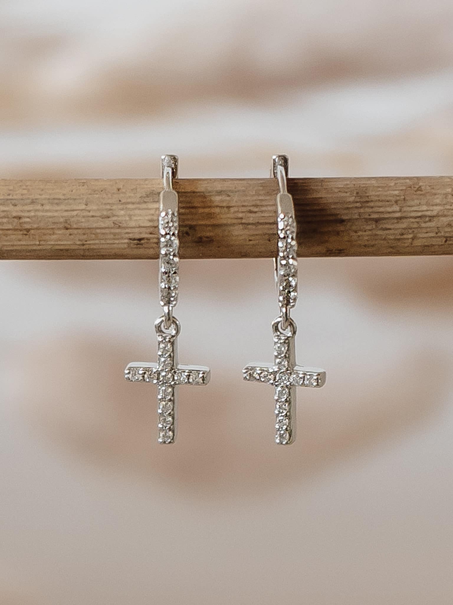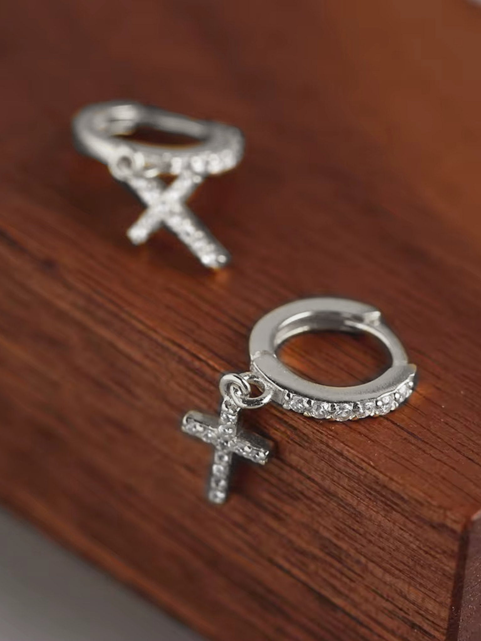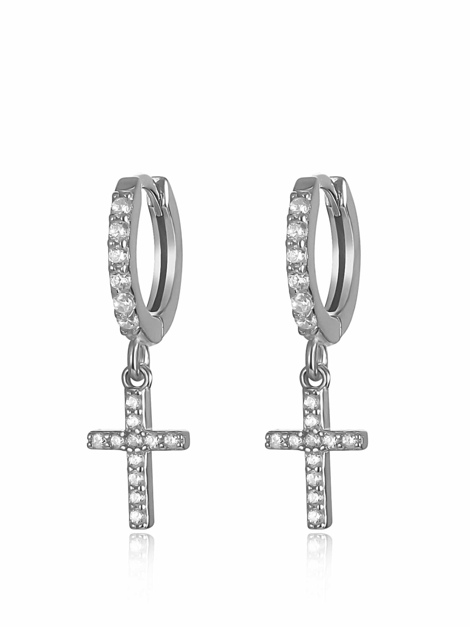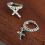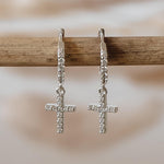Boucles d'oreilles délicates en argent sterling avec un pendentif croix étincelant pour un look intemporel.