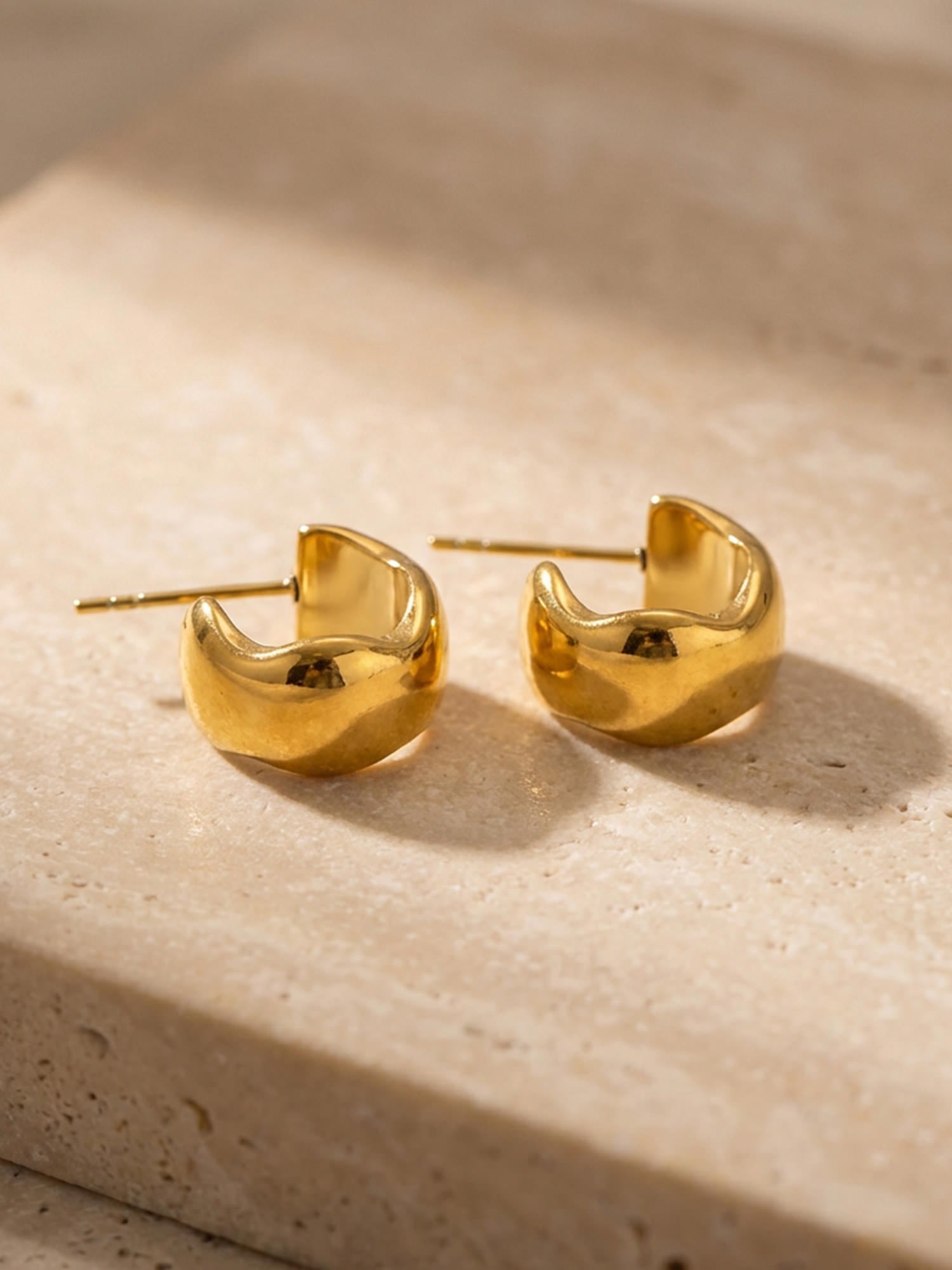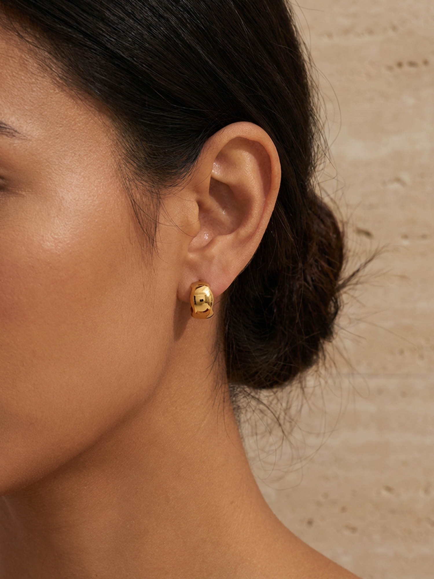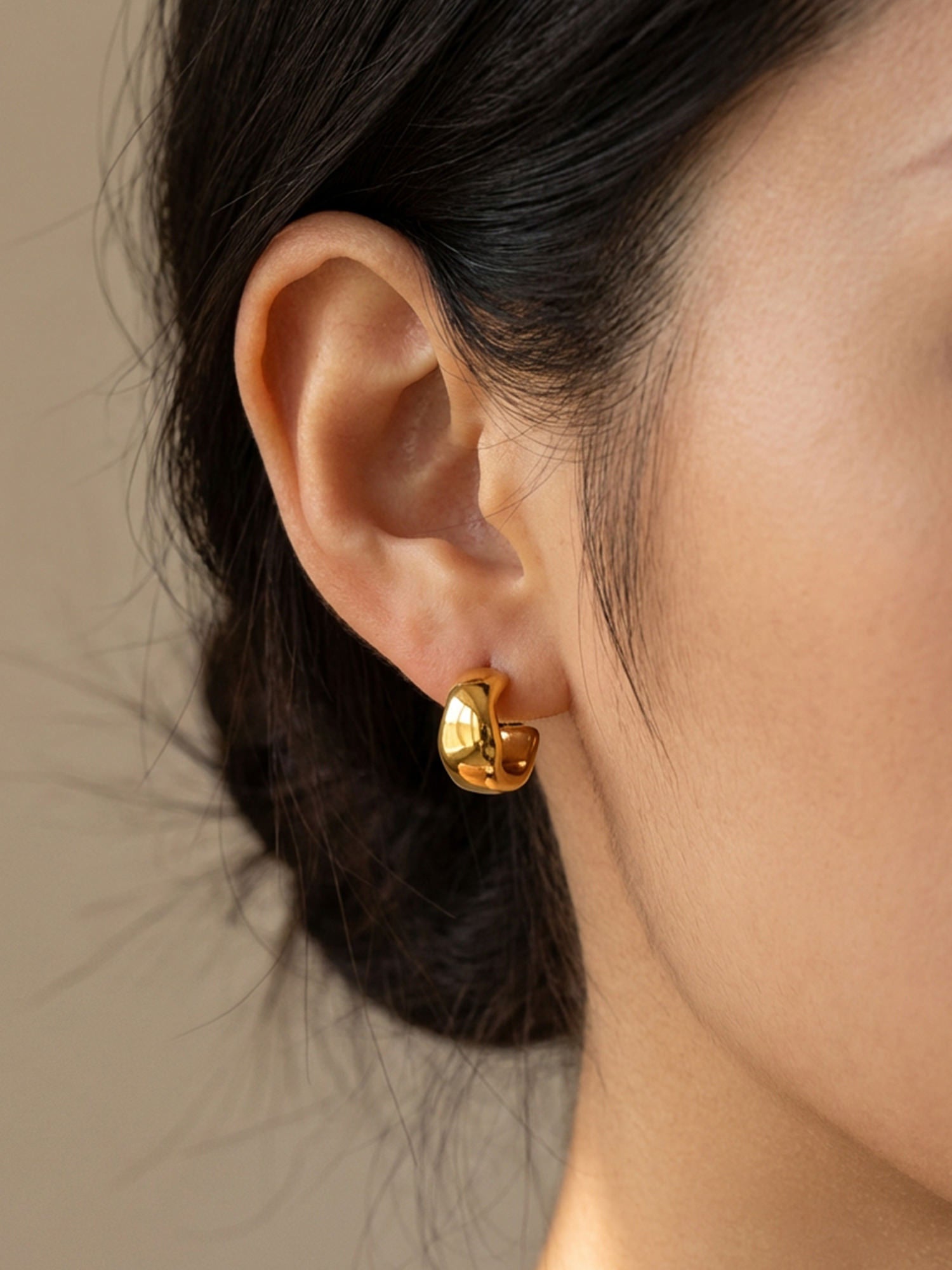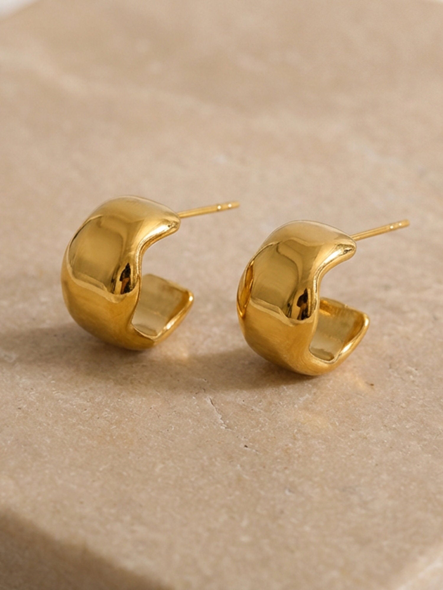 Schlichte Form, starke Wirkung: Unsere Bold Creolen Gold setzen auf eine weich gerundete Silhouette und eine hochglanzpolierte Oberfläche, die das Licht sanft reflektiert. Sie wirken modern und ruhig zugleich – ein Everyday-Piece mit spürbarer Präsenz.