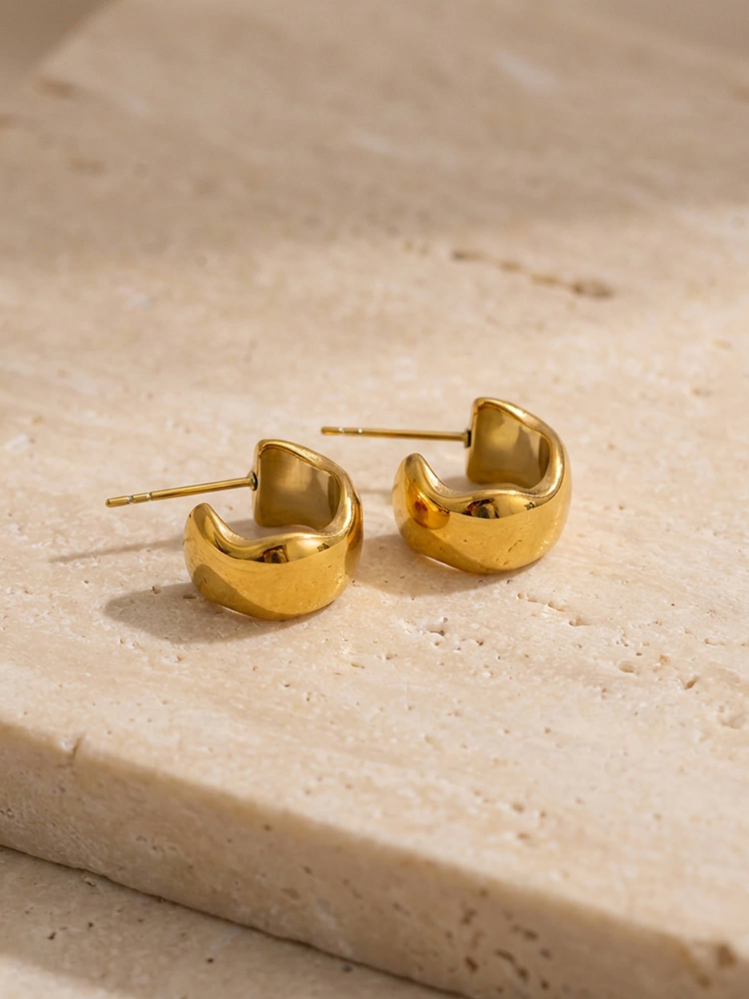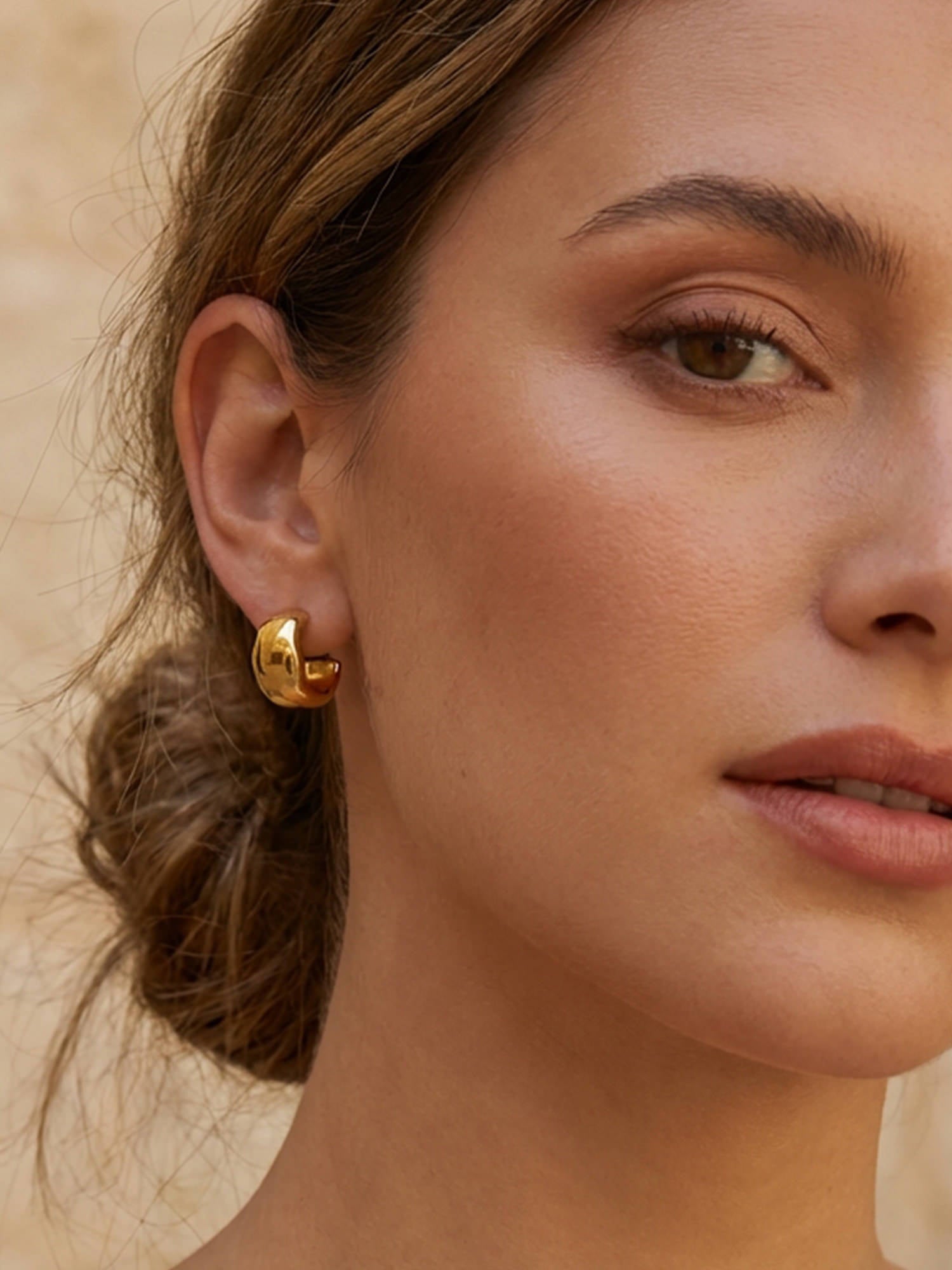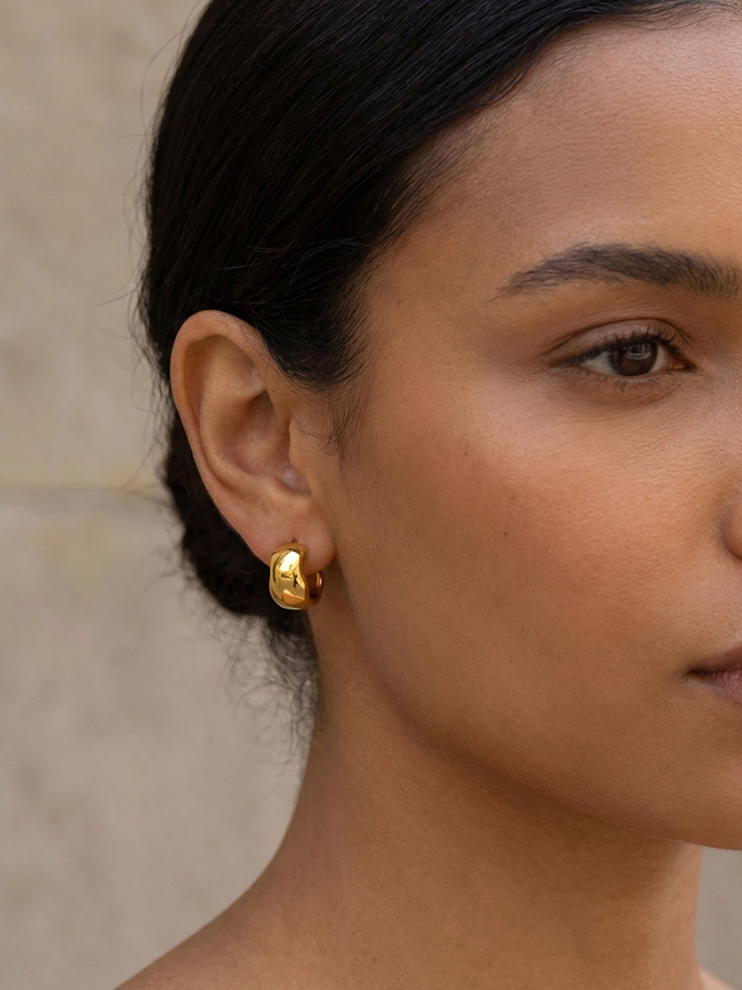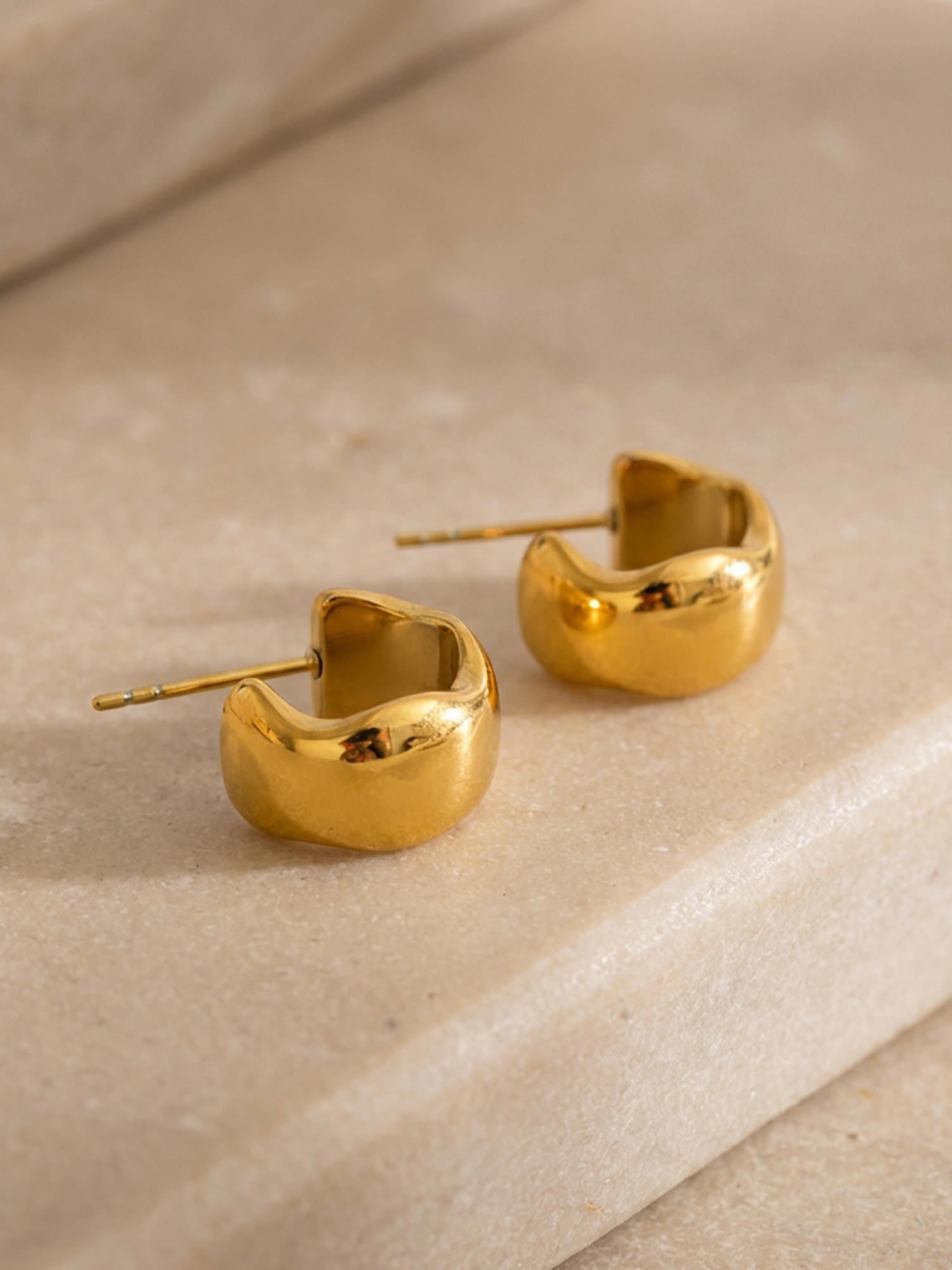 Schlichte Form, starke Wirkung: Unsere Bold Creolen Gold setzen auf eine weich gerundete Silhouette und eine hochglanzpolierte Oberfläche, die das Licht sanft reflektiert. Sie wirken modern und ruhig zugleich – ein Everyday-Piece mit spürbarer Präsenz.