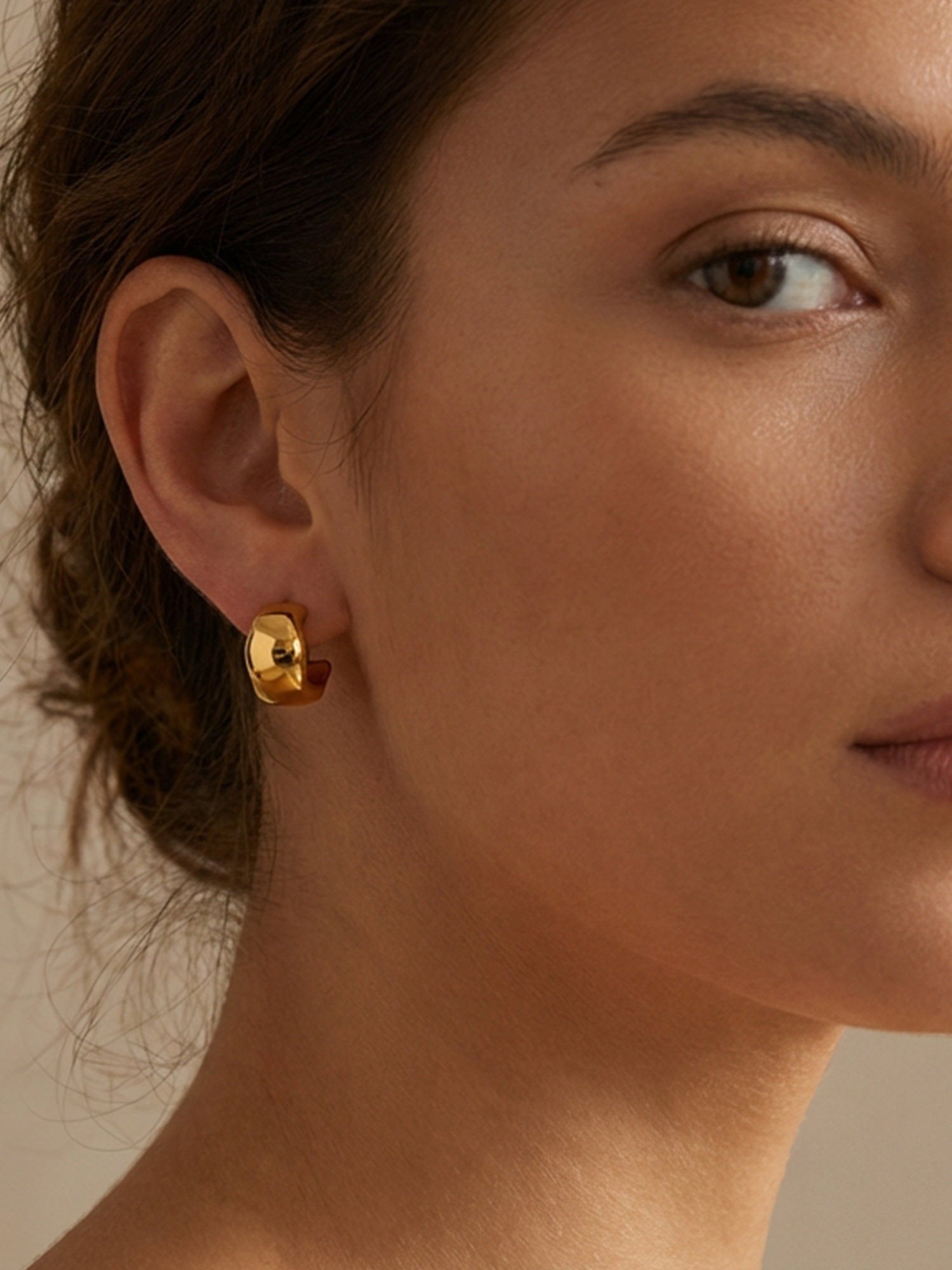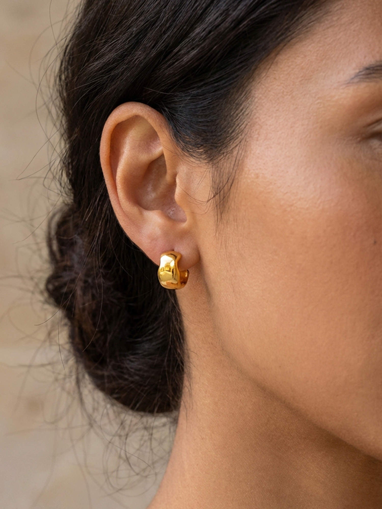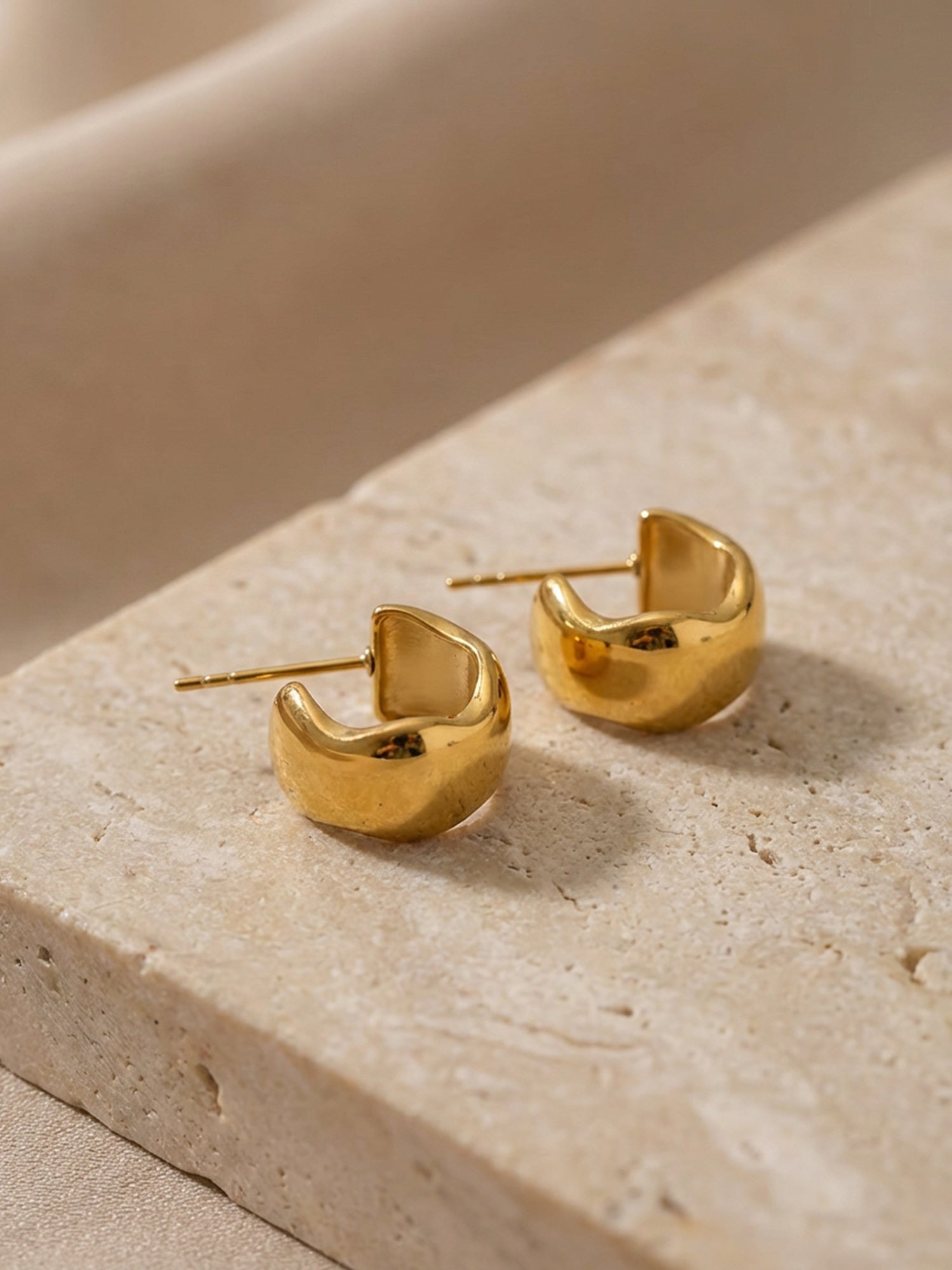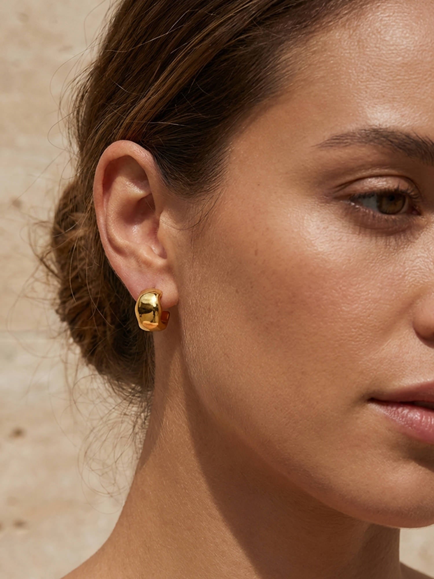 Schlichte Form, starke Wirkung: Unsere Bold Creolen Gold setzen auf eine weich gerundete Silhouette und eine hochglanzpolierte Oberfläche, die das Licht sanft reflektiert. Sie wirken modern und ruhig zugleich – ein Everyday-Piece mit spürbarer Präsenz.