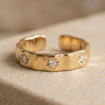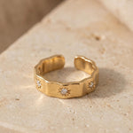 18 Karat vergoldeter Statement-Ring aus 925 Sterling Silber – modern, strukturiert & elegant.