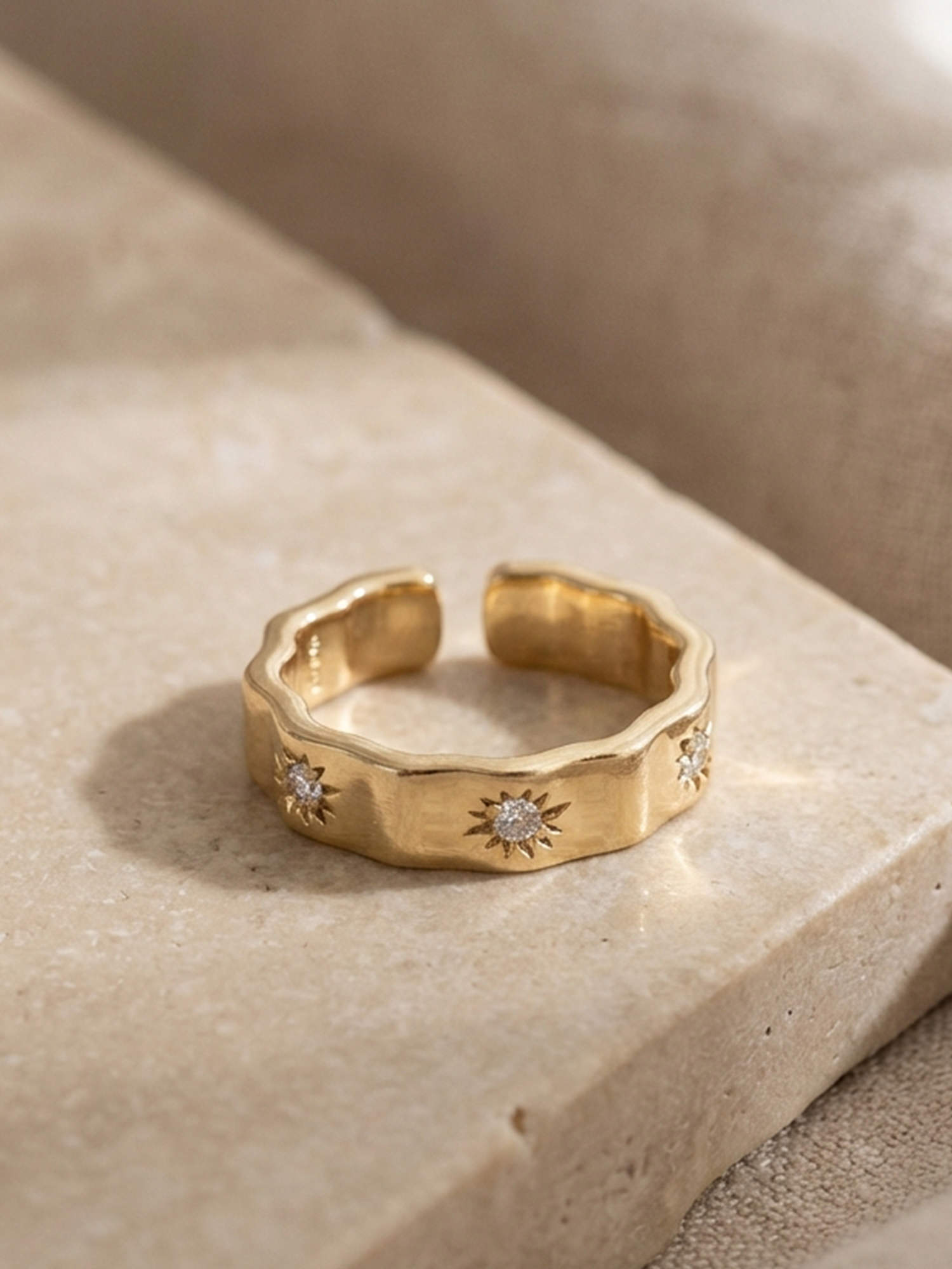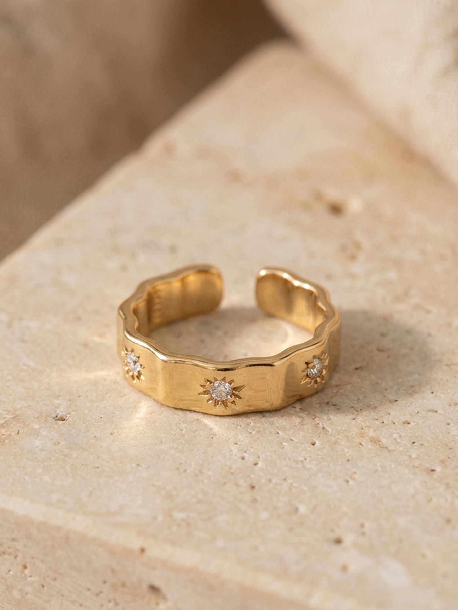 • Gewellter Statement Ring mit Zirkonia Steinchen