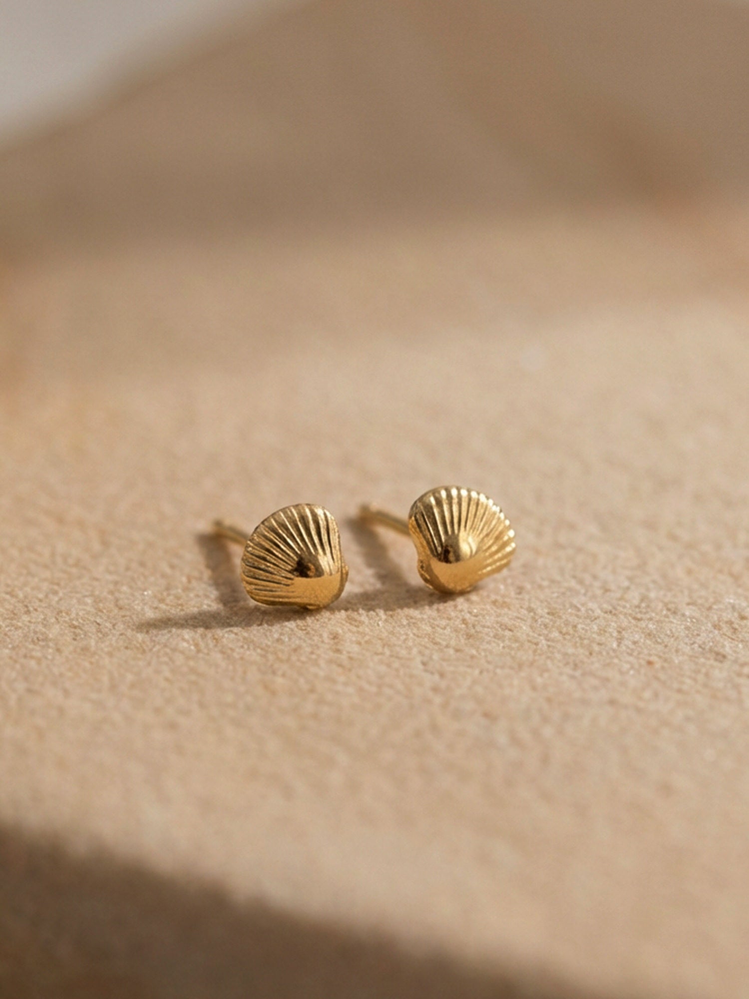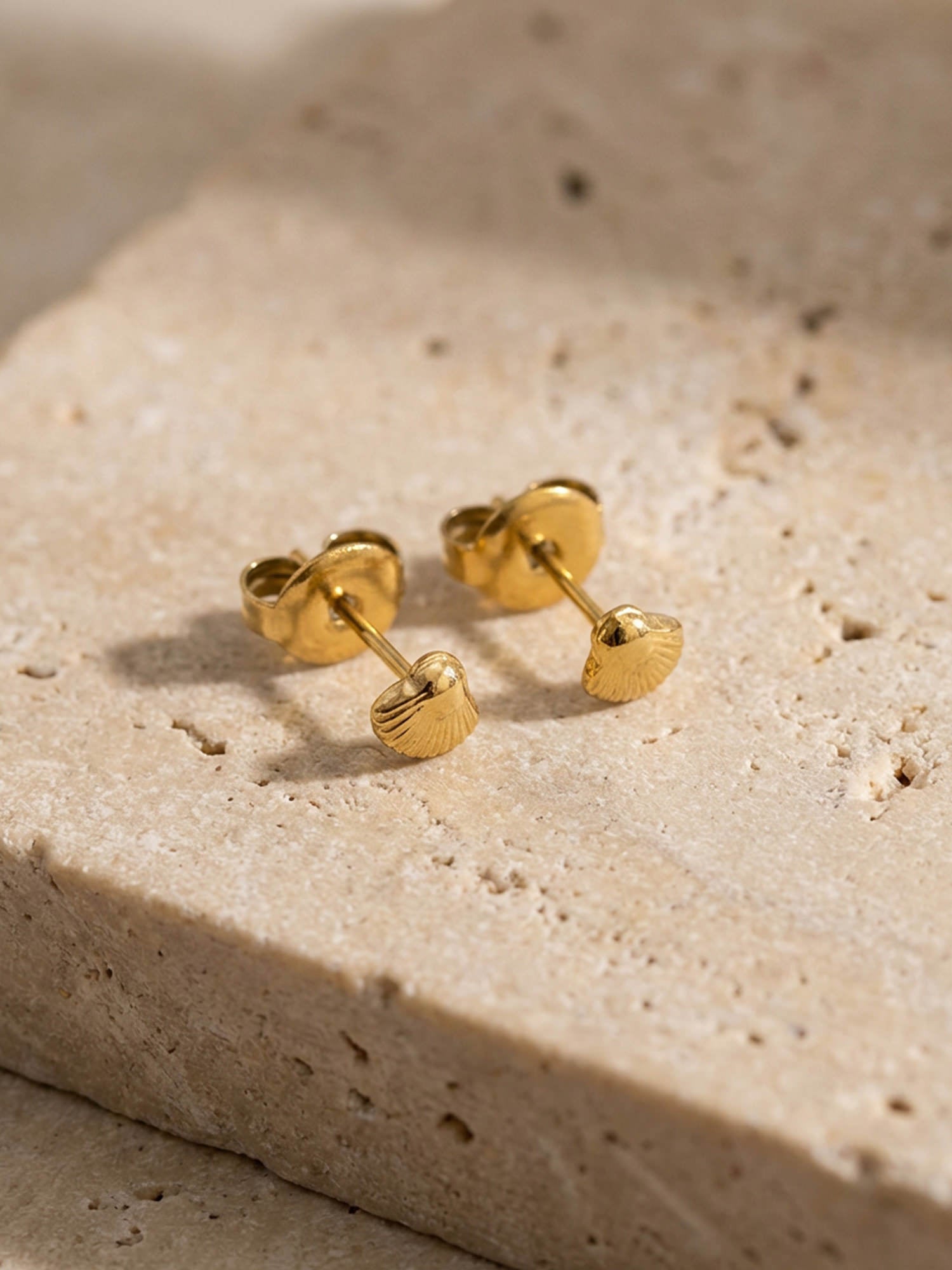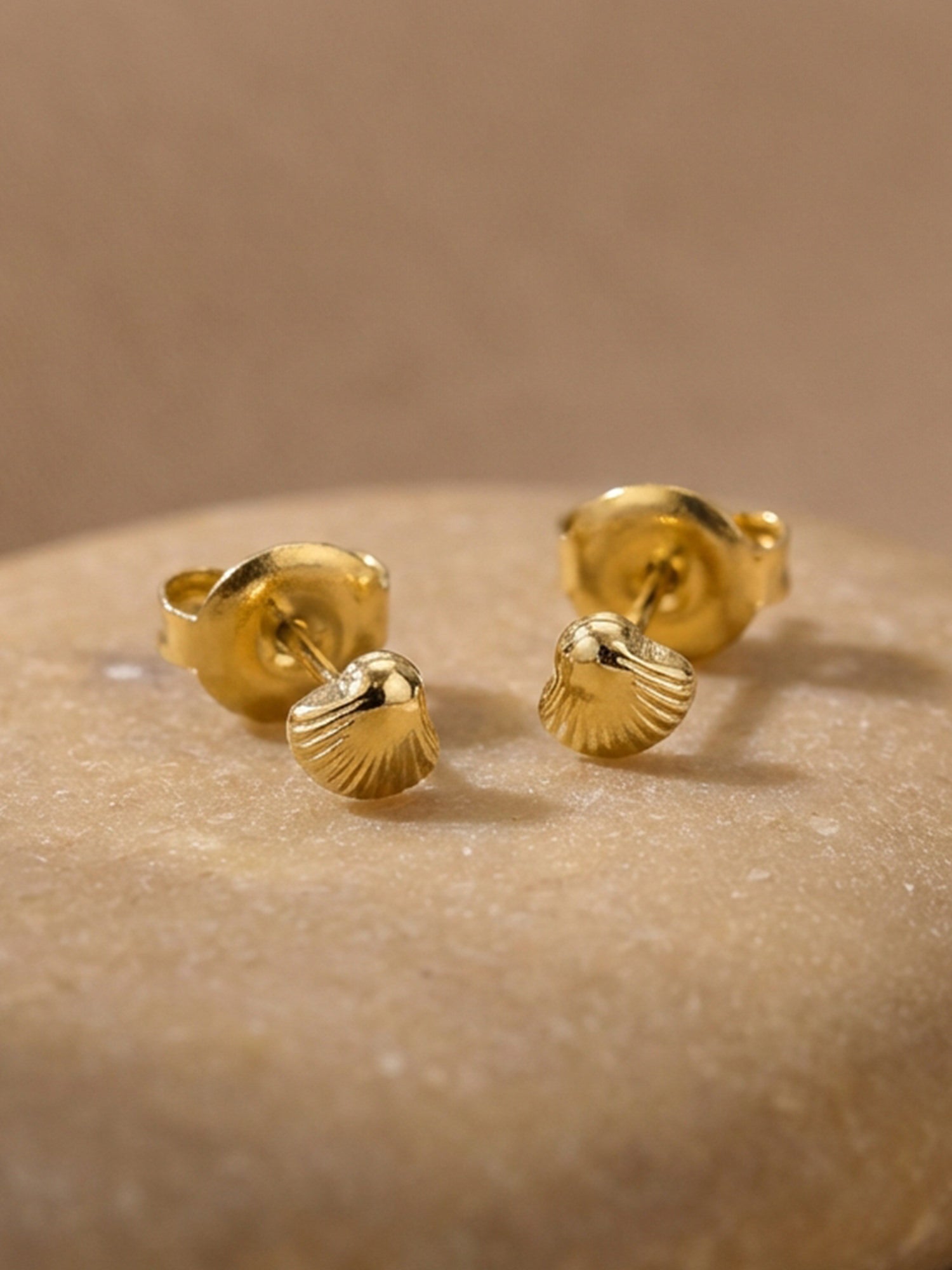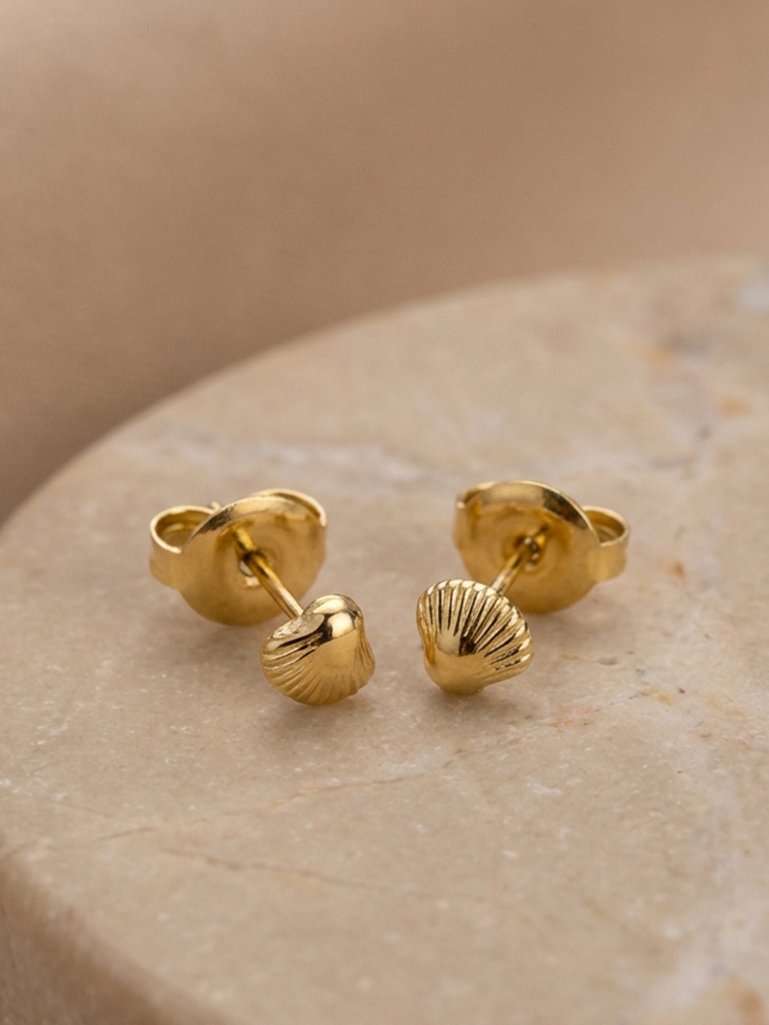 Zarte Muschel-Ohrstecker aus 18 Karat vergoldetem Edelstahl – minimalistisch & maritim.