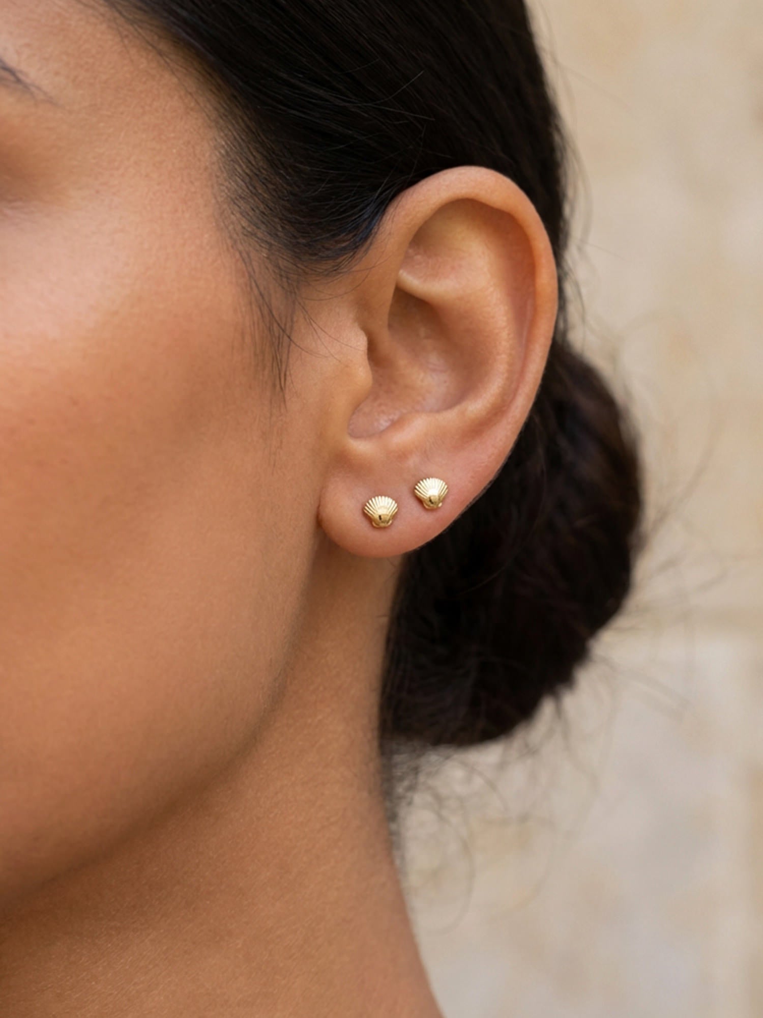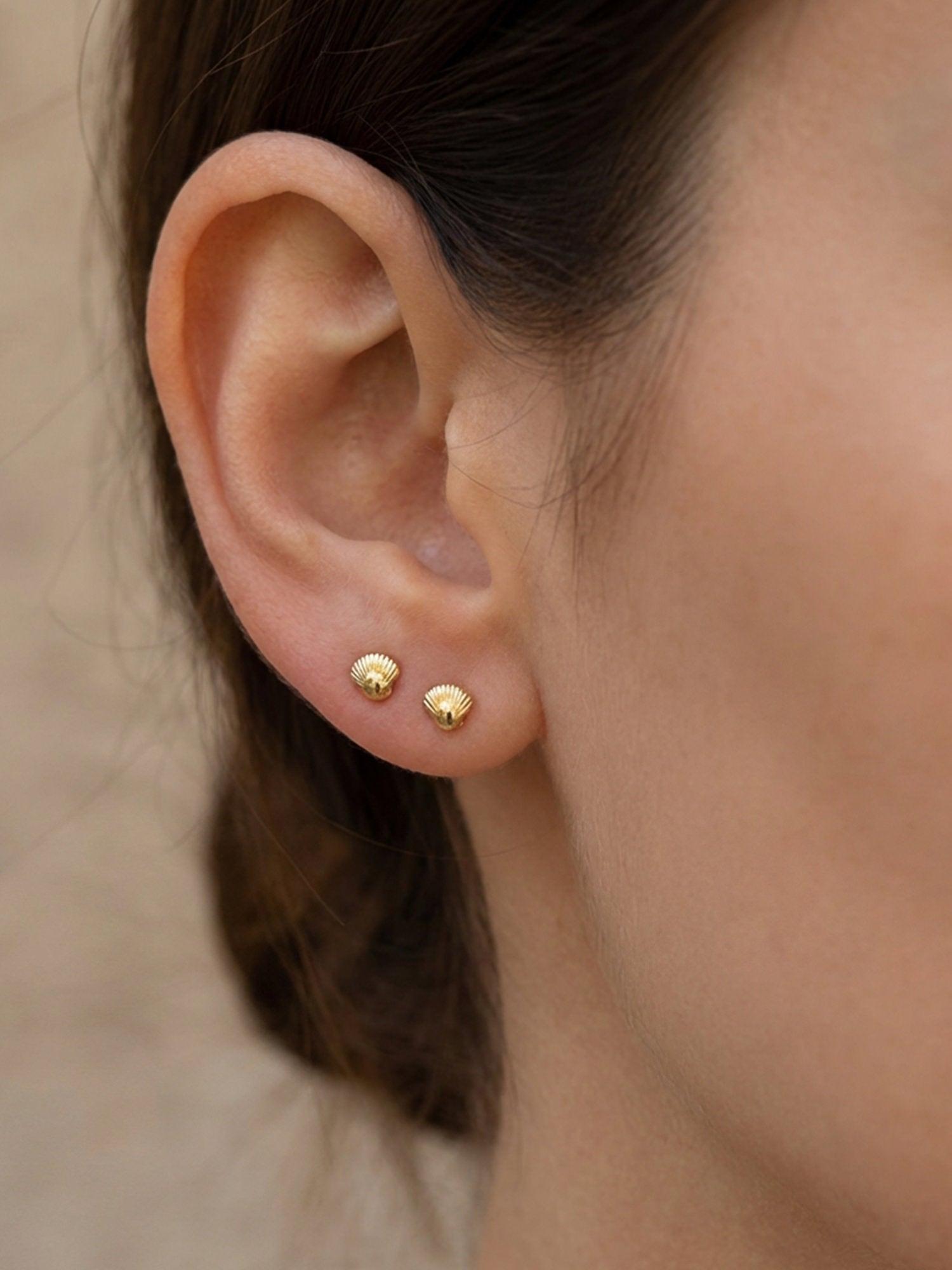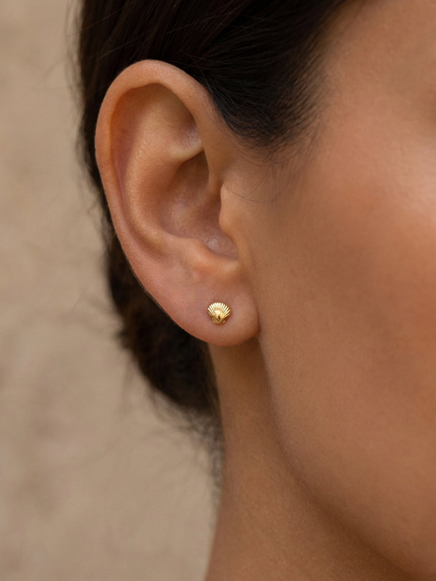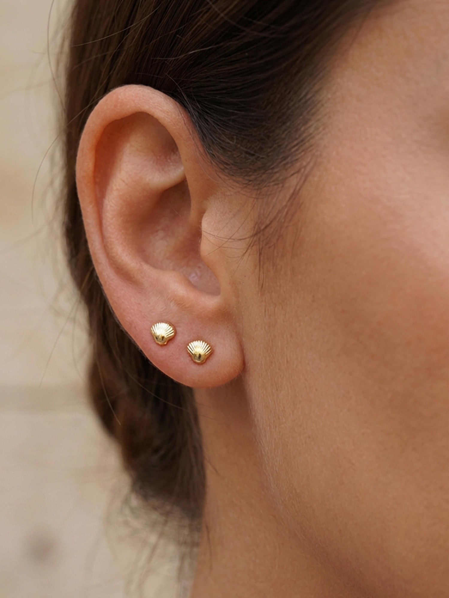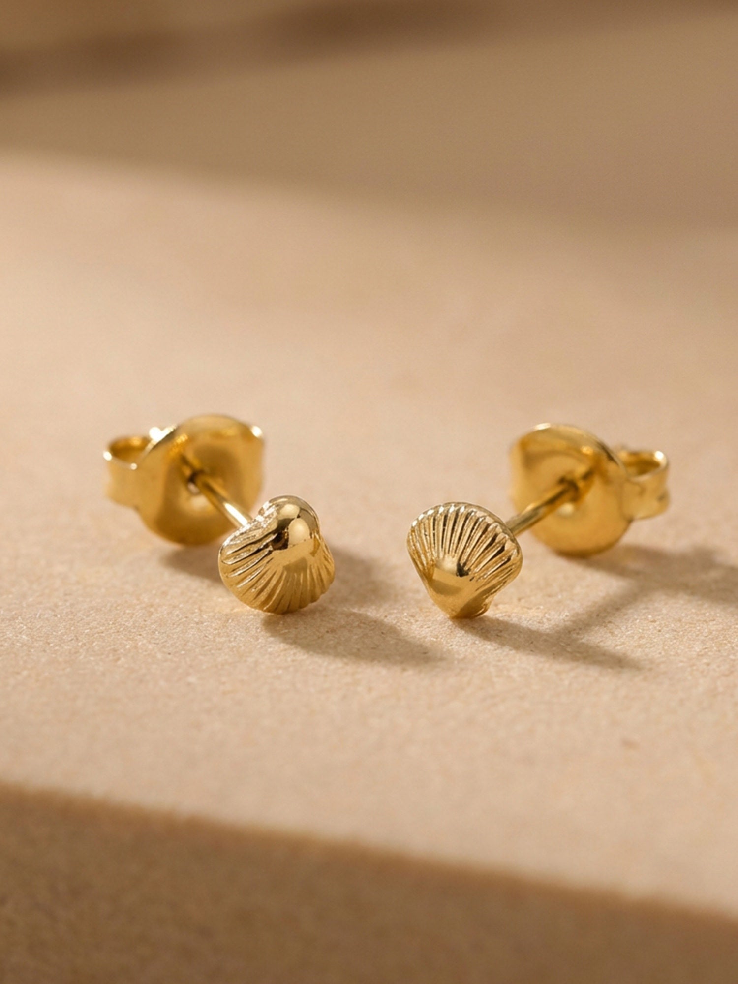 Zarte Muschel-Ohrstecker aus 18 Karat vergoldetem Edelstahl – minimalistisch & maritim.